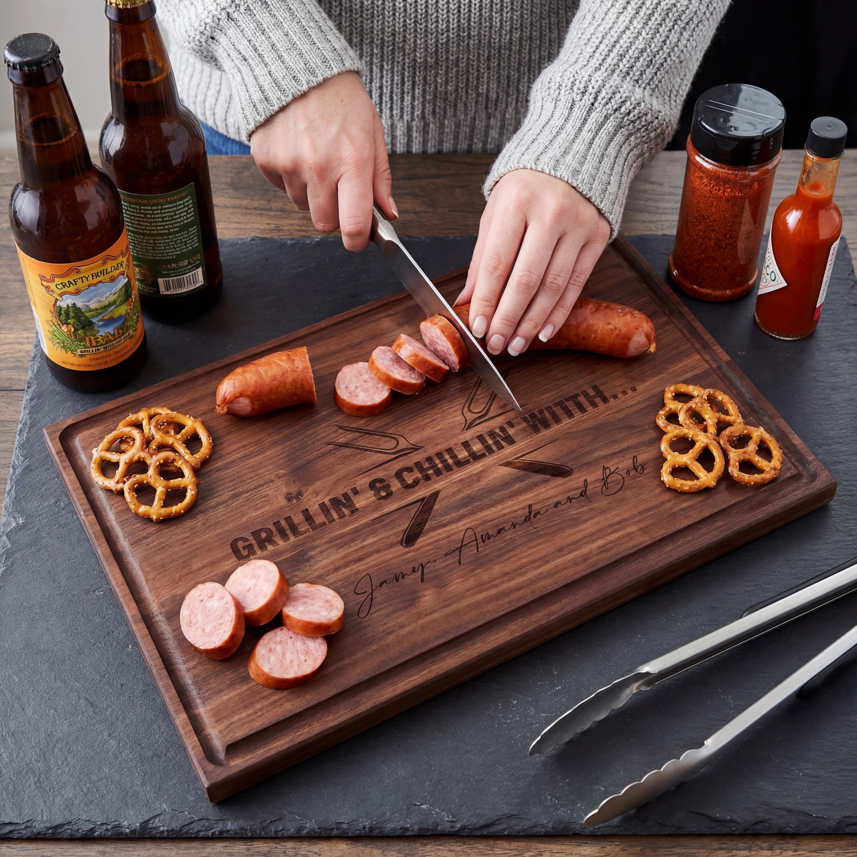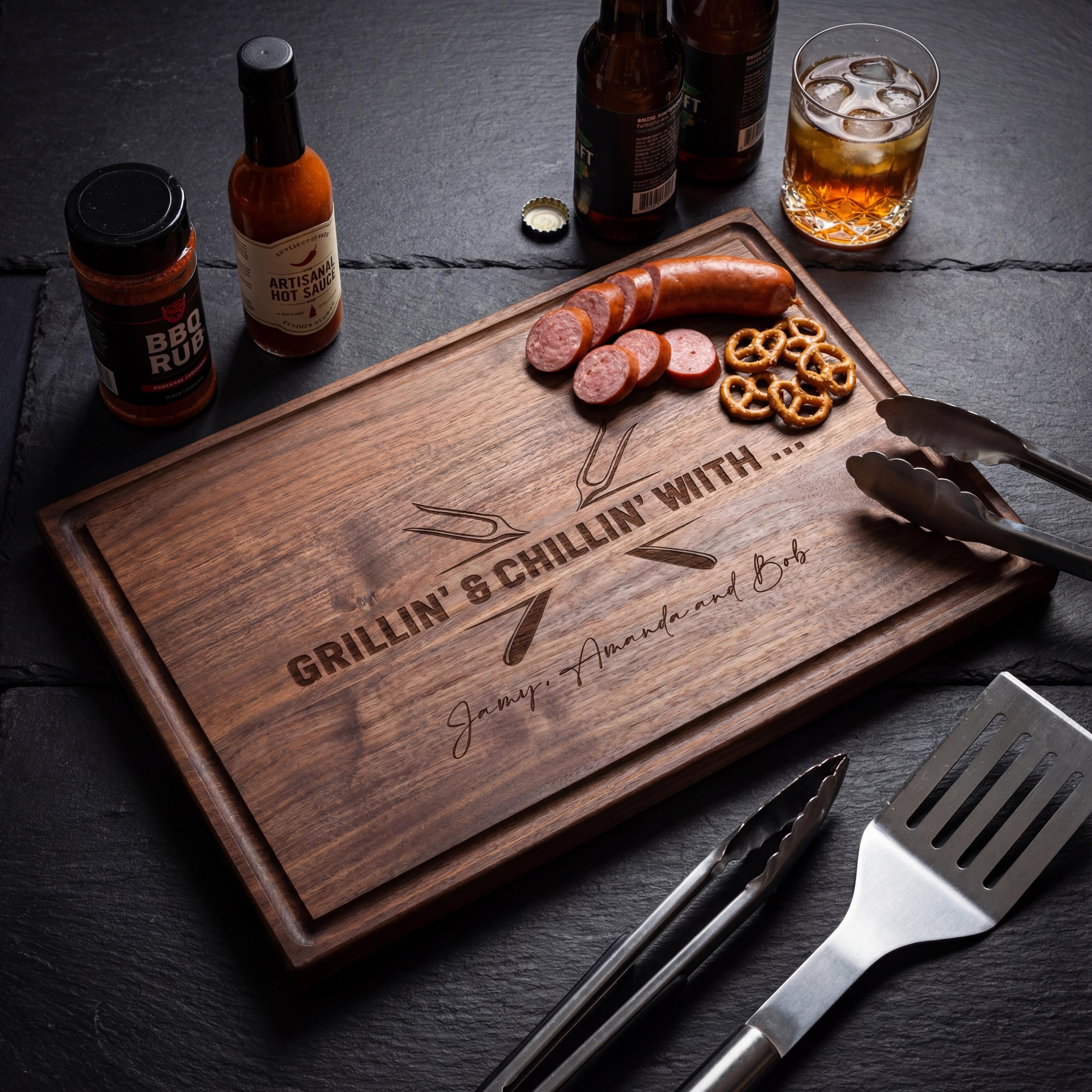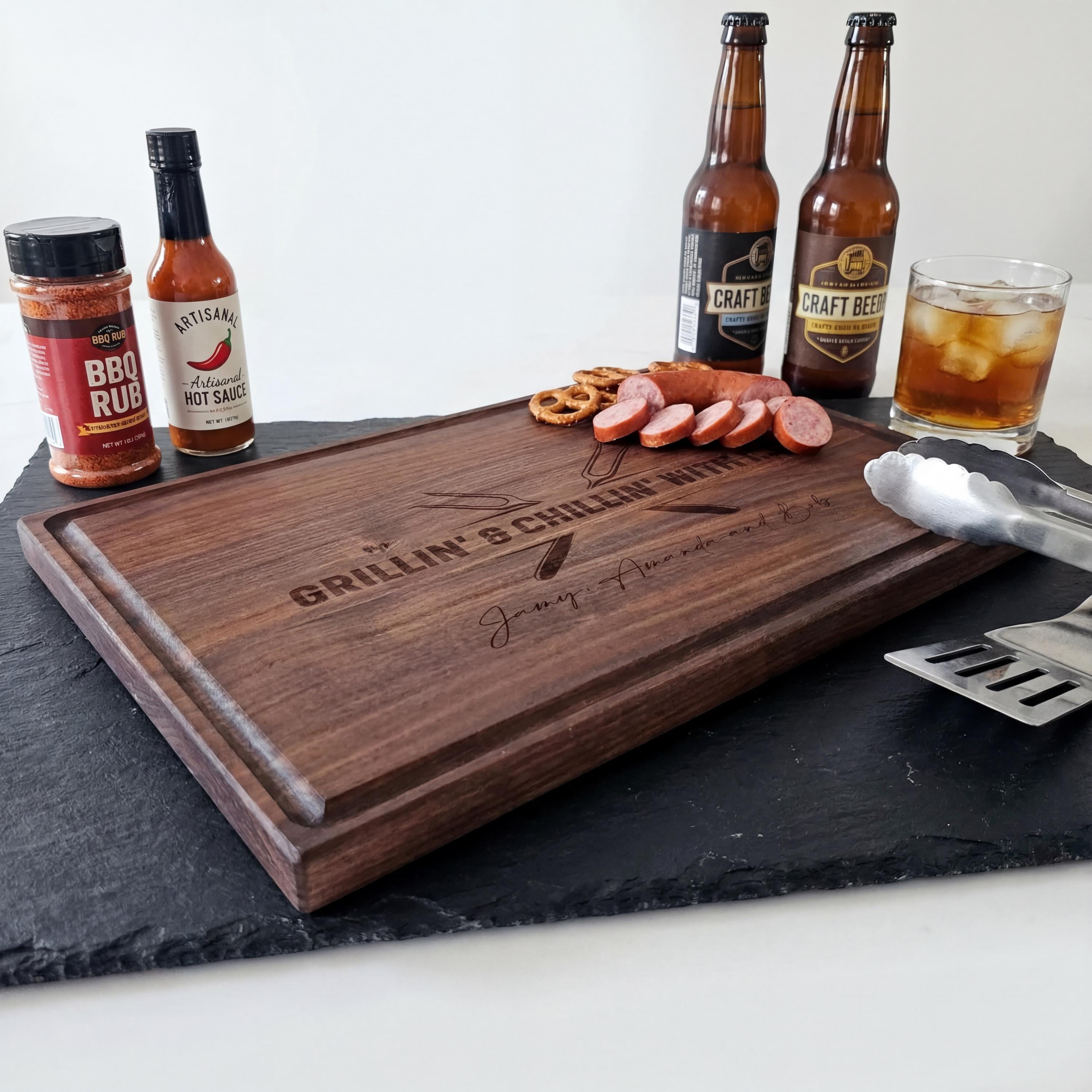 Grill Master Gift | Personalized Cutting Board, "Grillin' & Chillin'" BBQ Meat Platter
