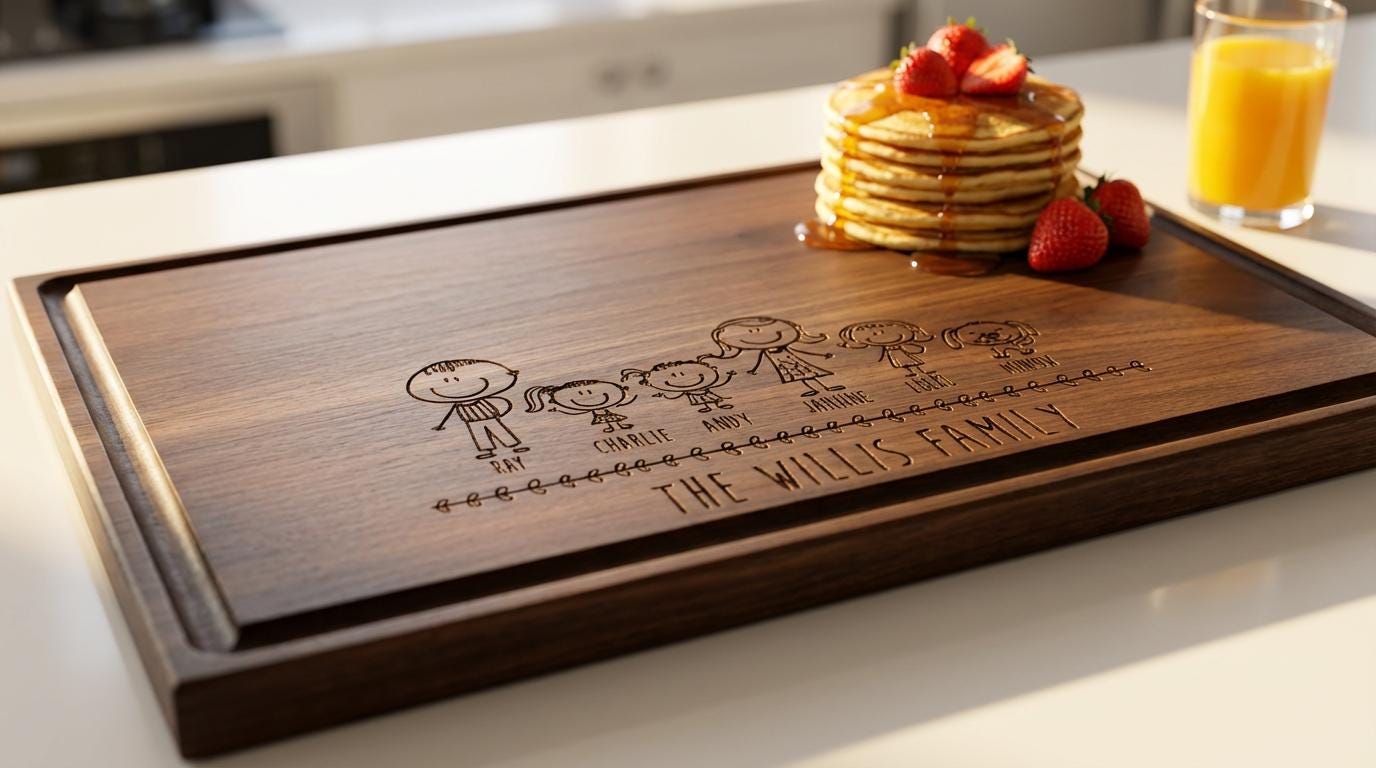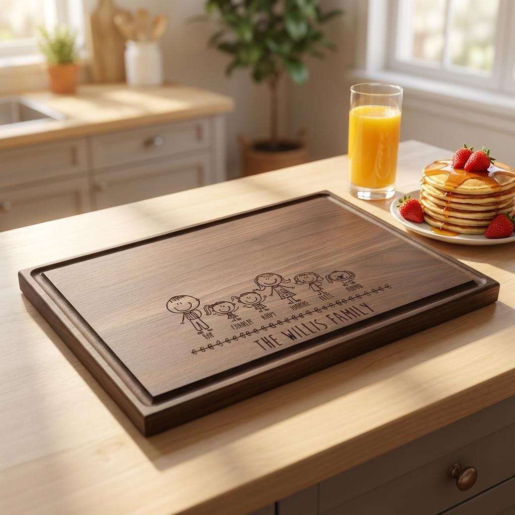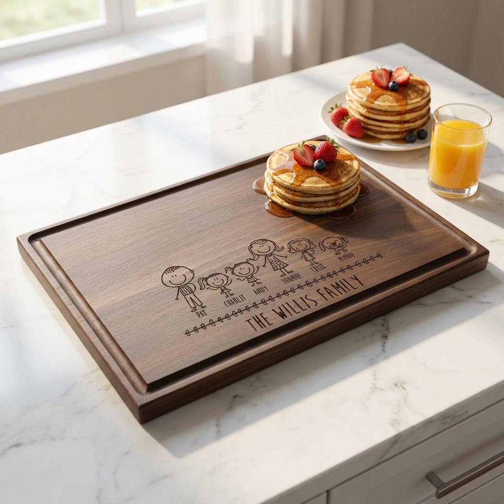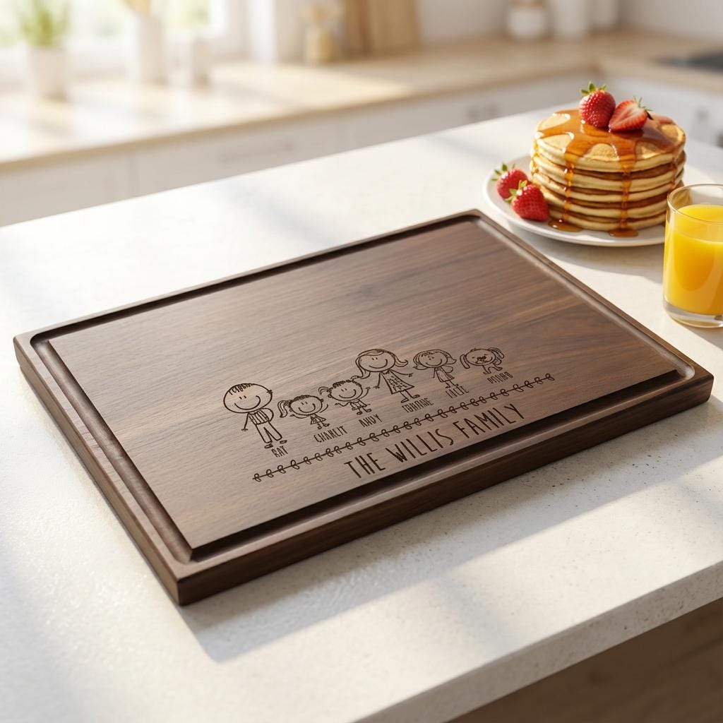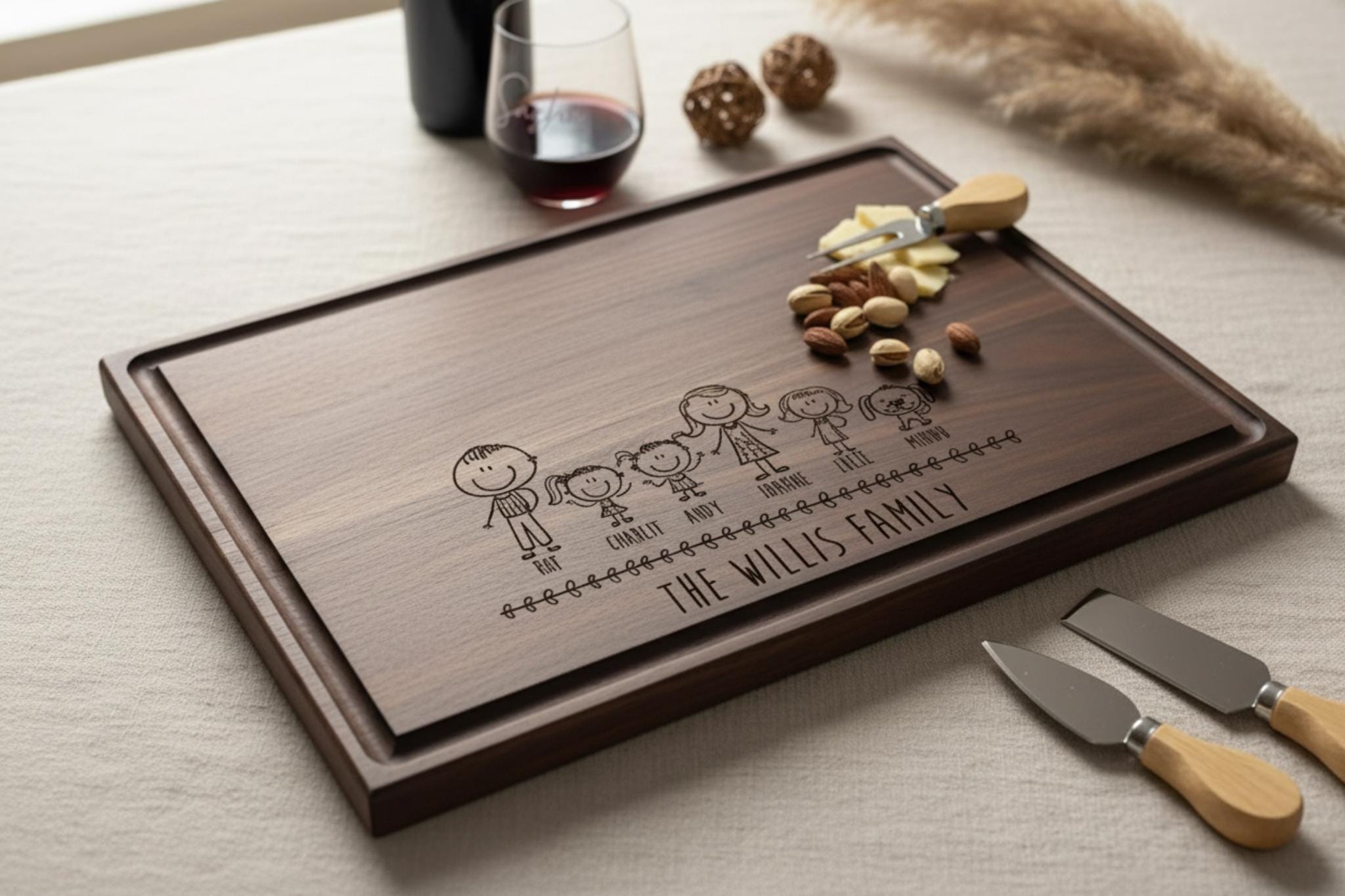 Personal Touch: With your custom engraving capturing your chosen comic family characters, this cutting board becomes a unique keepsake that reflects your family's laughter and love—an artful tribute to the moments you share.