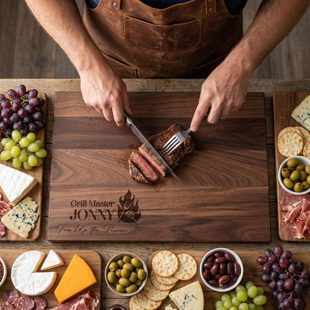 Personalized Cutting Board for Grill Master, Custom Engraved Charcuterie Platter with Chef Design, Personalized BBQ Gift for Him