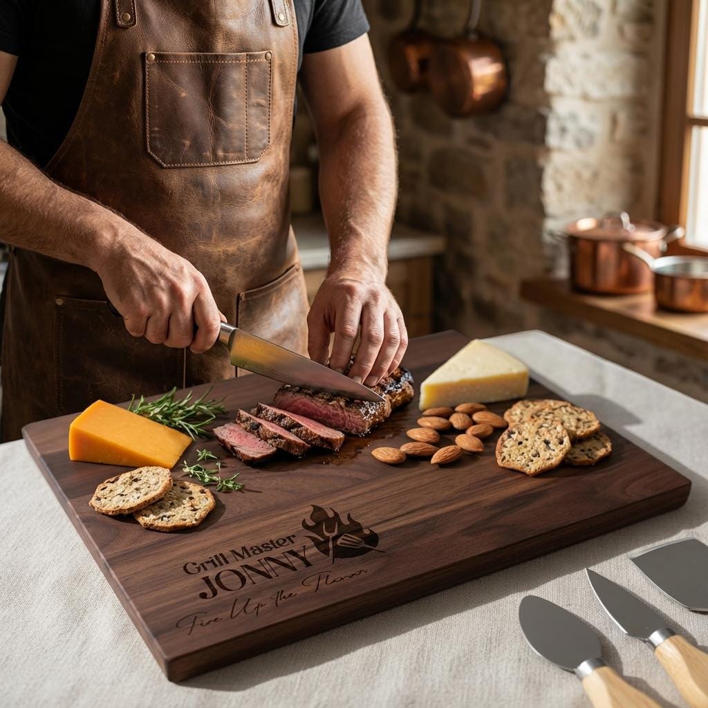 The Ultimate Grilling & Gift Experience: Whether celebrating Father’s Day, a birthday or simply honoring the grill master in your life, this personalized board is the perfect present. It’s more than a tool—it's a tribute to a dad’s unmistakable passion for grilling.