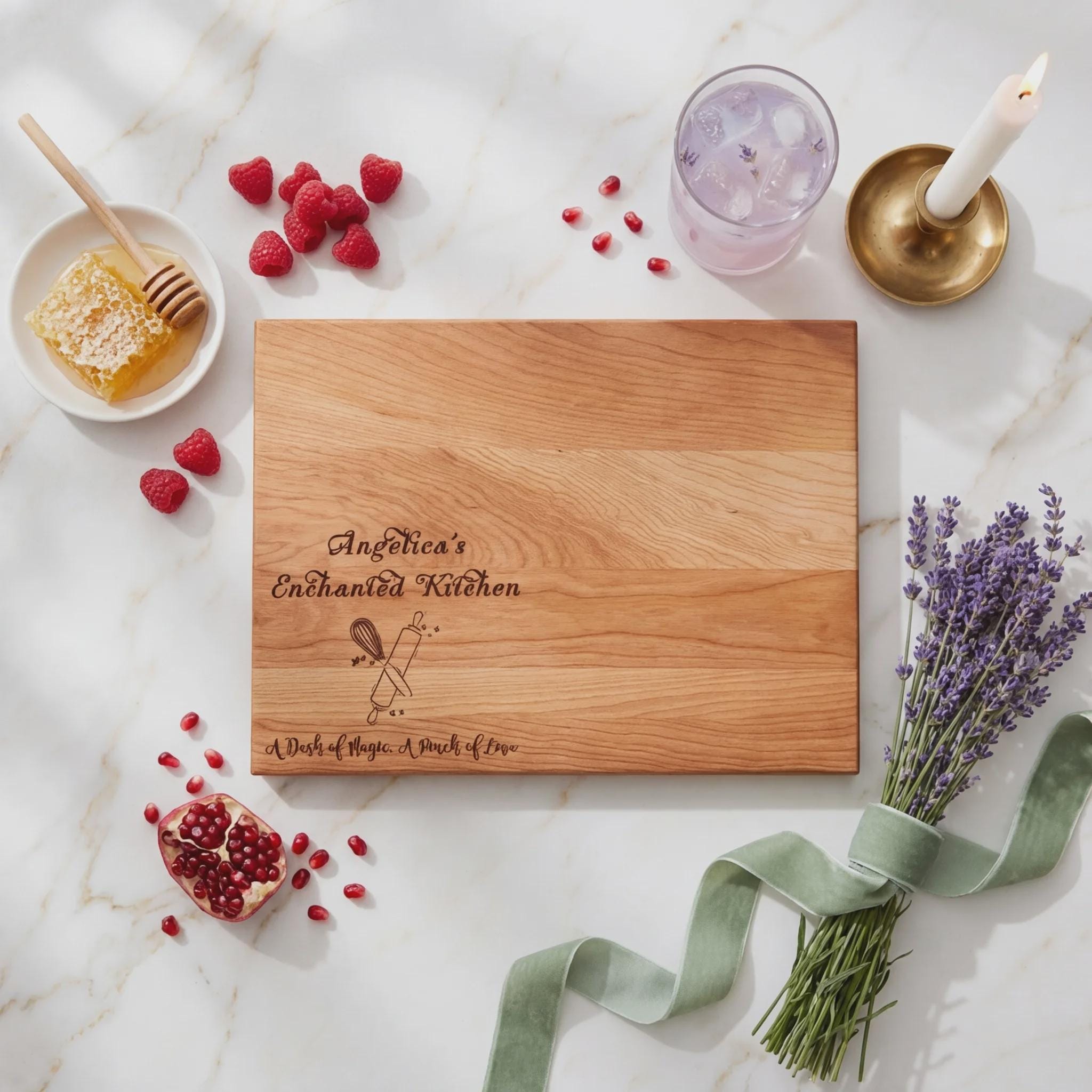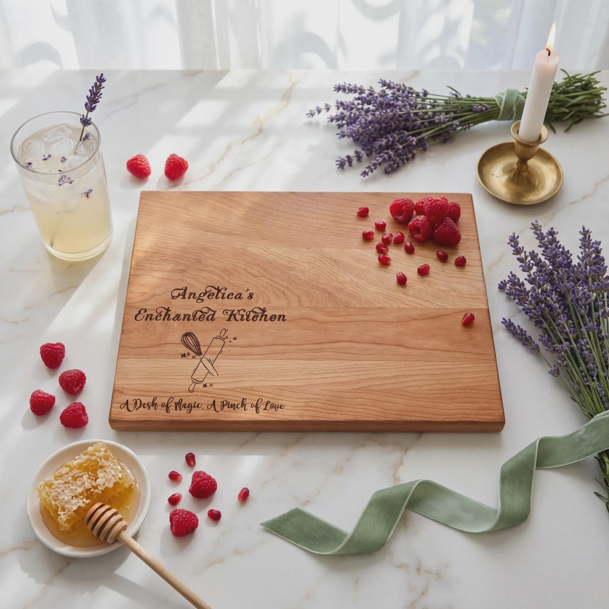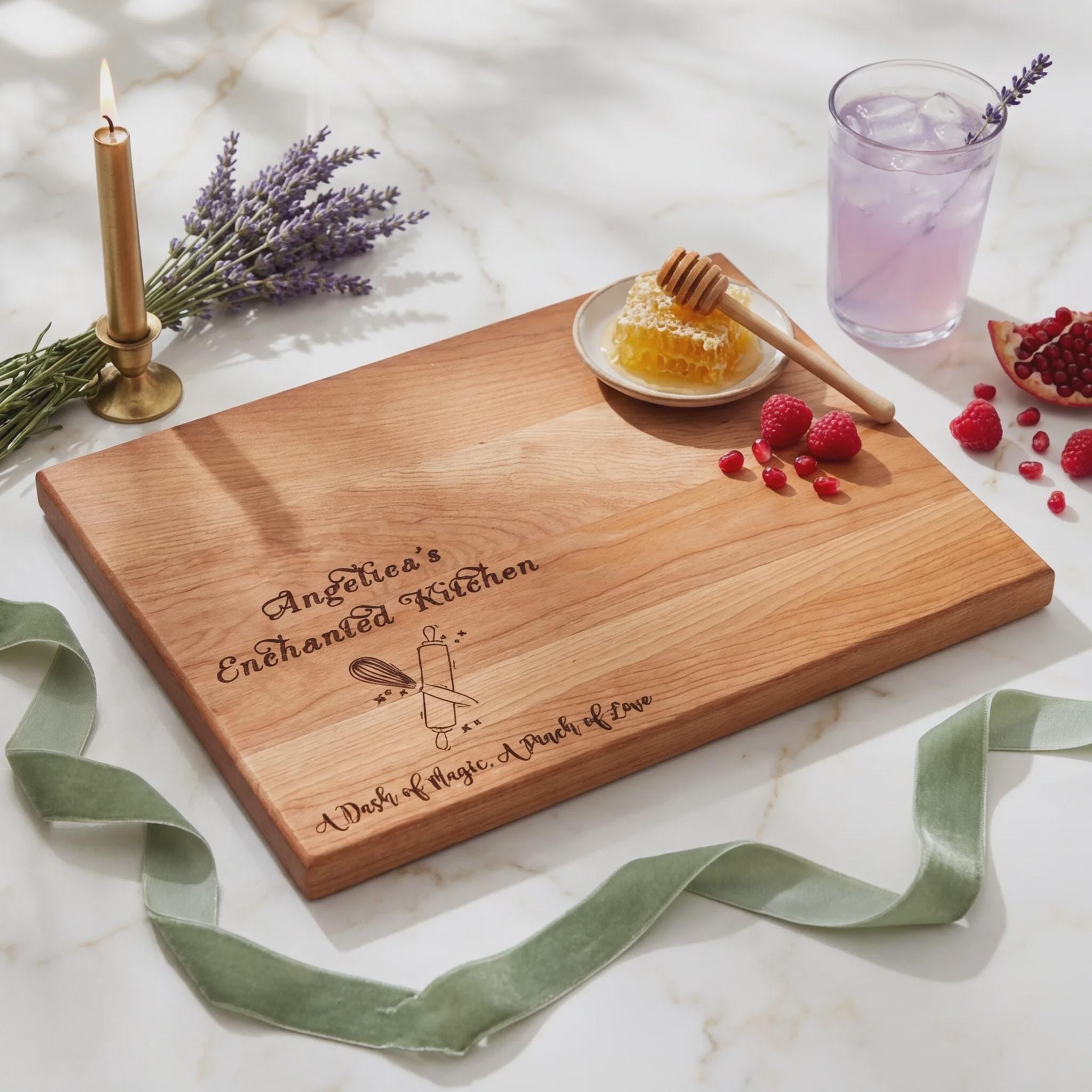 Signature Engraving: Expertly laser-engraved with an enchanting message, this board serves as a daily reminder that every kitchen is magical when filled with love and passion.