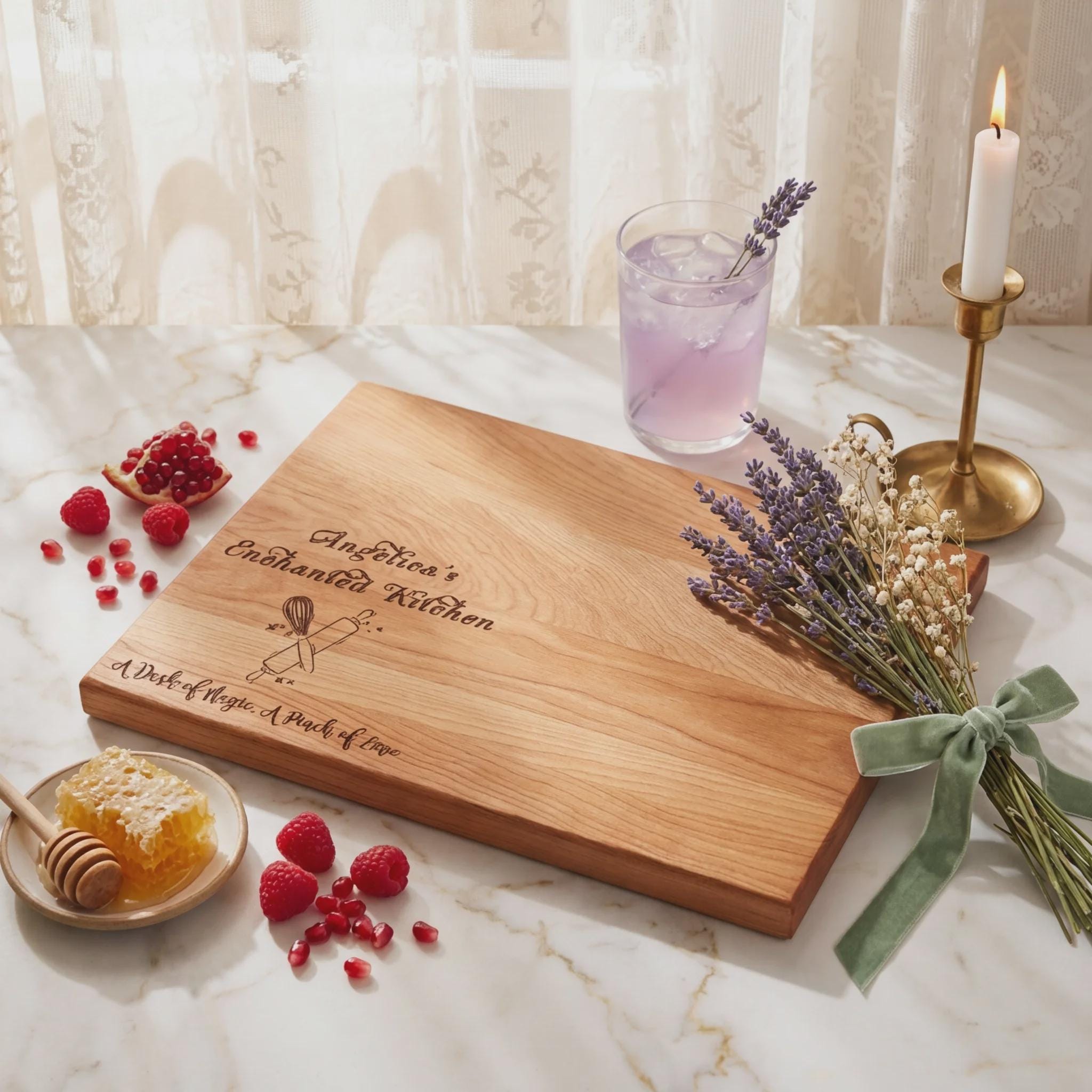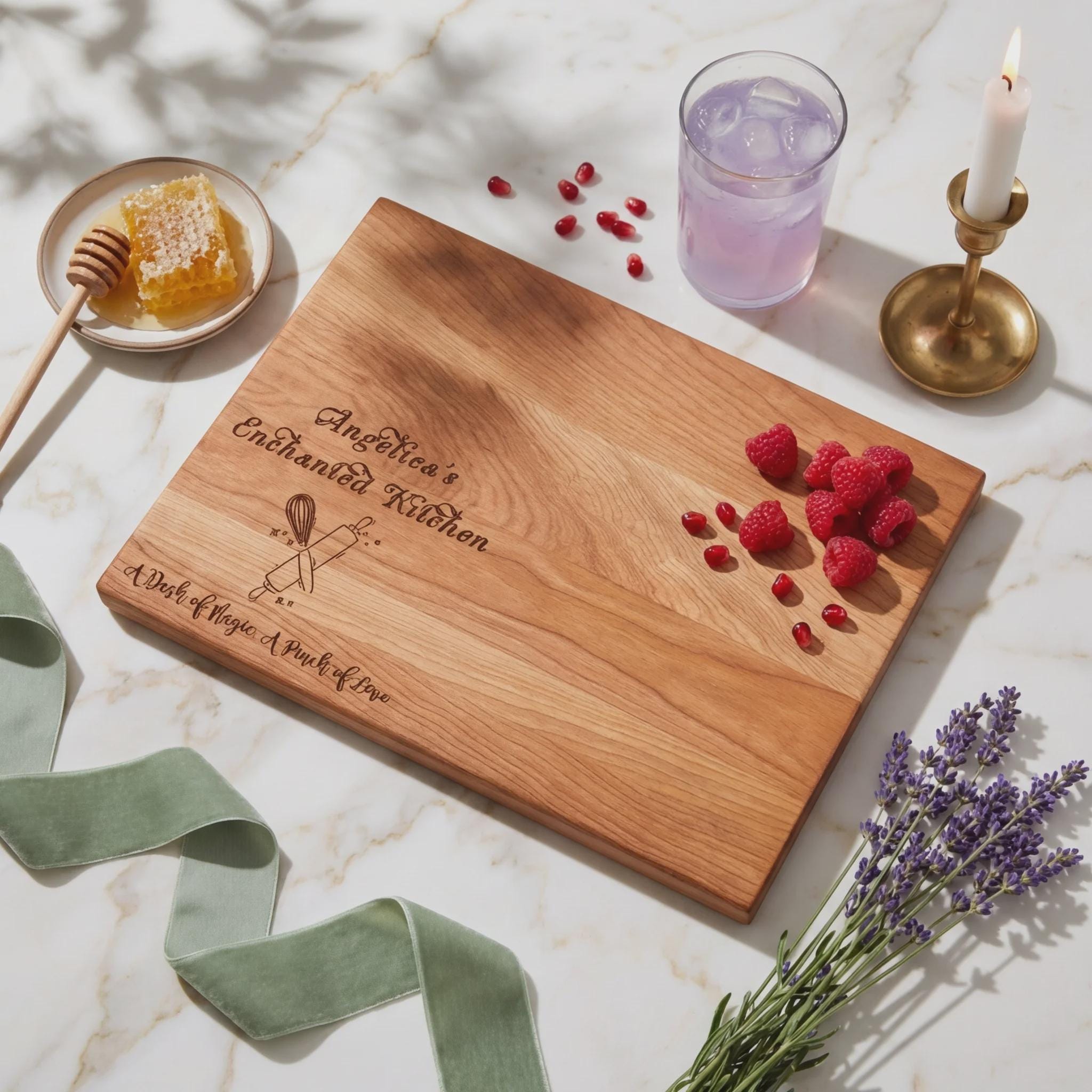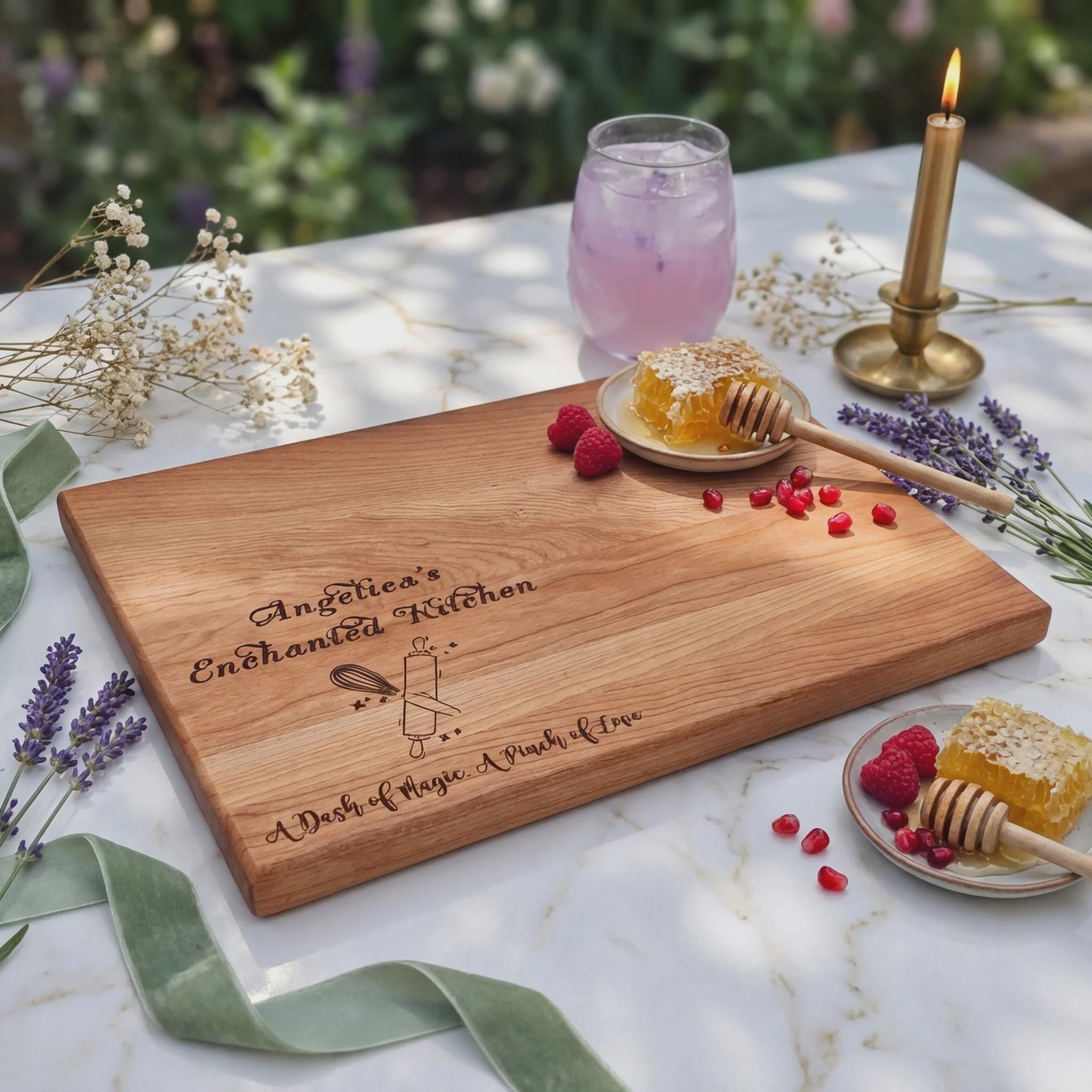 Signature Engraving: Expertly laser-engraved with an enchanting message, this board serves as a daily reminder that every kitchen is magical when filled with love and passion.