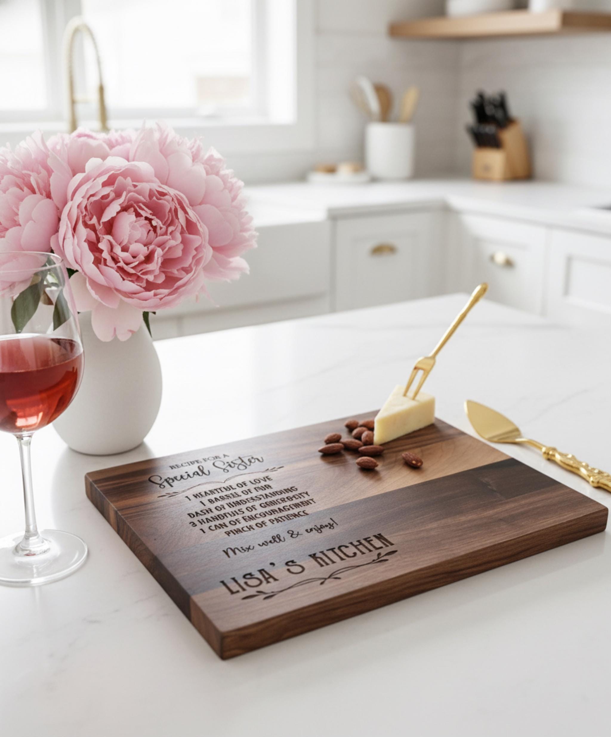 Personalized Recipe Cutting Board, Custom Engraved Charcuterie Board: Gift for Sister, Gift for Her, Kitchen Gift, Christmas Gift