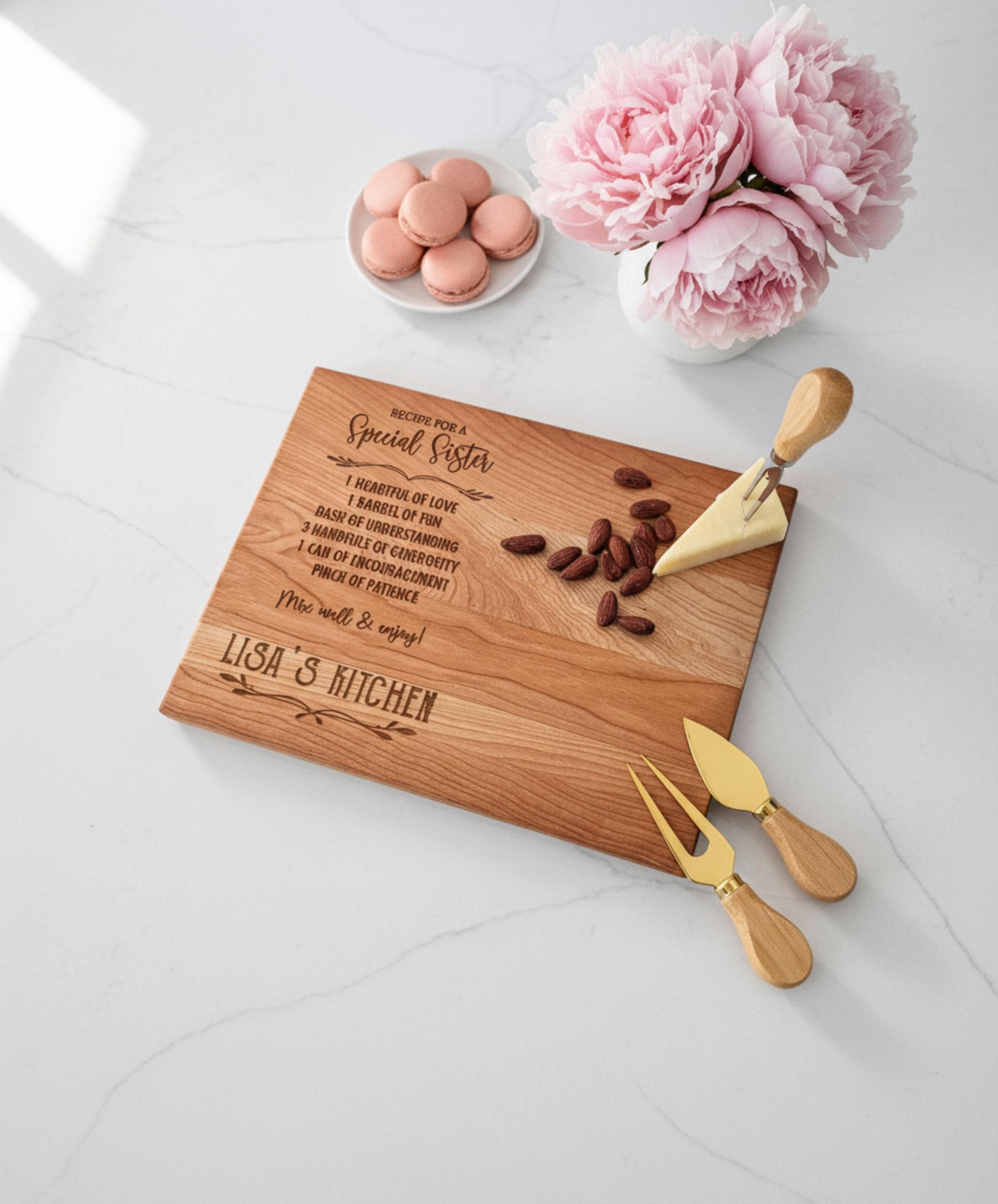 Signature Custom Engraving: Our skilled artisans precisely laser-engrave “Recipe for Special Sister” onto your chosen premium wood, creating a stunning focal point that turns everyday kitchen tasks into a celebration of family and flavor.