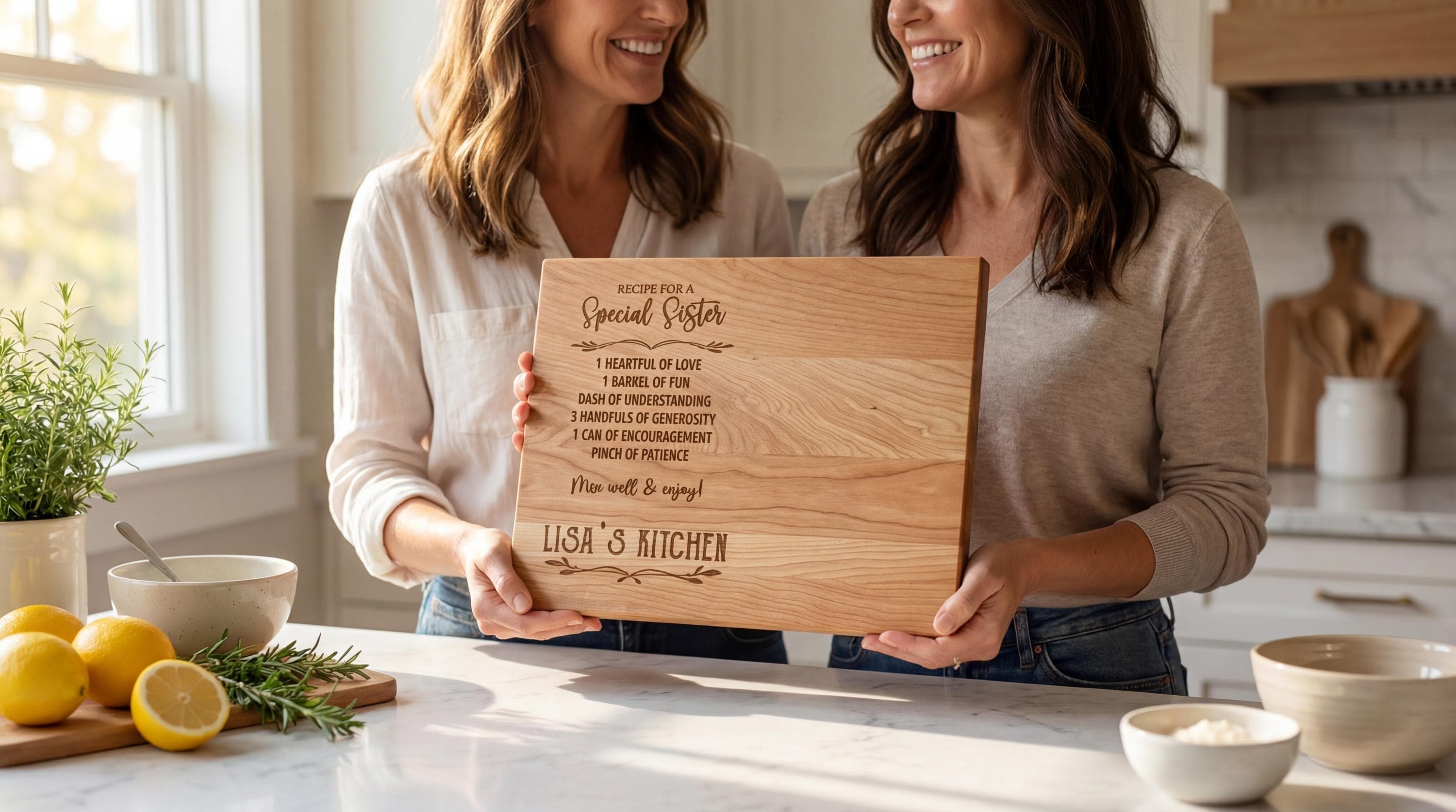 The Ultimate Sister Gift: Whether you're celebrating a birthday or holiday, or simply honoring the irreplaceable bond you share, this personalized board is a thoughtful keepsake that she’ll treasure for years to come.