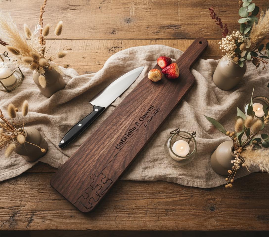 Personalized Cutting Board, Custom Engraved Bread Board: Puzzle Themed, Gift for The Couple, Weddings, Anniversaries, and Housewarming Gifts