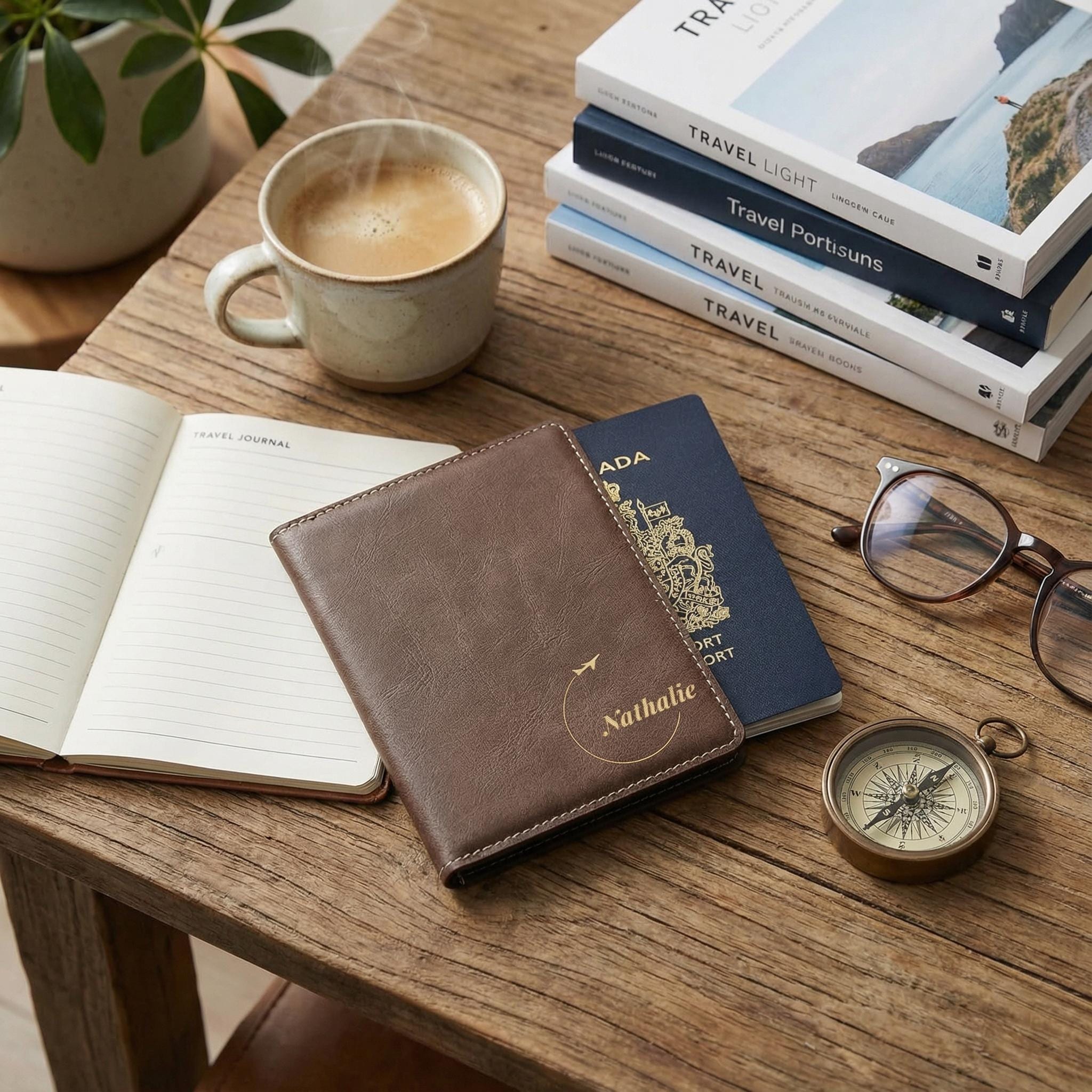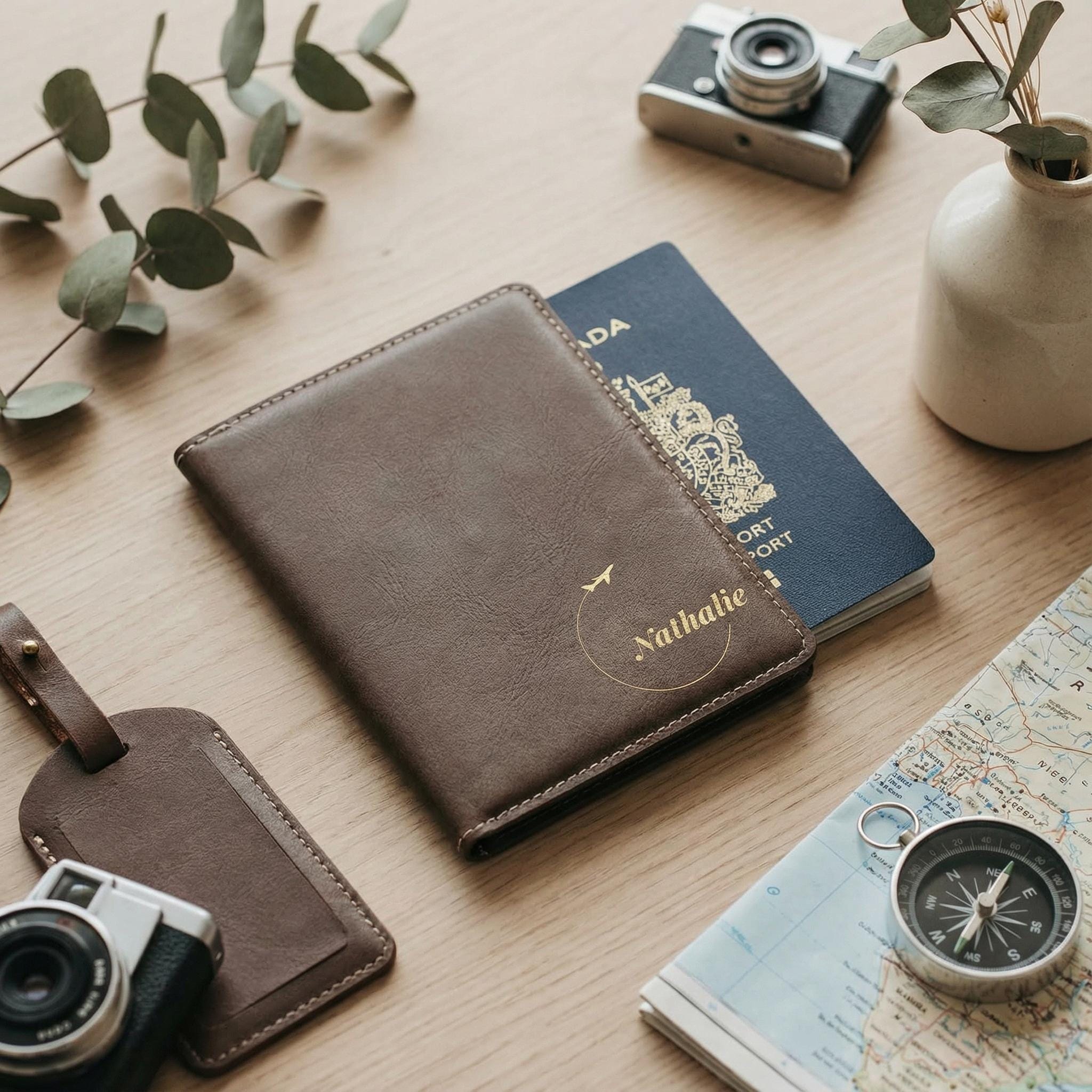Take to the skies with a custom travel accessory tailored just for you. This engraved passport wallet is expertly crafted in cruelty‑free vegan leather and features a stylish airplane design paired with your custom name. It is the ultimate vacation essential for keeping your documents safe and organized while you explore the world.