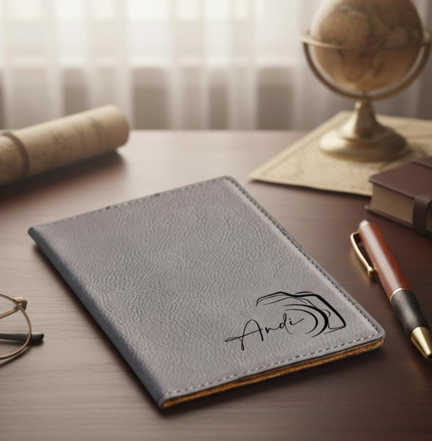Capture every journey with our personalized vegan leather passport cover. Expertly engraved with a sleek camera design and your custom name, this travel accessory merges modern style with functionality. Made from high‑quality, cruelty‑free vegan leather, it’s the perfect companion for travelers who want to stand out while keeping their essentials secure.