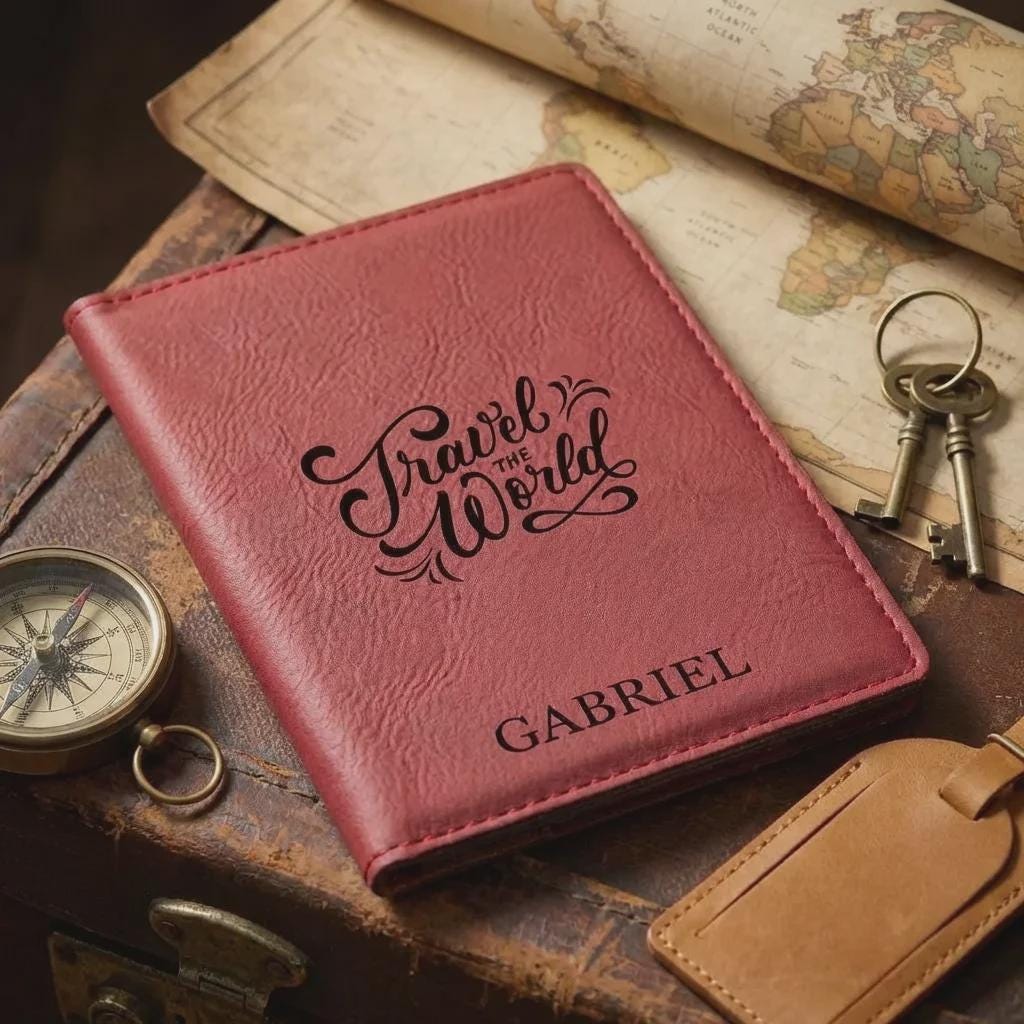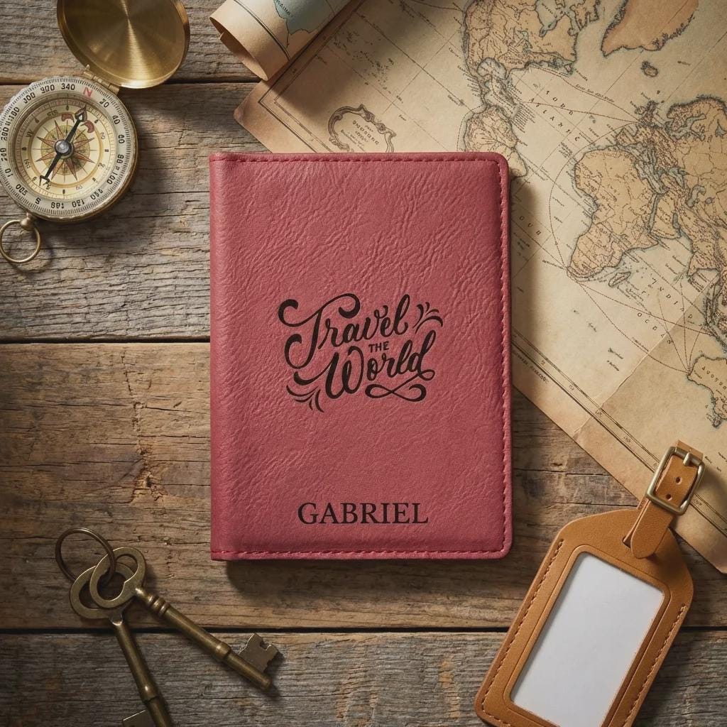 Personalized Vegan Leather Passport Holder, Custom Engraved Travel Wallet, Graduation Gift