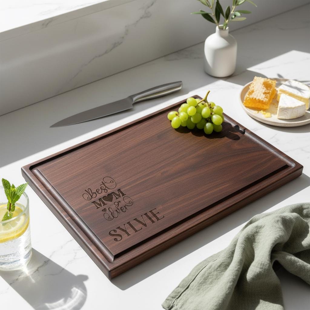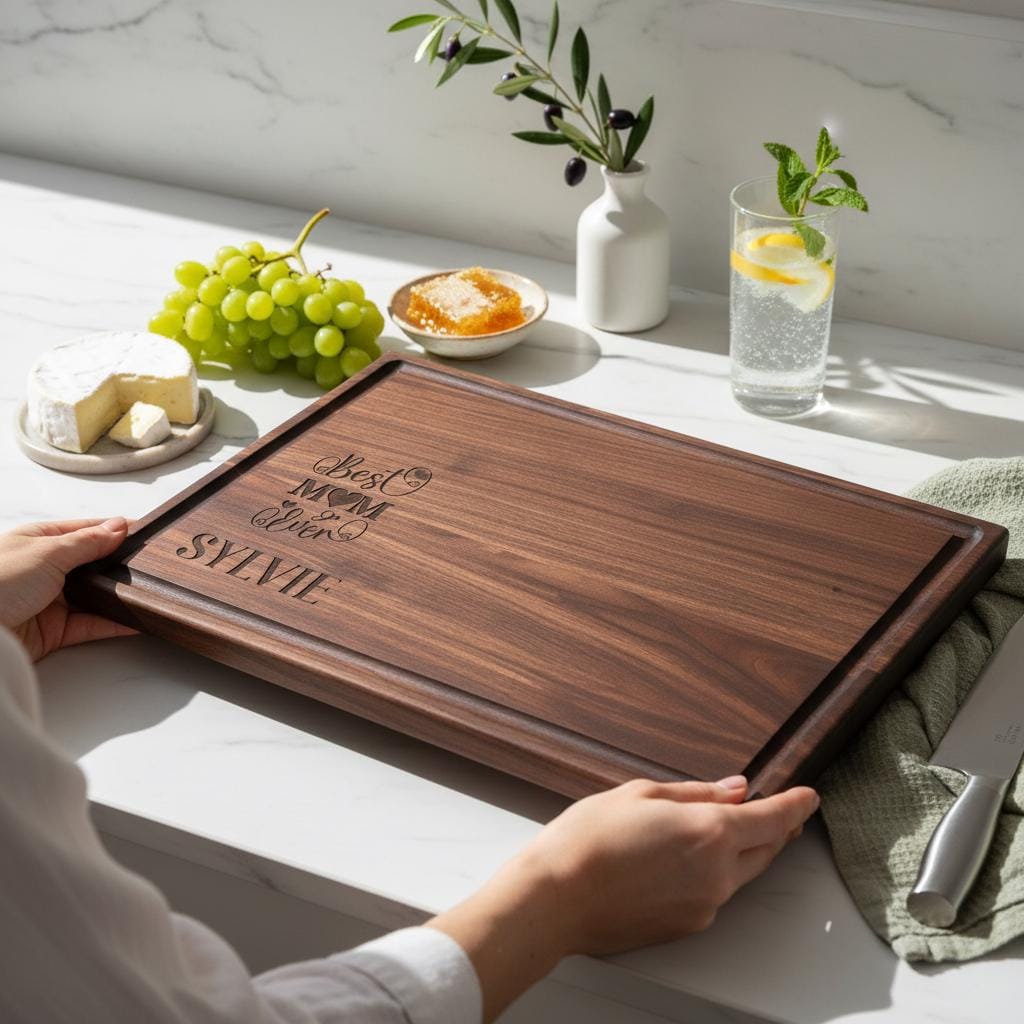 Signature Custom Engraving: Carefully laser engraved with “Best Mom Ever” alongside her name, this board highlights her special role in every chop, slice, and serving.