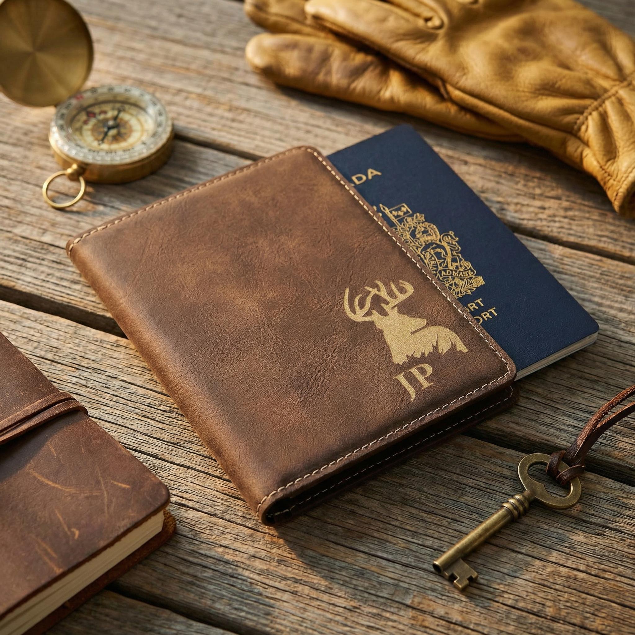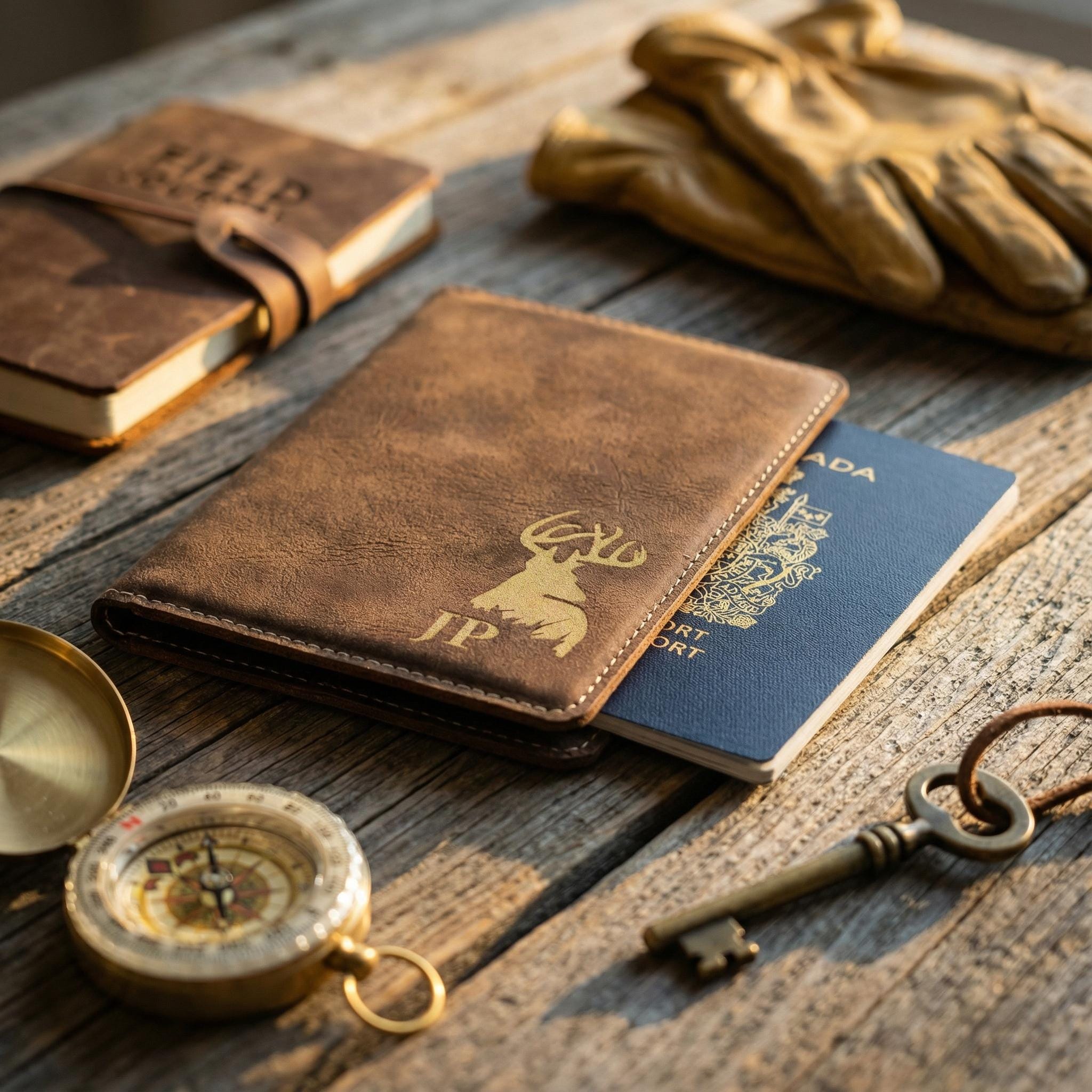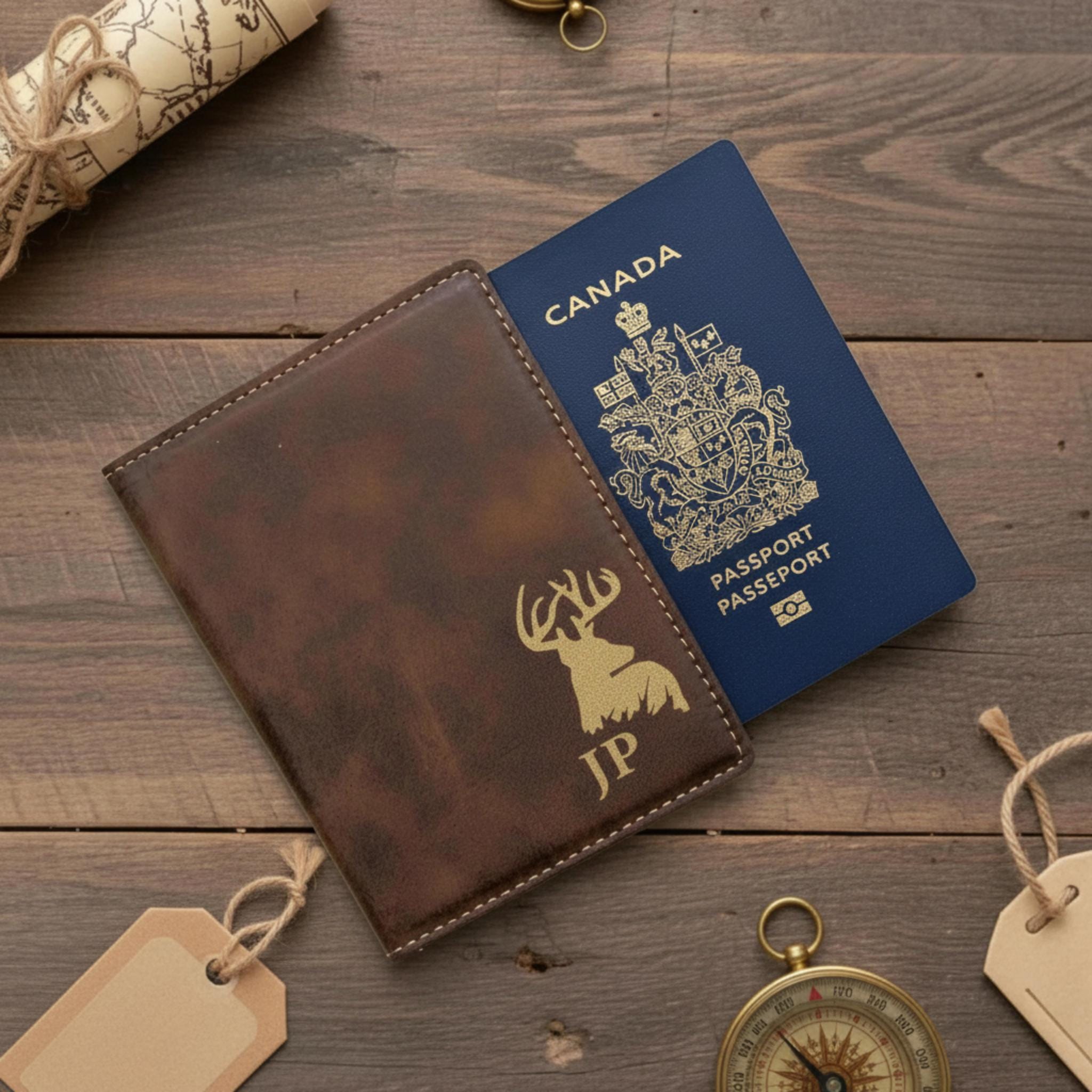 Personalized Passport Cover – Rustic Engraved vegan Elk passport holder | Nature-Inspired Outdoor Travel Accessory and Unique Gift