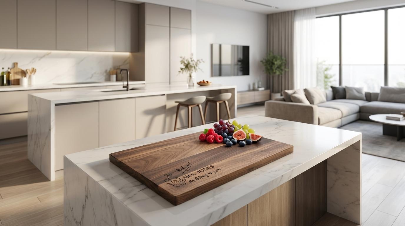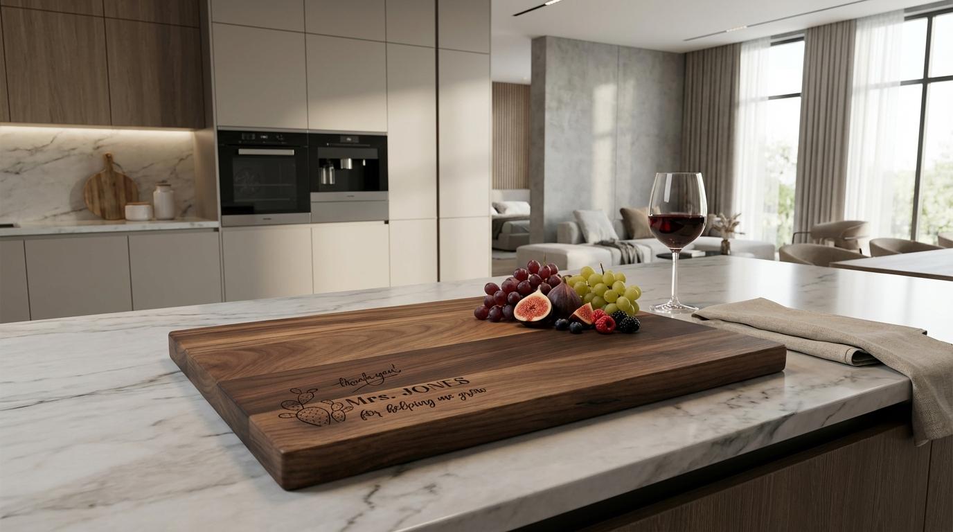 Premium Wood Choices: Available in rich Walnut and radiant Cherry wood, each option enhances the natural beauty of the engraving and complements any kitchen or home decor.