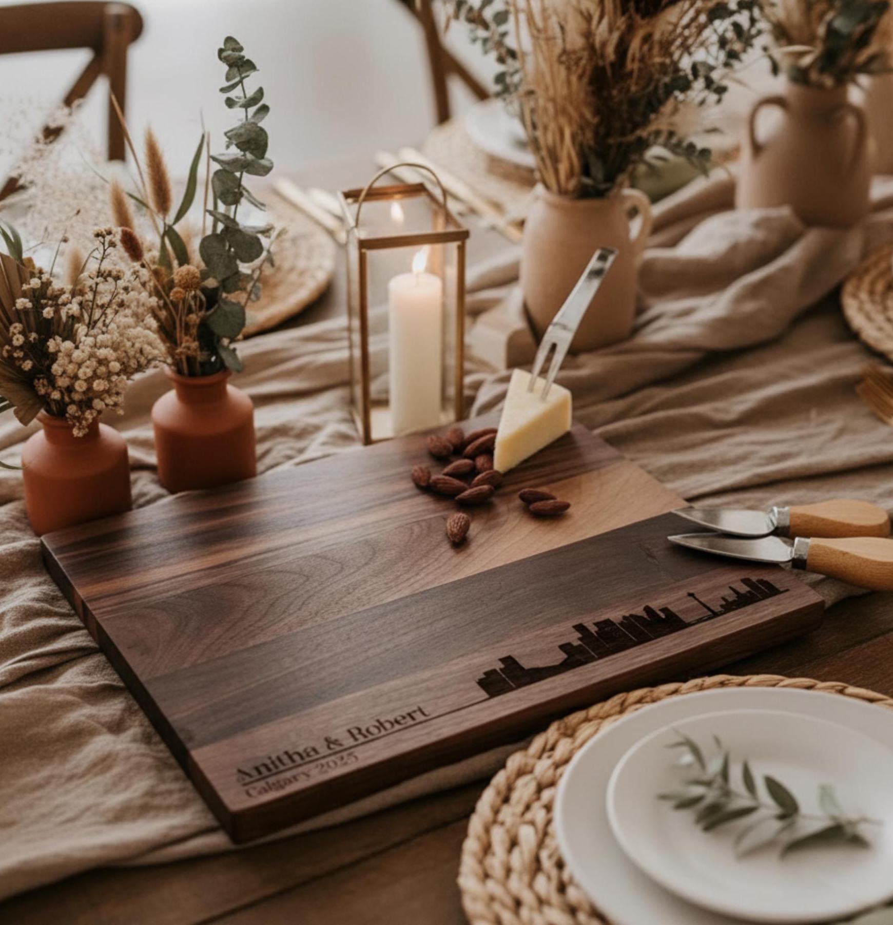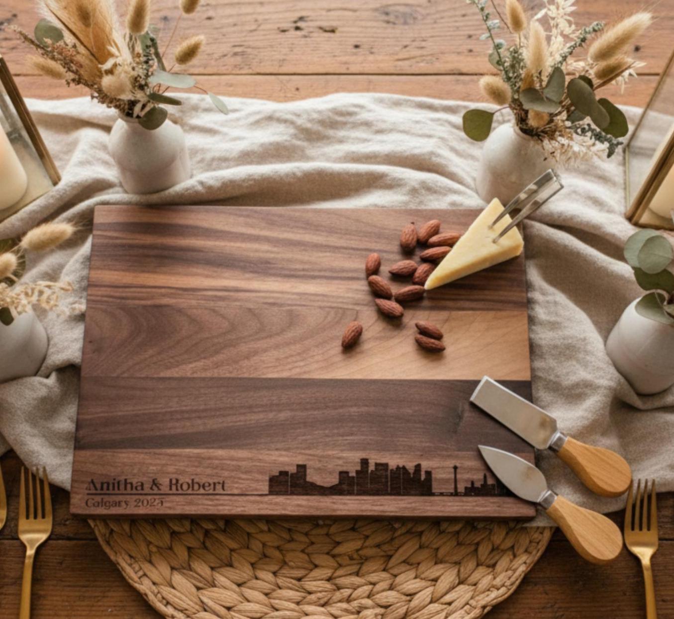 More than just a cutting board, this piece doubles as a serving platter, a decorative accent, and a symbol of their shared journey. Whether used daily or reserved for special occasions, it’s perfect for anyone who loves Calgary!