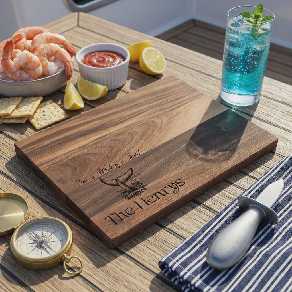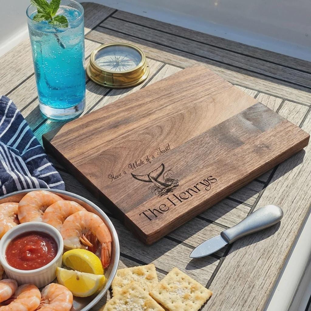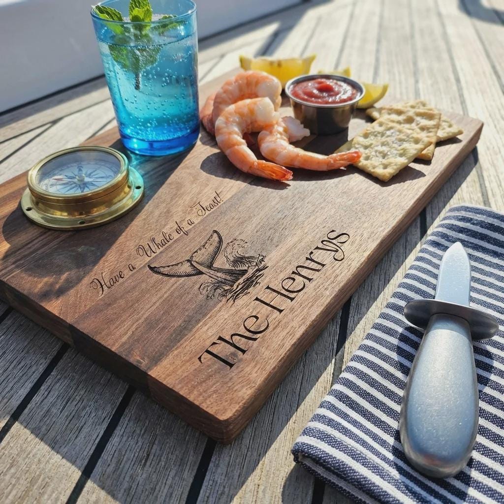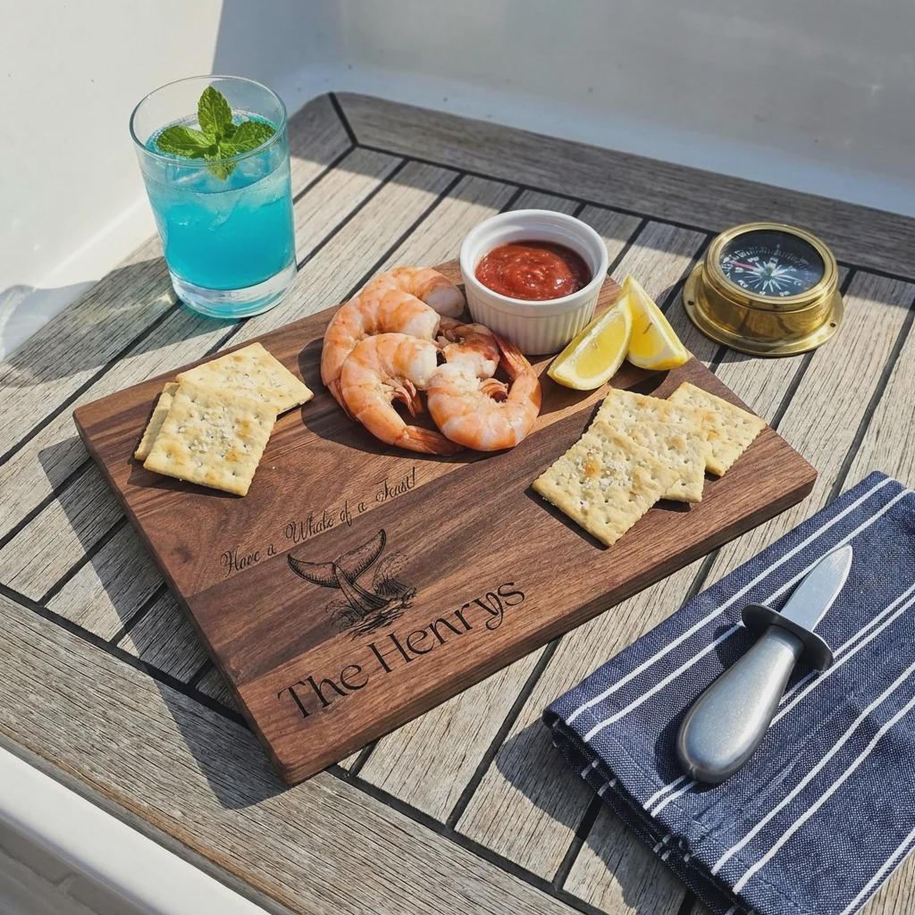 Nautical Quality & Craftsmanship: Each board is meticulously handcrafted to showcase the natural beauty of high-quality wood while emphasizing detailed engraving, ensuring a piece that is both distinctive and durable.