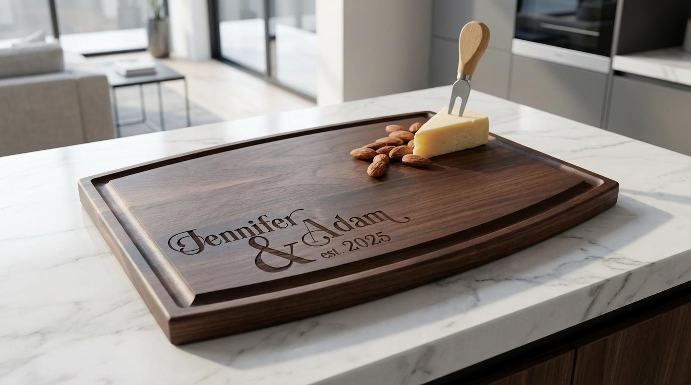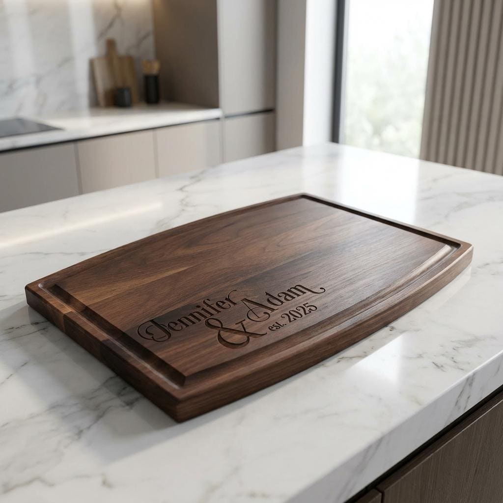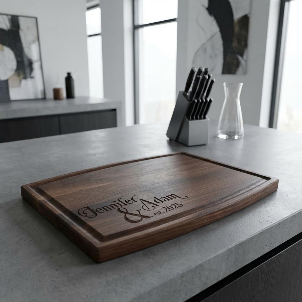 Personalized Cutting Board with Juice Groove | Custom Walnut Charcuterie Board & Wedding Gift for Couple