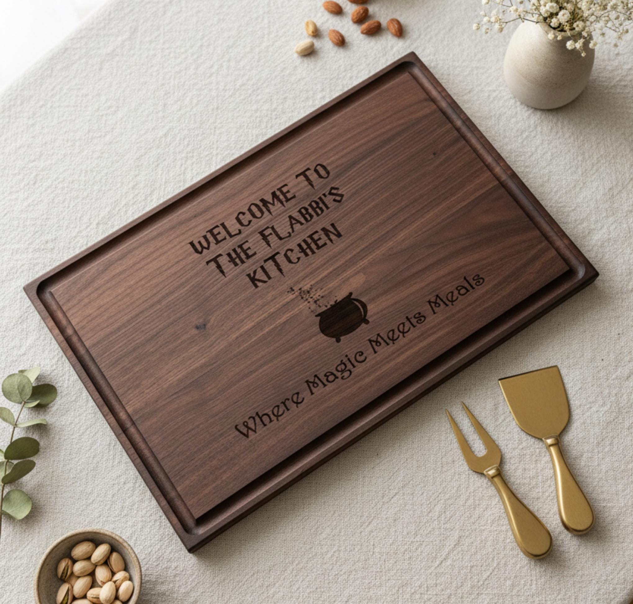 Let your kitchen shine with wizarding charm! Order your personalized cutting board today and experience the magic of a handcrafted masterpiece.