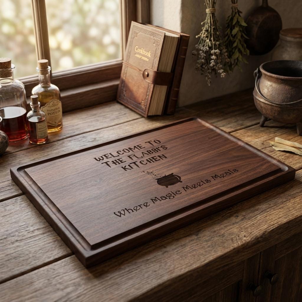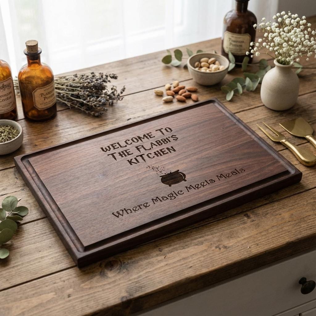 Let your kitchen shine with wizarding charm! Order your personalized cutting board today and experience the magic of a handcrafted masterpiece.