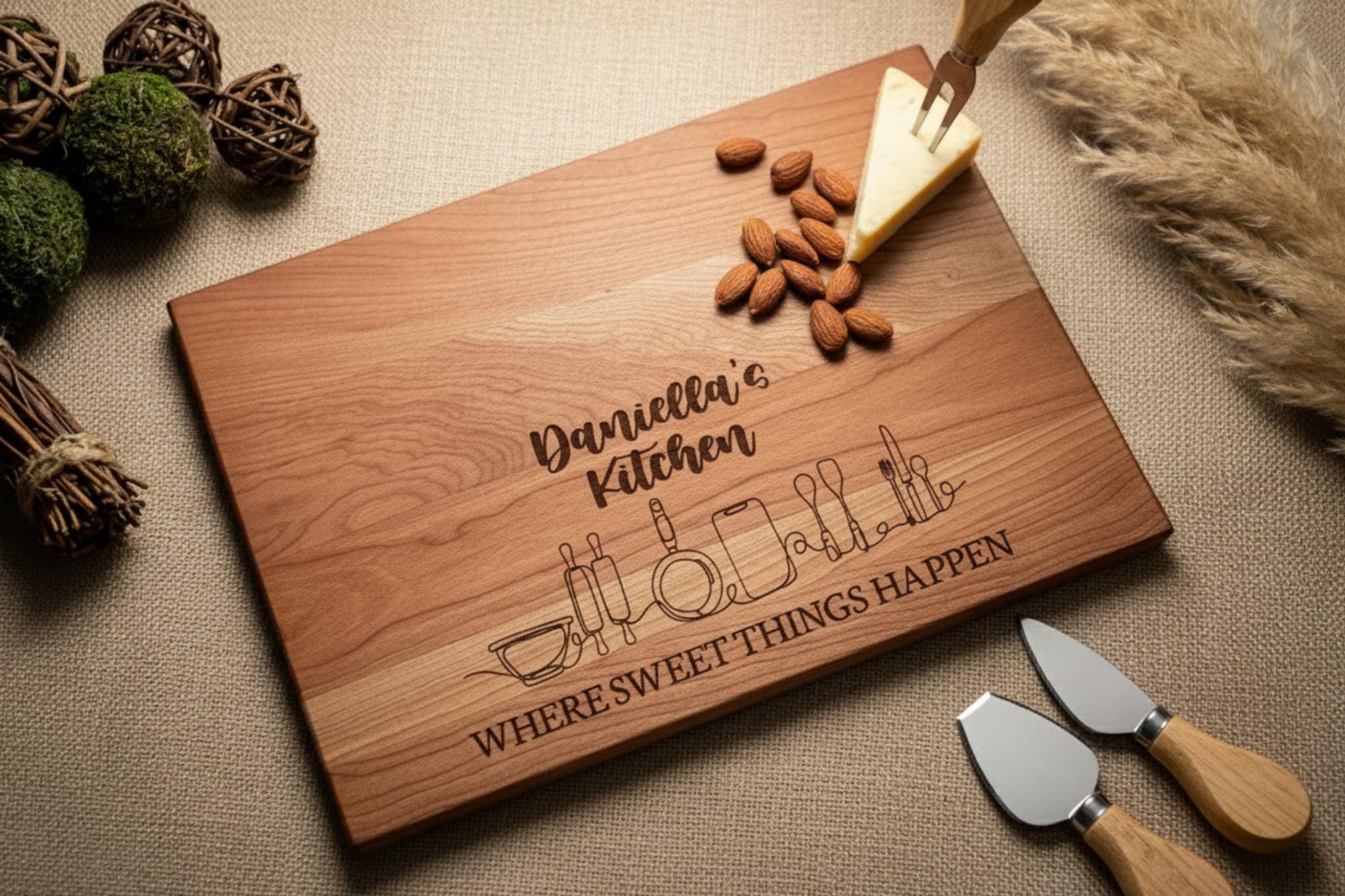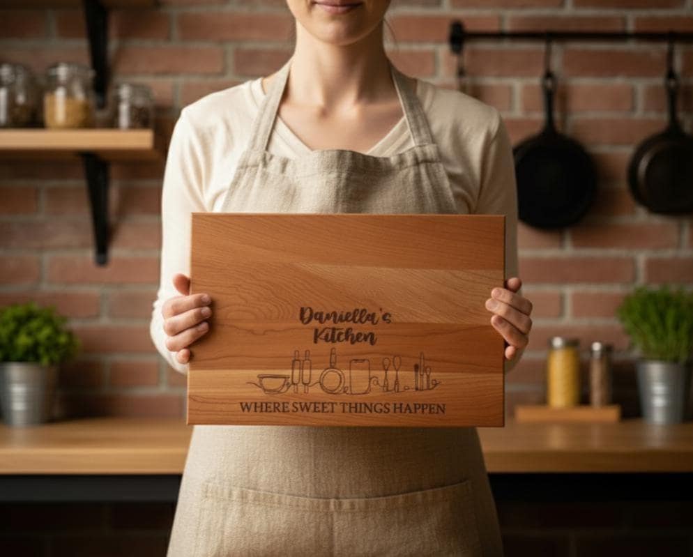 The Ultimate Gift for the Heart of Your Home Whether it’s for Mother’s Day, a birthday, or simply to celebrate her passion for cooking, this personalized cutting board encapsulates the blend of functionality and charm. It’s more than just a kitchen accessory—it’s a heartfelt tribute to the love and creativity that fills her kitchen every day.