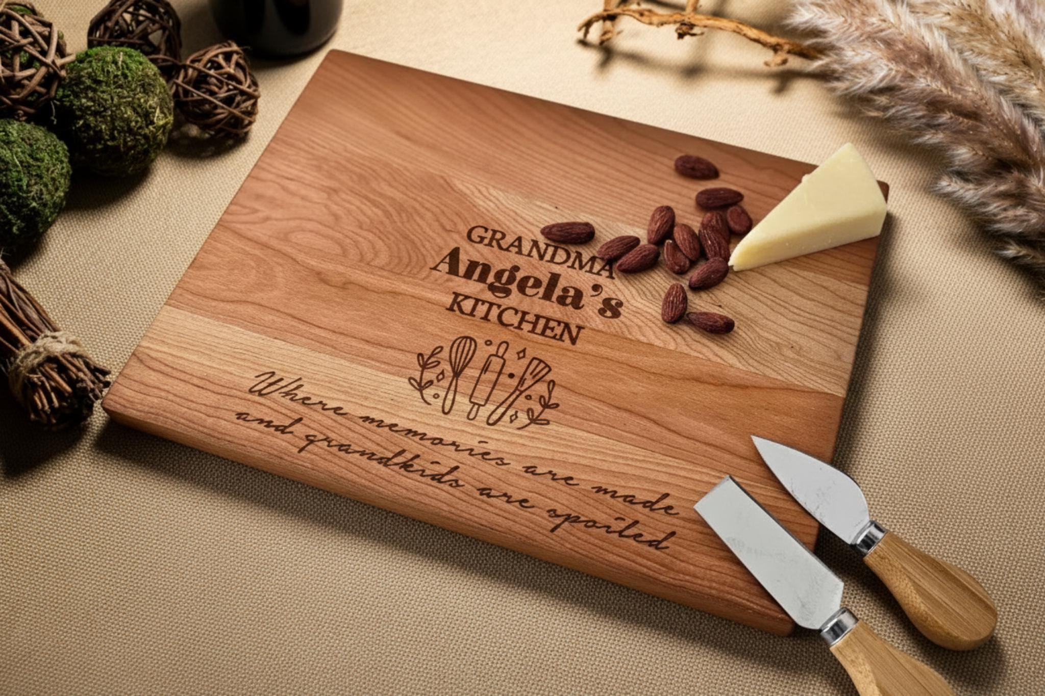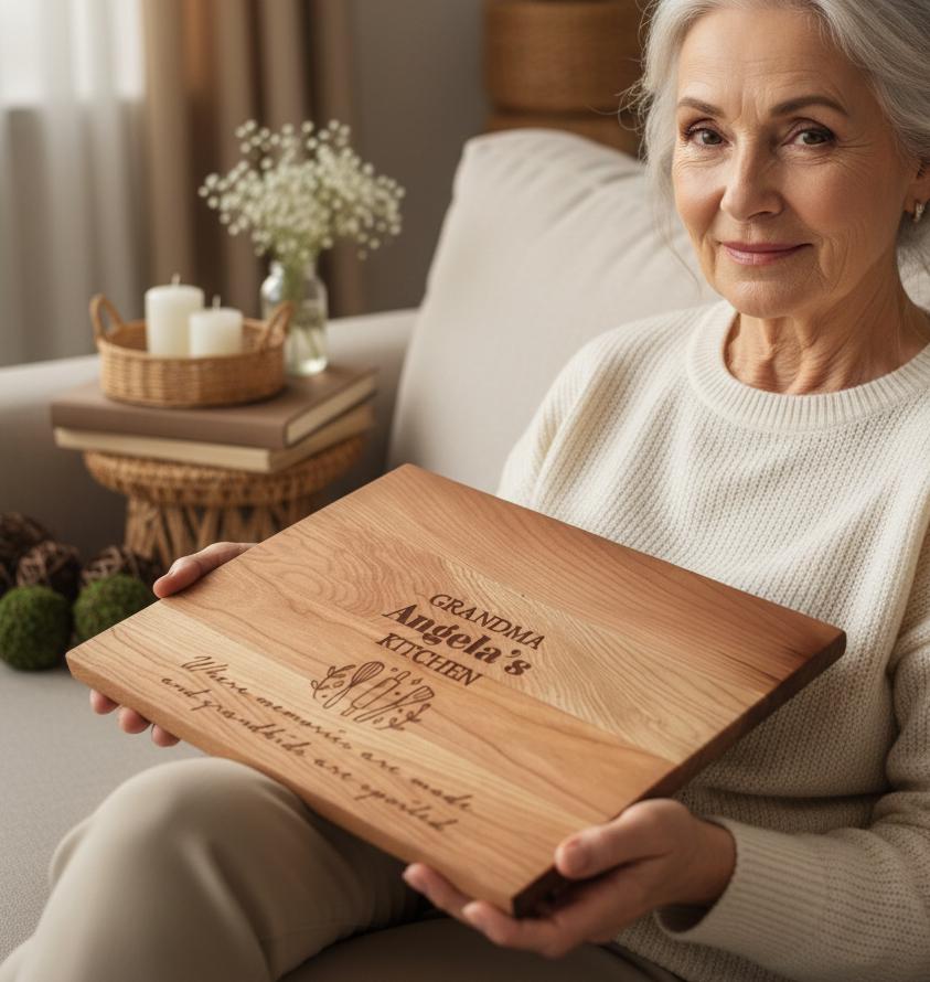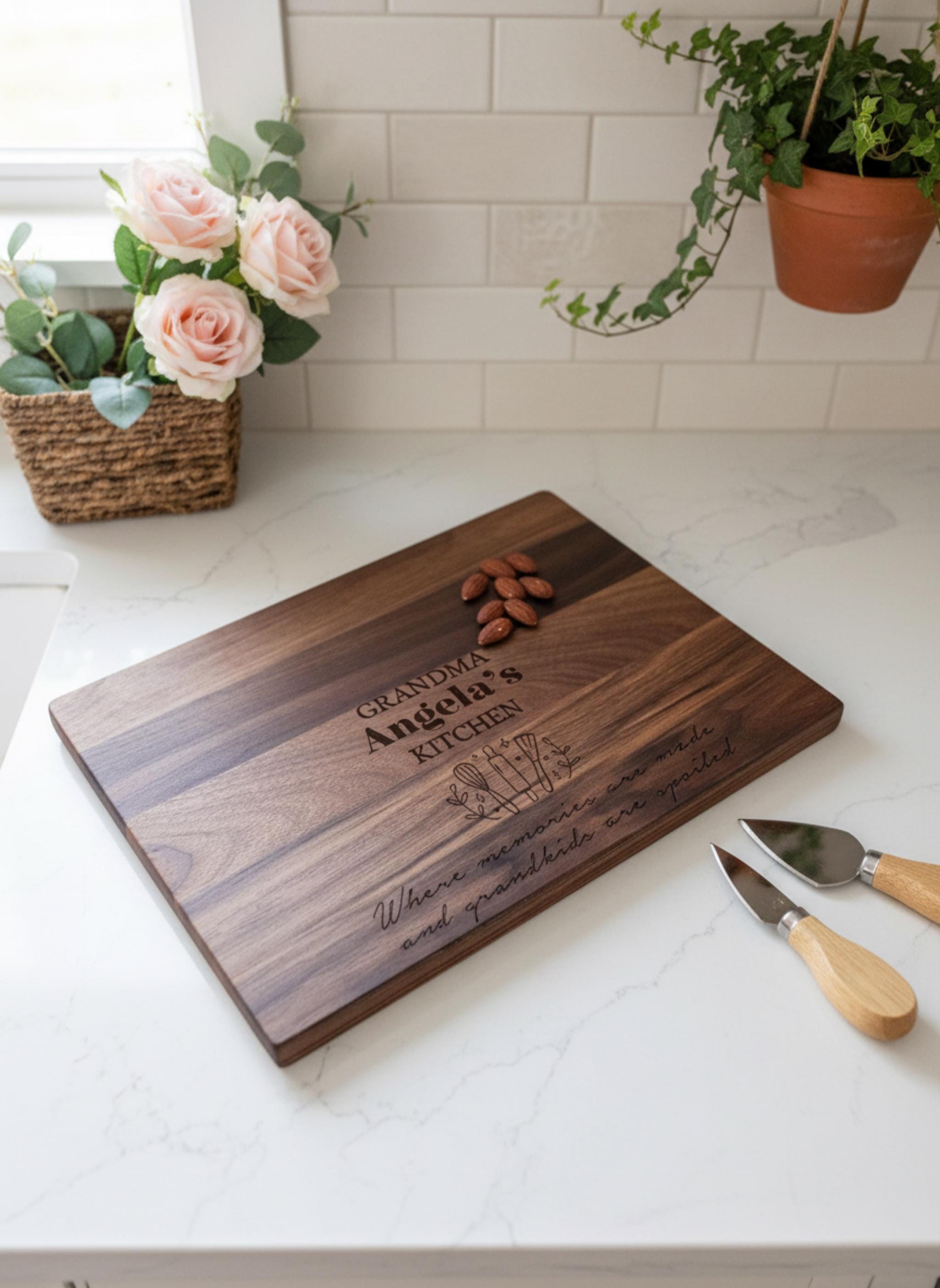 Celebrate the timeless charm of family with our Personalized Kitchen Cutting Board designed especially for Grandma. This enchanting piece transforms her kitchen into a cherished haven where every meal carries the warmth of love and the laughter of generations. Handcrafted with passion and precision, it proudly displays the heartfelt engraving: