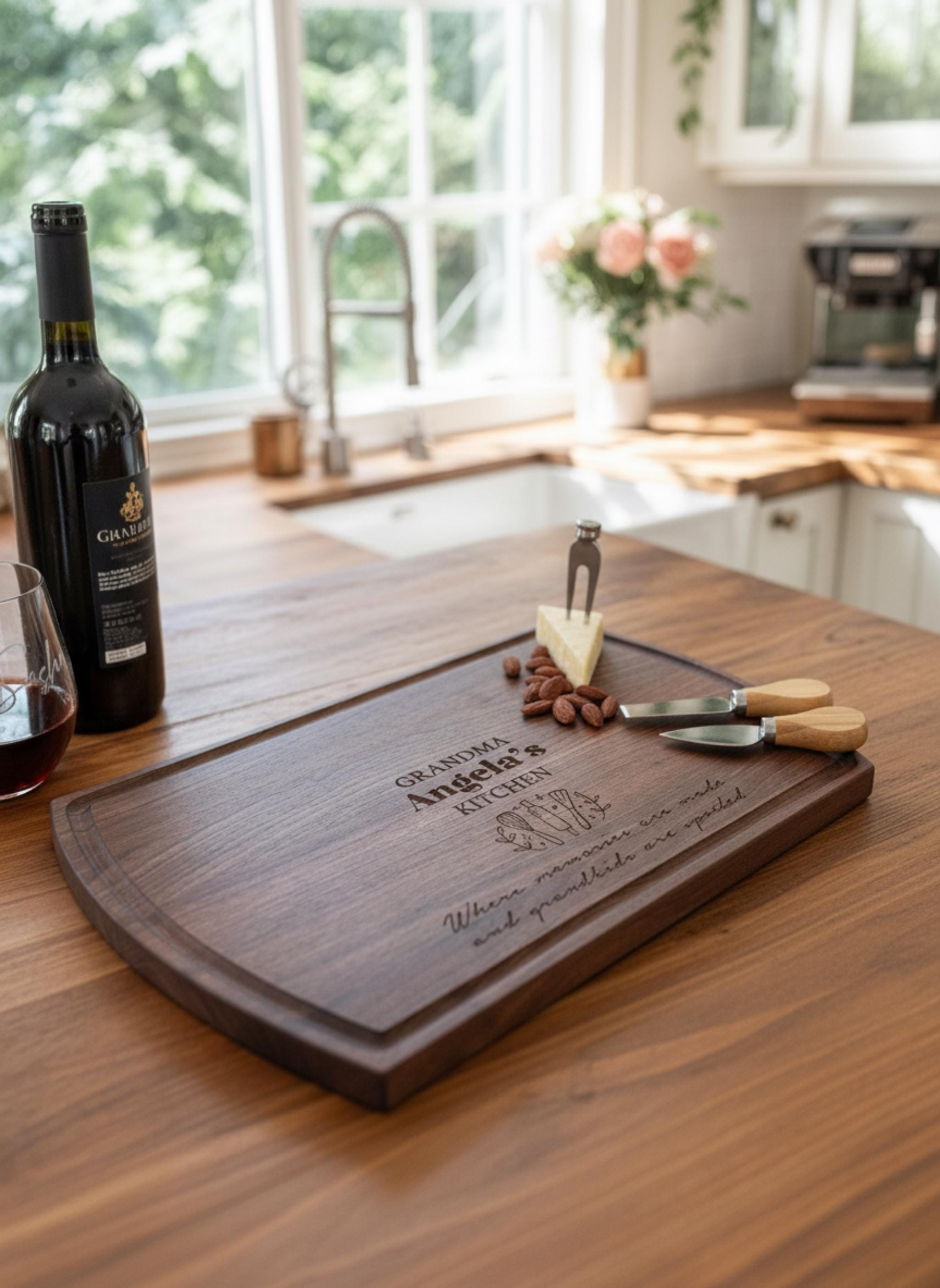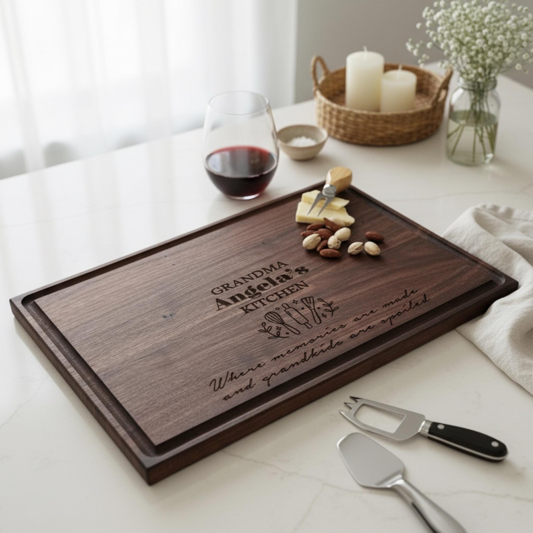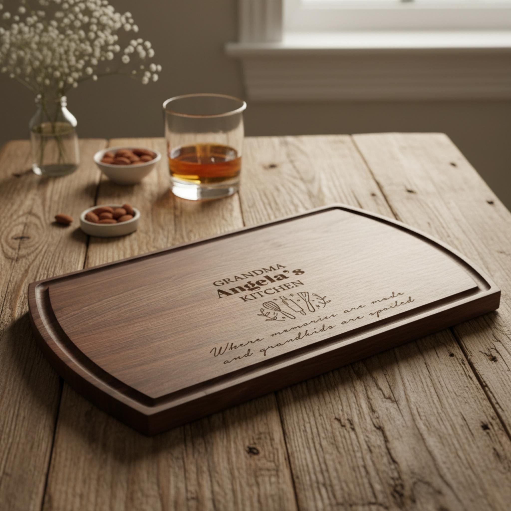 Celebrate the timeless charm of family with our Personalized Kitchen Cutting Board designed especially for Grandma. This enchanting piece transforms her kitchen into a cherished haven where every meal carries the warmth of love and the laughter of generations. Handcrafted with passion and precision, it proudly displays the heartfelt engraving: