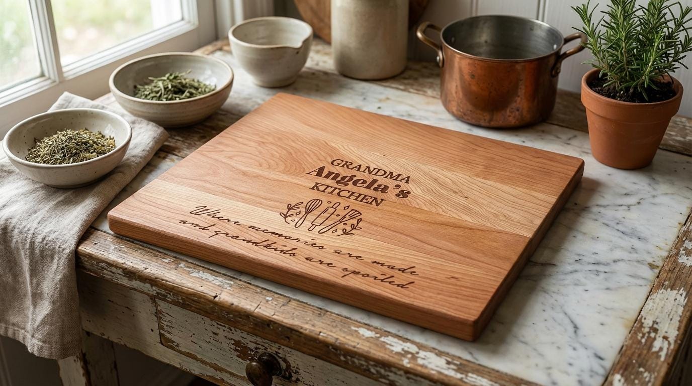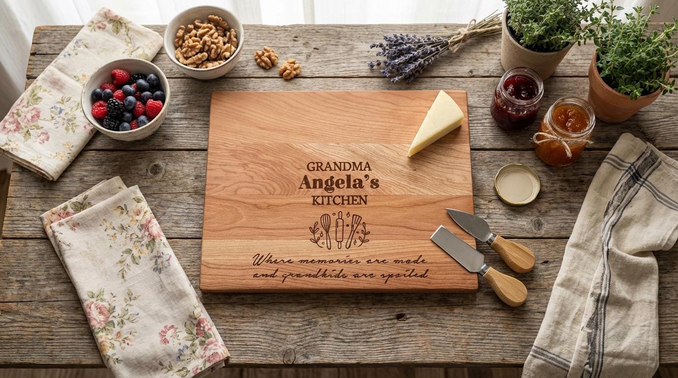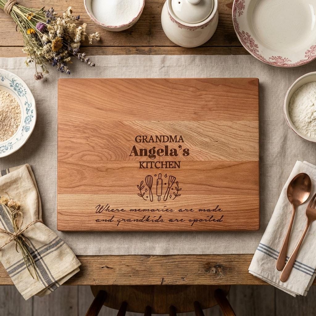 Let her kitchen exude warmth, nostalgia, and a touch of enchantment. Click “Add to Cart” now to customize this exquisite board and give Grandma a daily reminder that, in her kitchen, every moment is filled with love and memories waiting to be made.