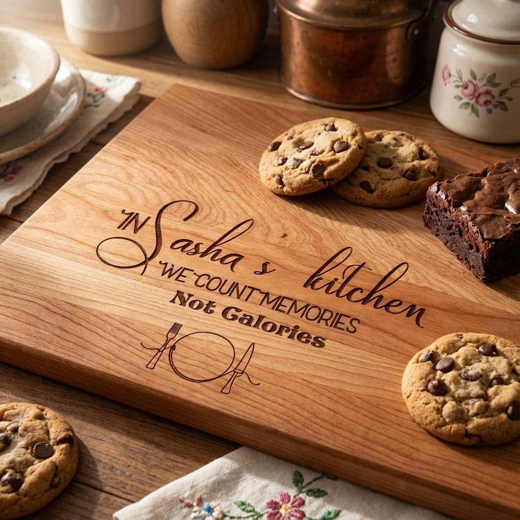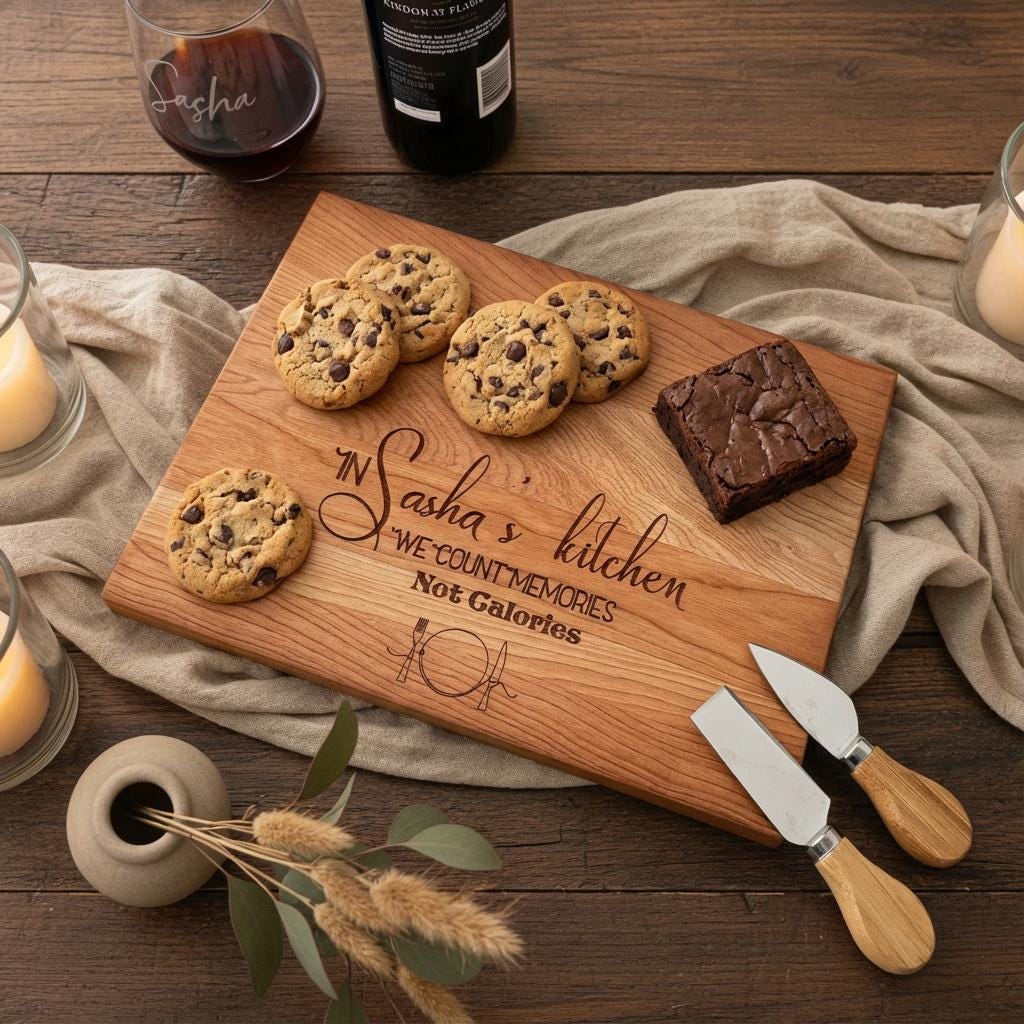 Personalized Cutting Board for Mom | "We Count Memories Not Calories" Charcuterie Board & Funny Kitchen Gift