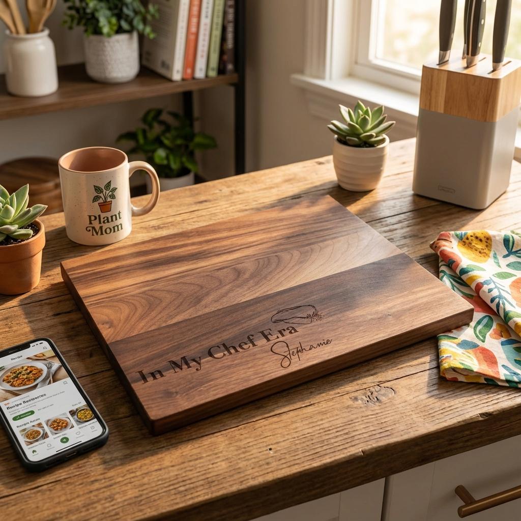 Celebrate their new hobby with this personalized 'In My Chef Era' cutting board. Whether they are mastering the air fryer or gourmet meals, this custom walnut charcuterie board is the ultimate funny cooking gift for boyfriends, girlfriends, or any foodie leveling up their skills.