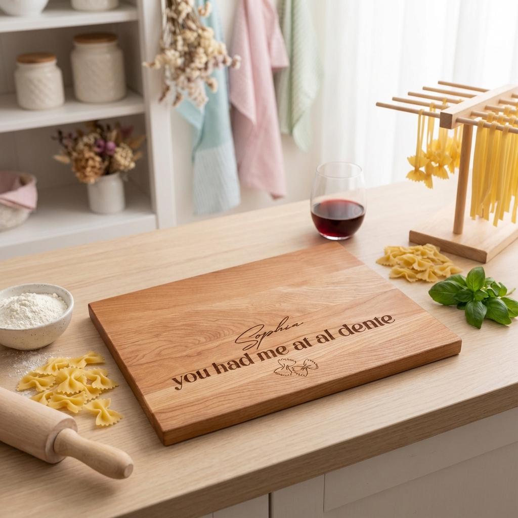 Custom Design: Engraved with "You Had Me At Al Dente," a pasta-inspired design, and your personalized name for a one-of-a-kind keepsake.