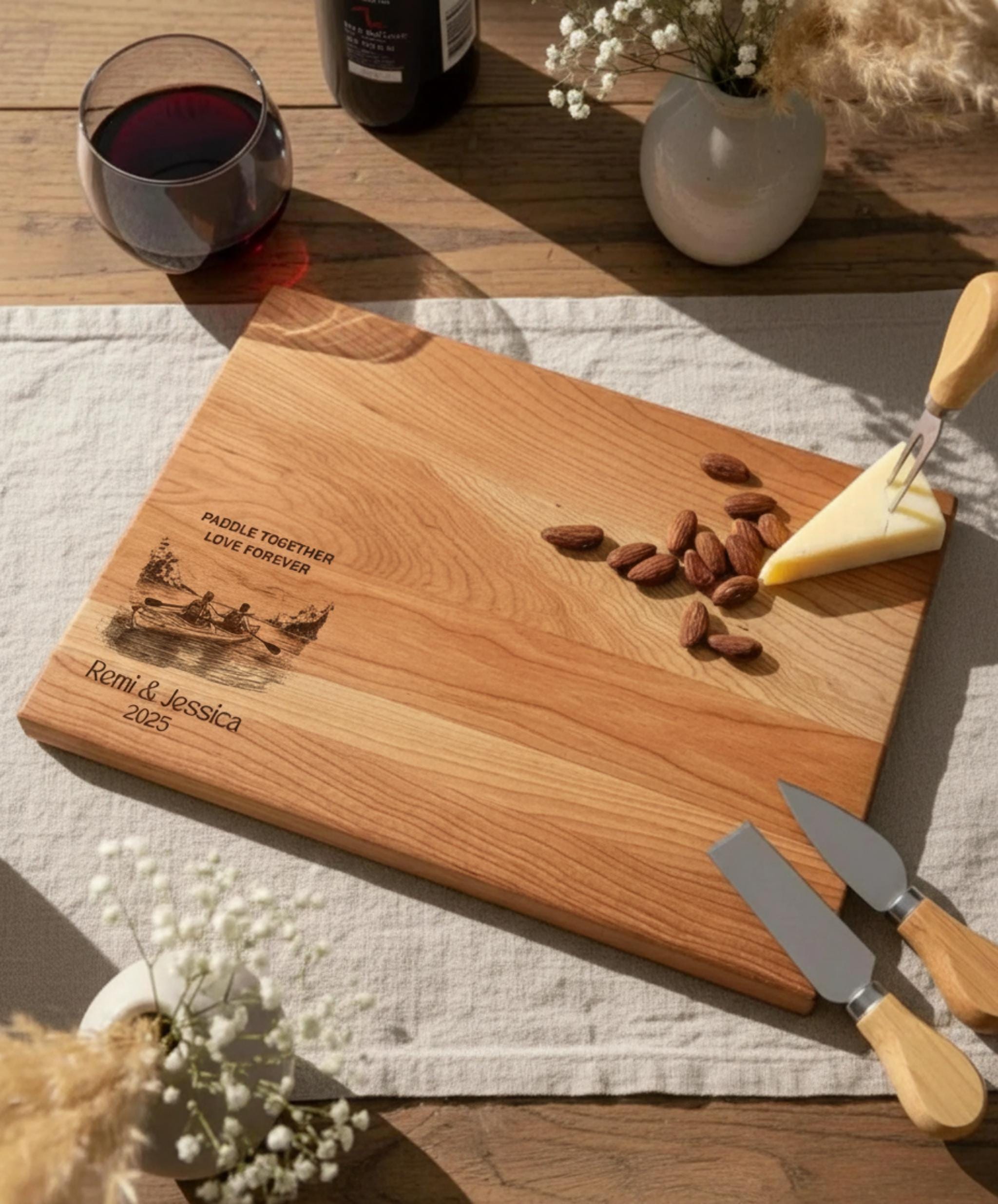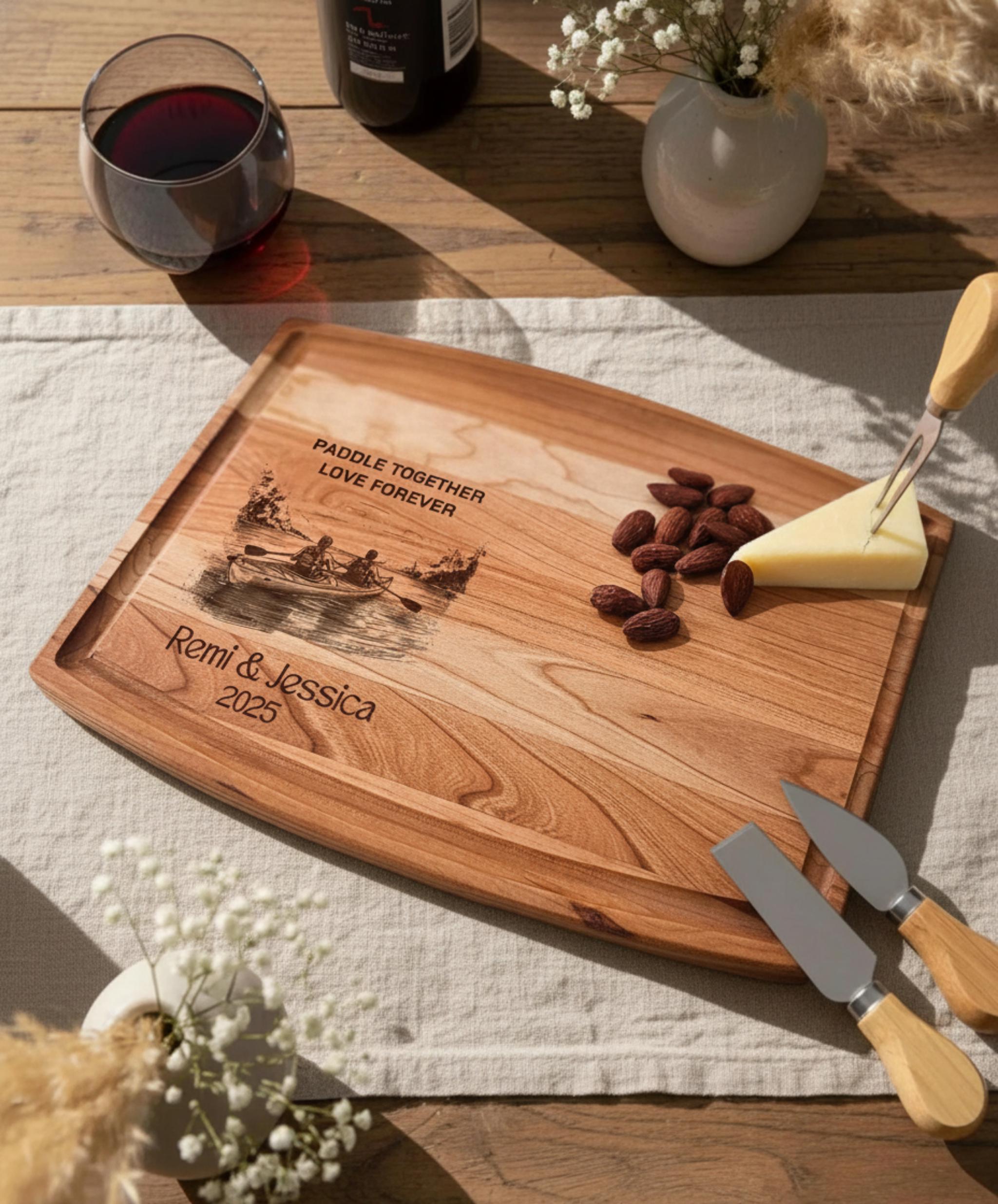 Celebrate Shared Adventures: This cutting board beautifully captures your bond, whether you're paddling down serene rivers, exploring hidden lakes, or enjoying the thrill of open waters.