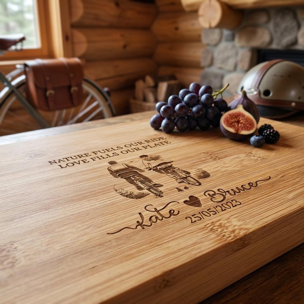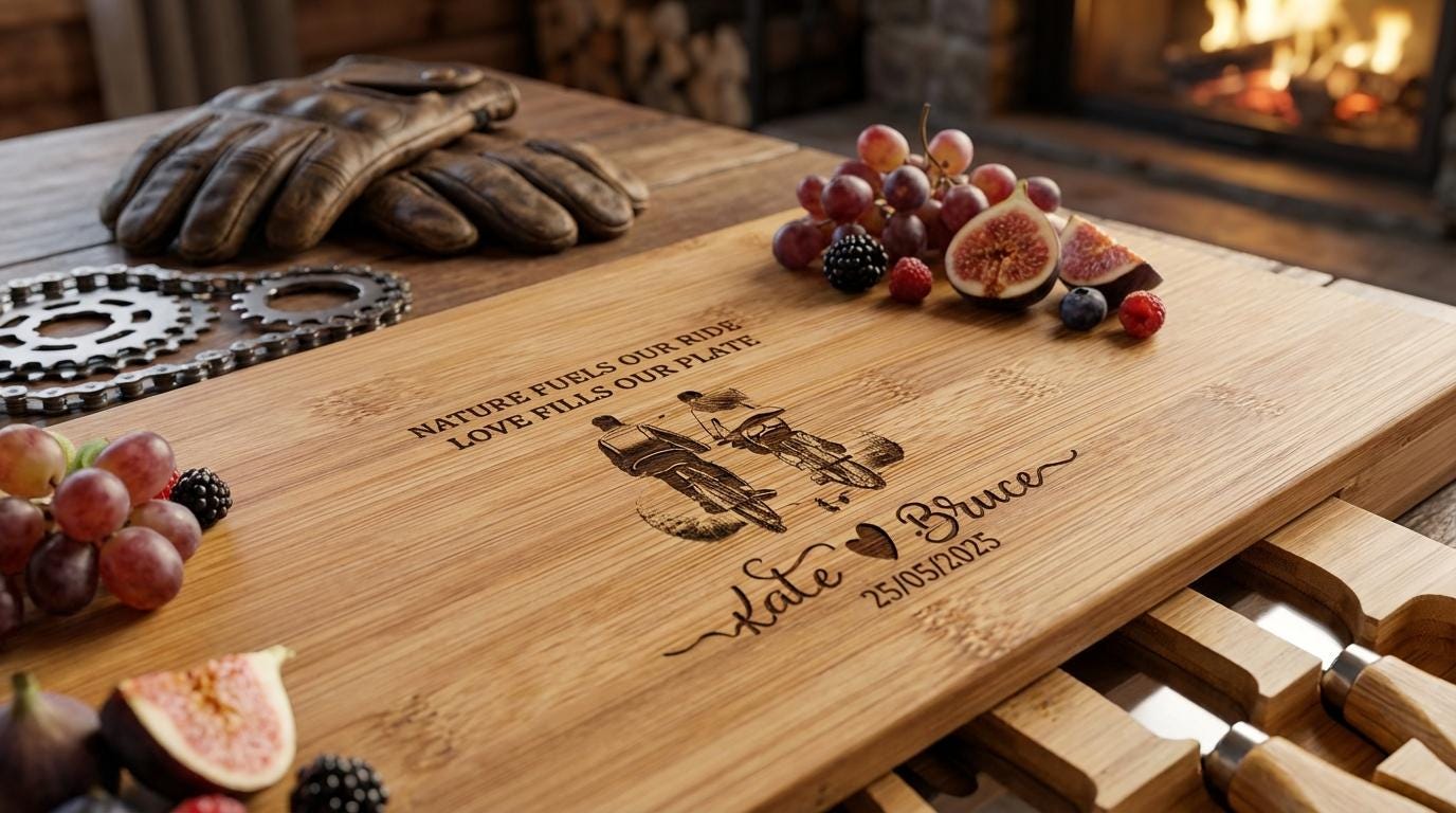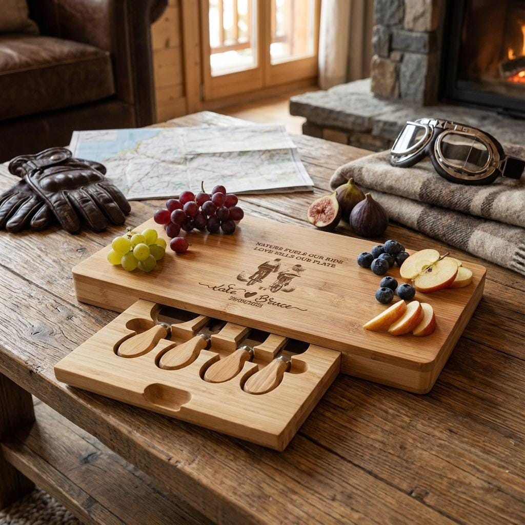 Biking-Inspired Fun: The engraved design incorporates a touch of romance and adventure, making this cheeseboard a conversation starter at any gathering.