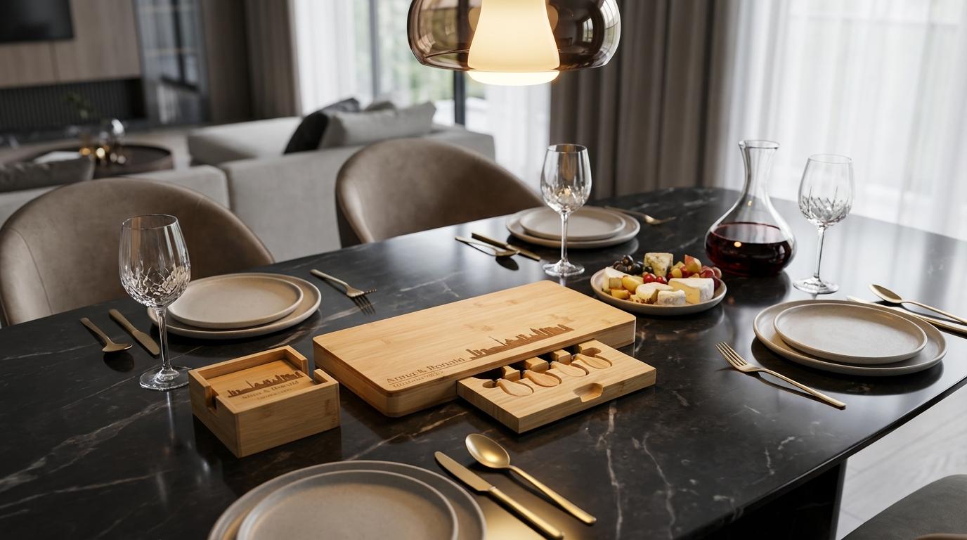 For couples who cherish their memories made in the vibrant city of Toronto, our custom engraved bamboo cheese board is the perfect keepsake. Crafted from sustainable bamboo, this board is designed for sharing moments and delicious treats while reminiscing about your time in the 6ix. It’s more than just a cheese board; it's a celebration of your shared connection to Toronto and the love you've built together.