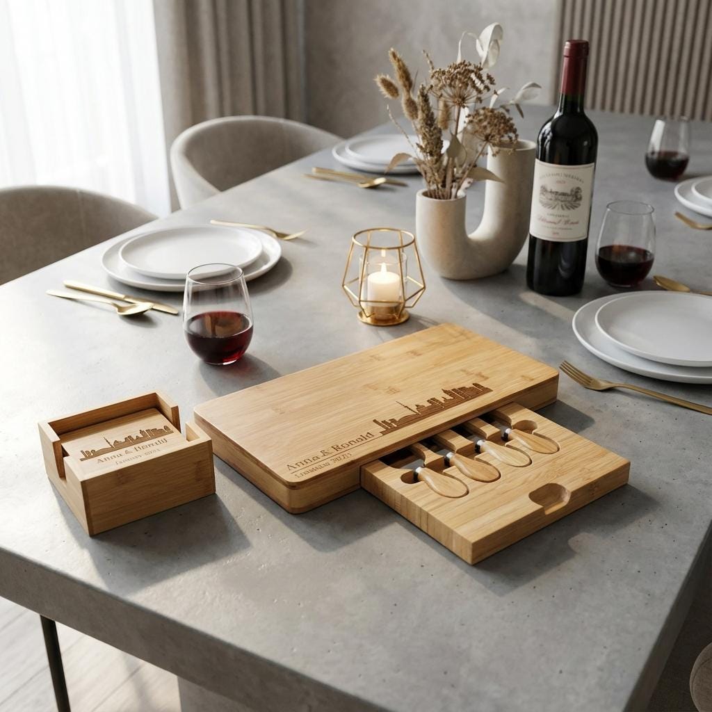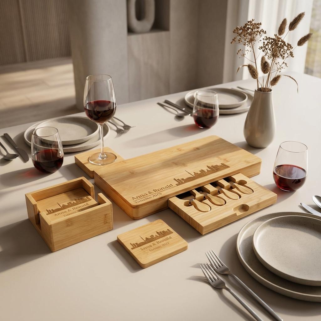 The Complete Combo: Get the best of both worlds with our set including the cheese board with utensils and the 5-piece coaster set.