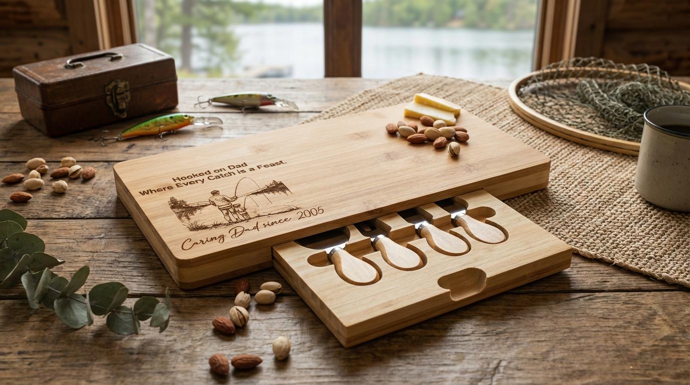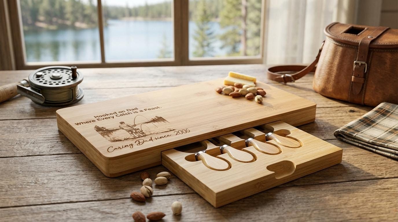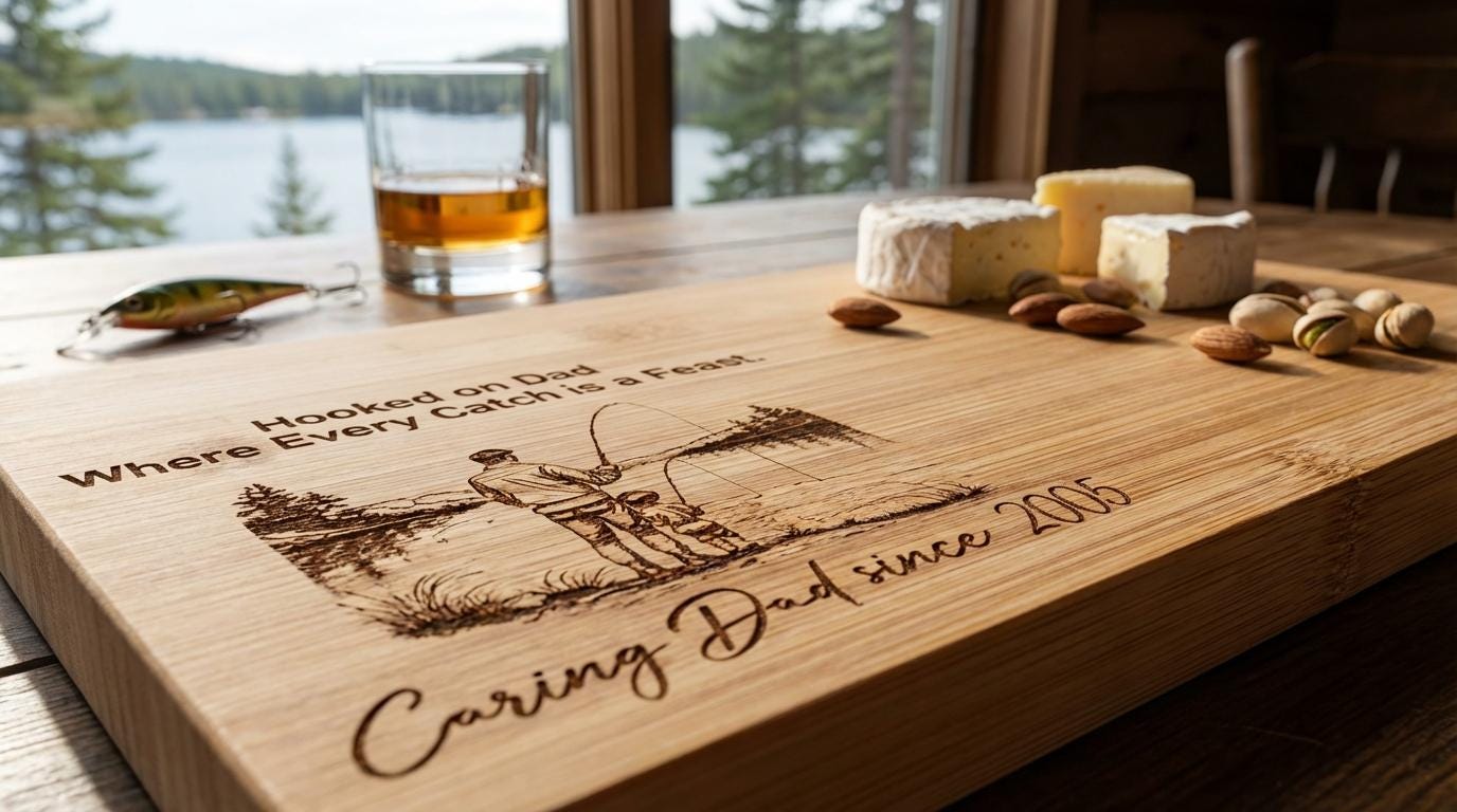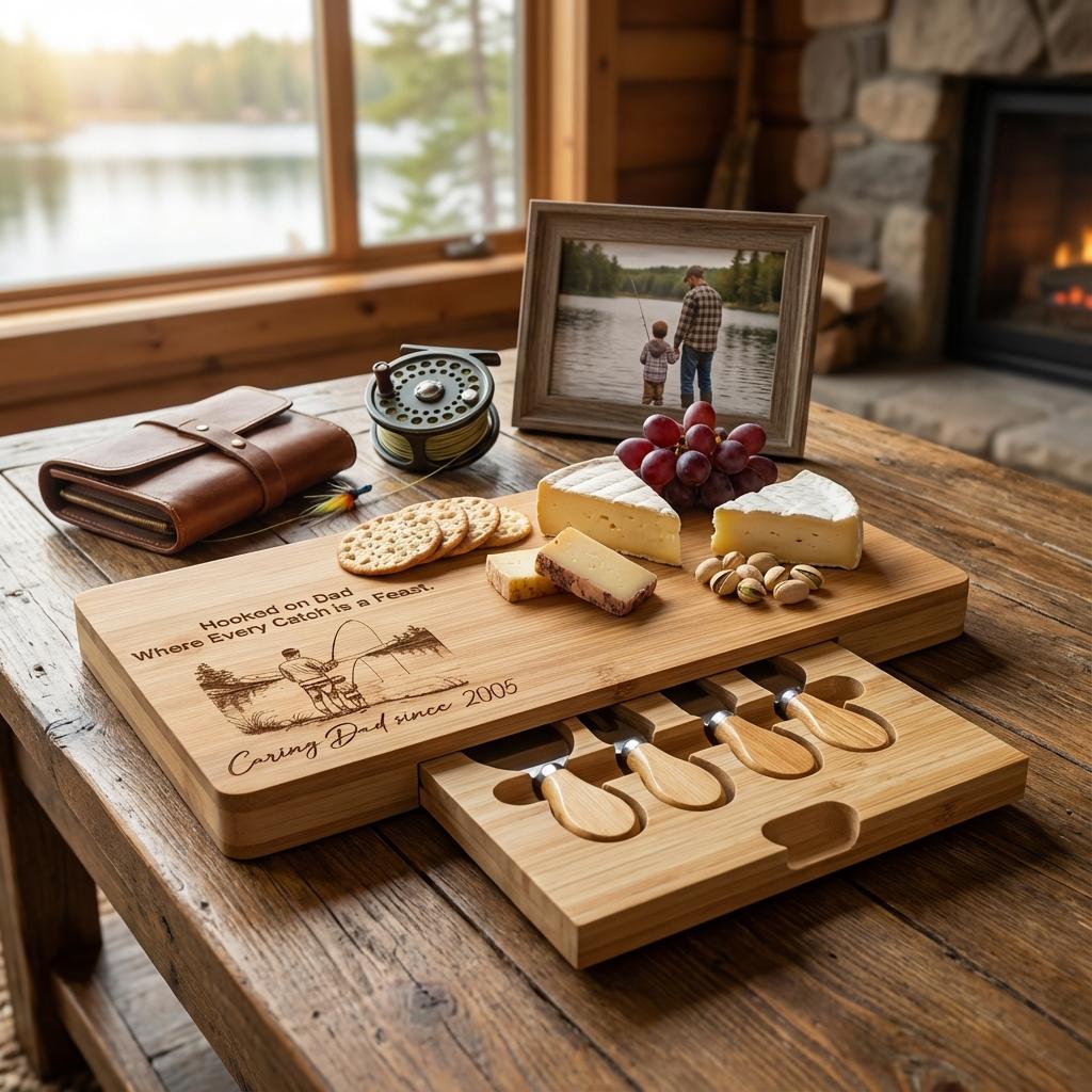 Celebrate the timeless bond between father and child with a tribute to your favorite fishing buddy. Whether you are swapping stories about the "one that got away" or serving up snacks at the cabin, this custom bamboo board is designed to bring those cherished memories to the table.