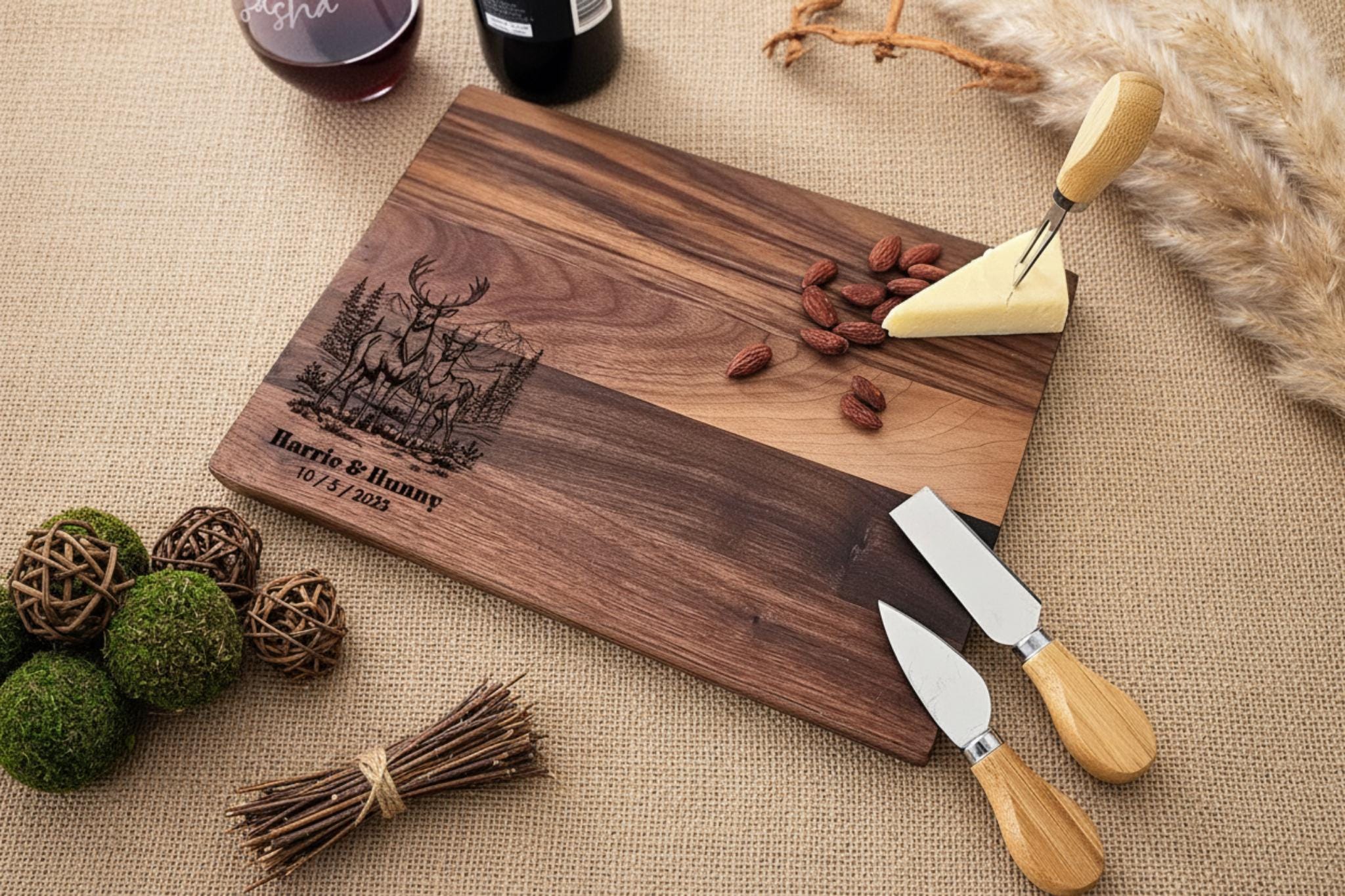 Personalized Deer Cutting Board – Custom Engraved Charcuterie Board: Unique Wedding, Housewarming, Anniversary Gift for Hostess & Deer Lover