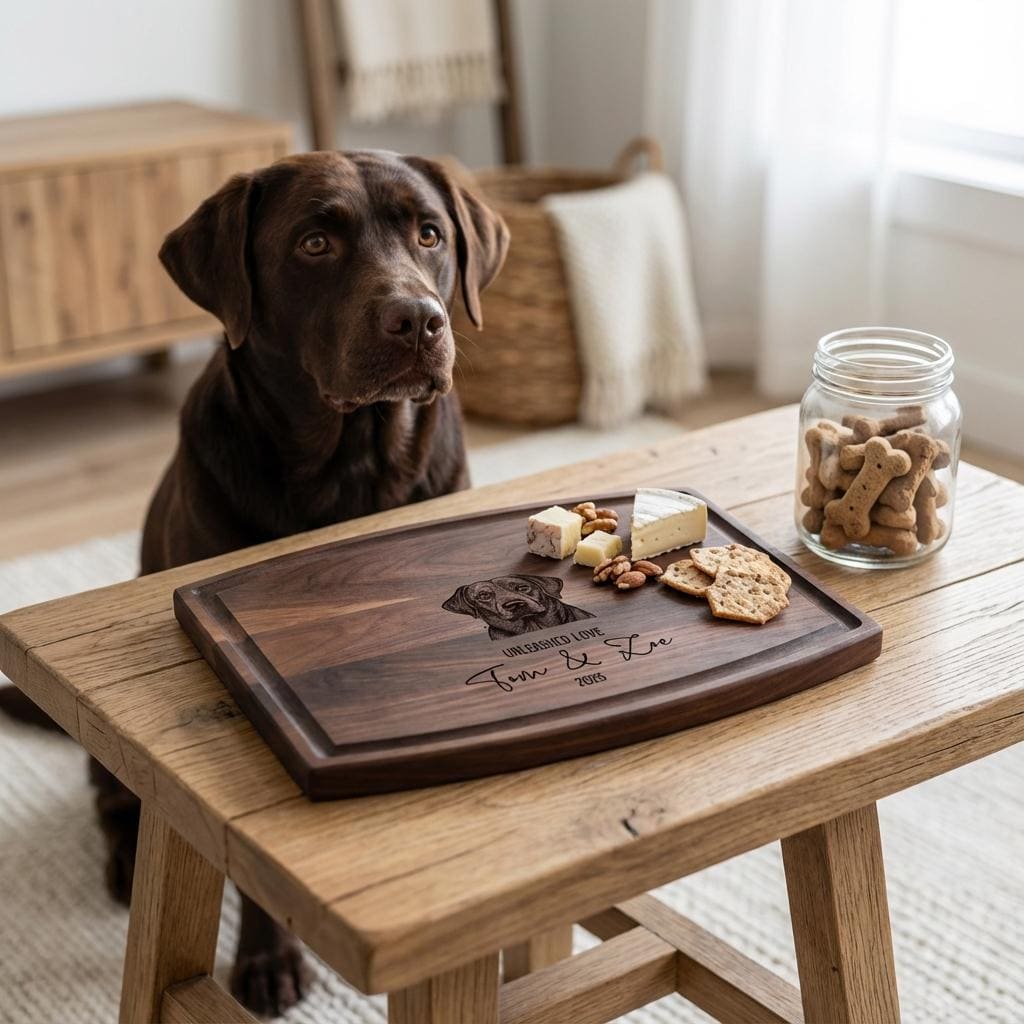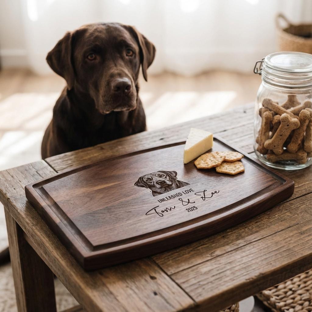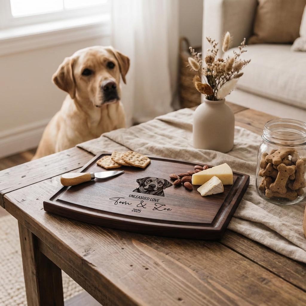 This unique piece is handcrafted with care to bring warmth and charm into your kitchen. Whether you're using it to prepare meals or displaying it as a keepsake, it will remind you of the joyful moments you share with each other and your four-legged companion.