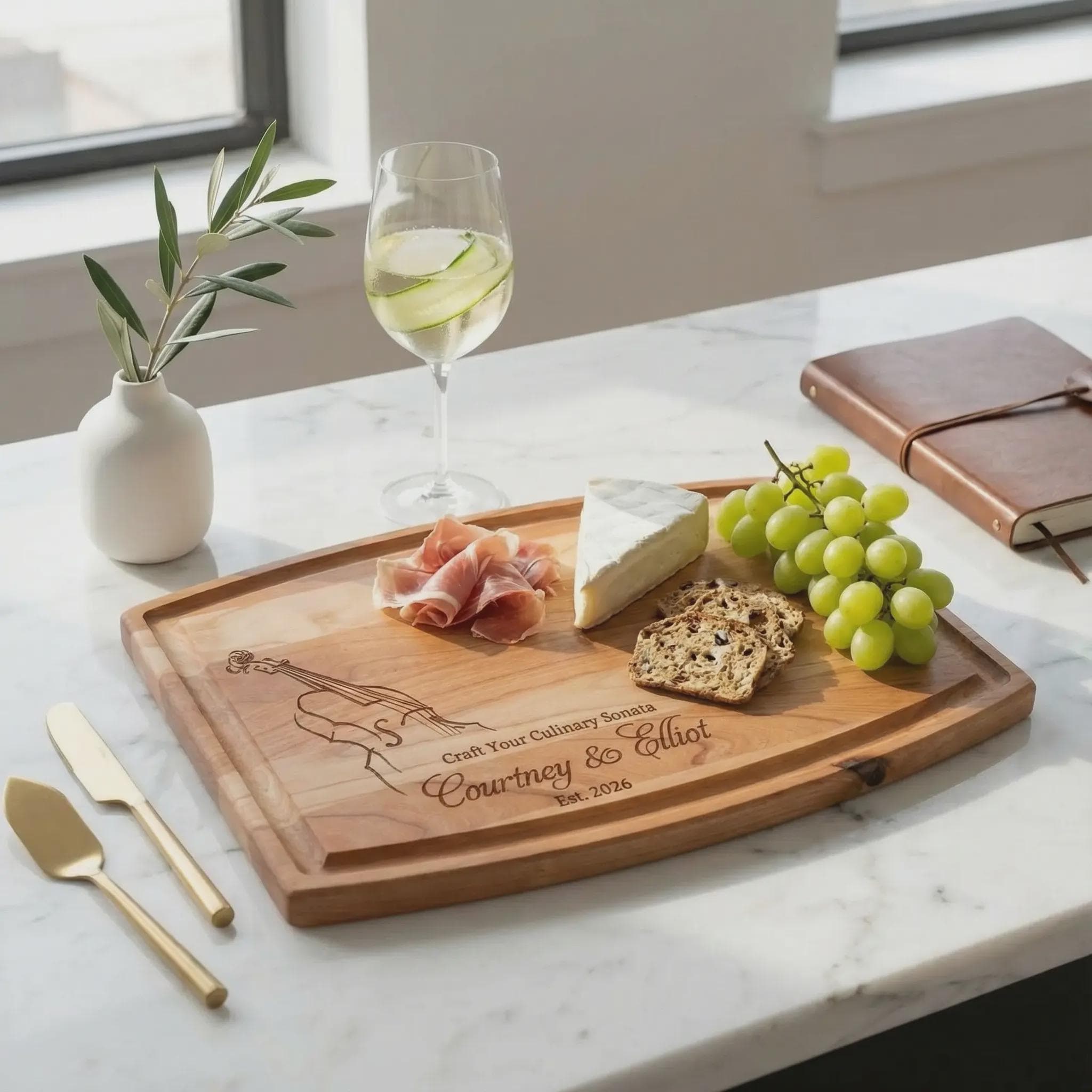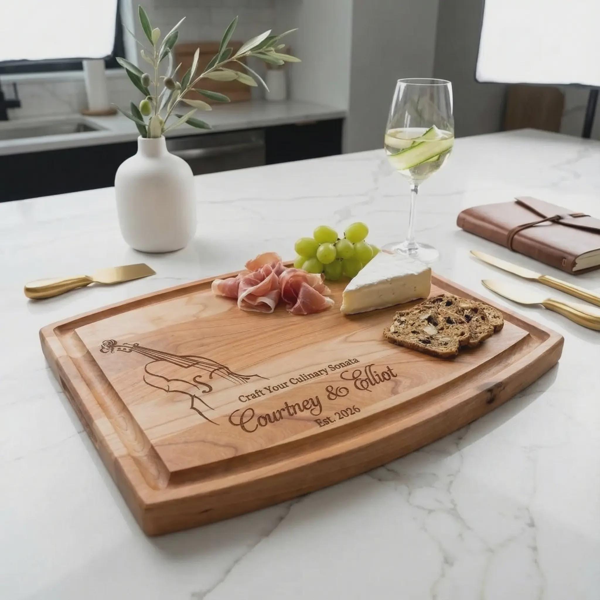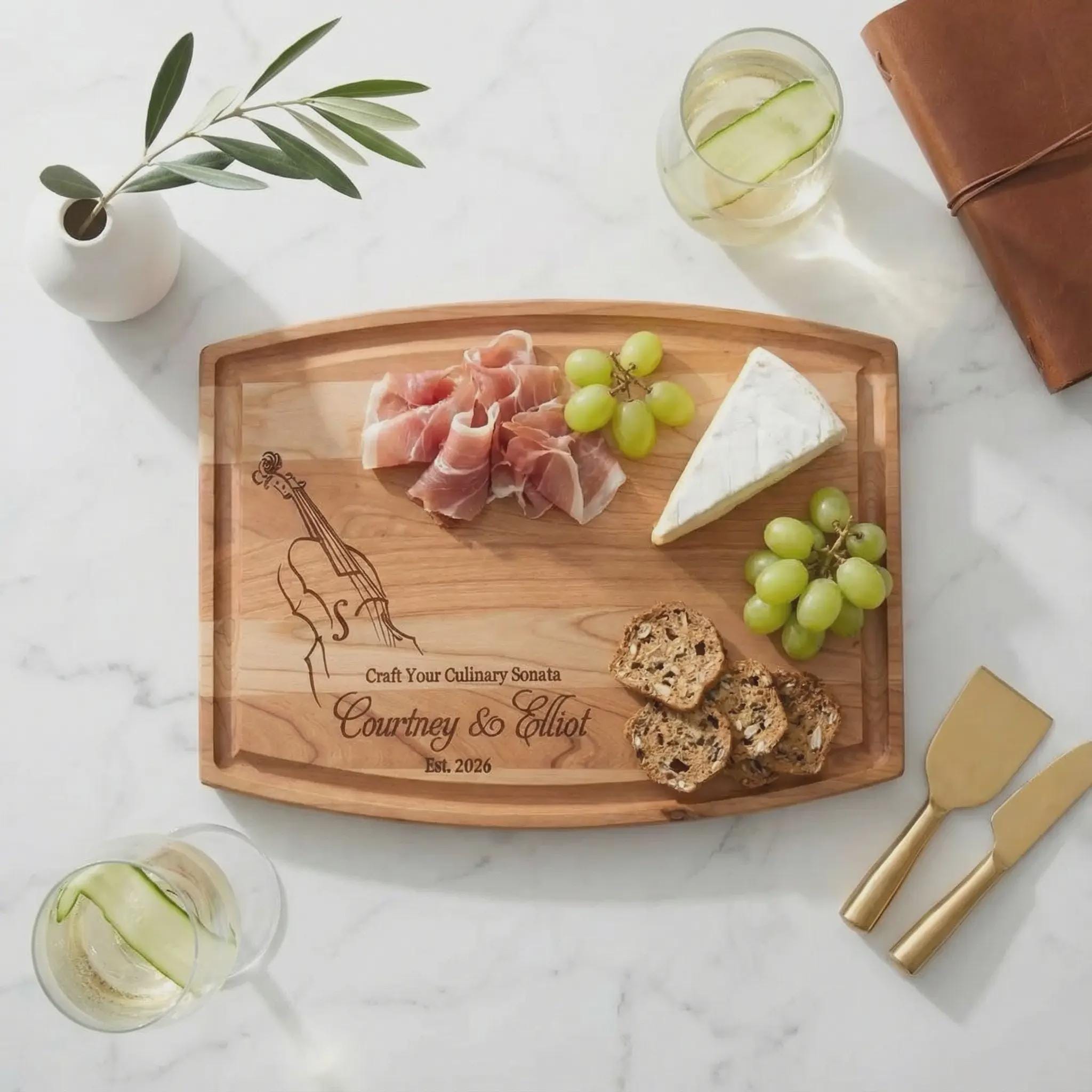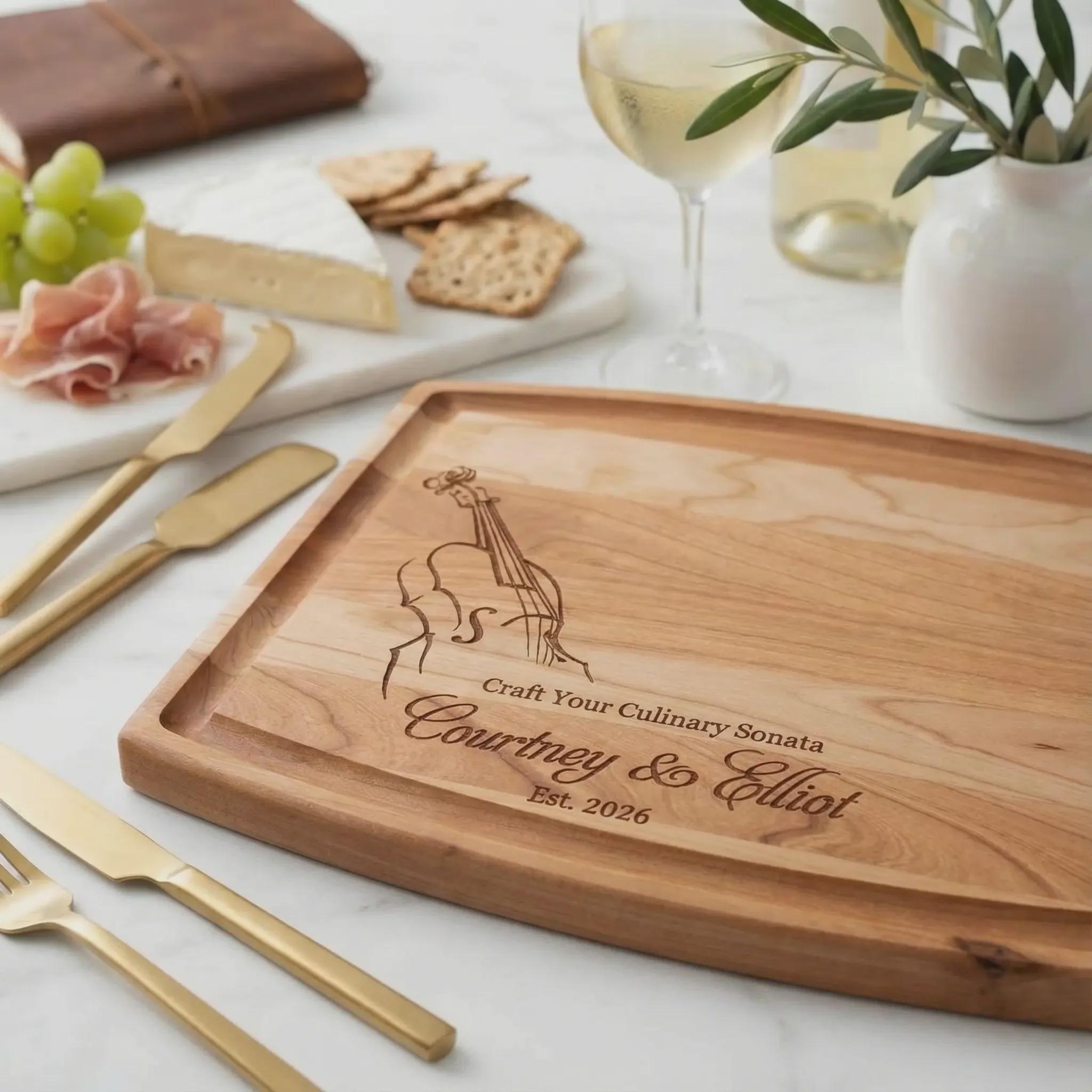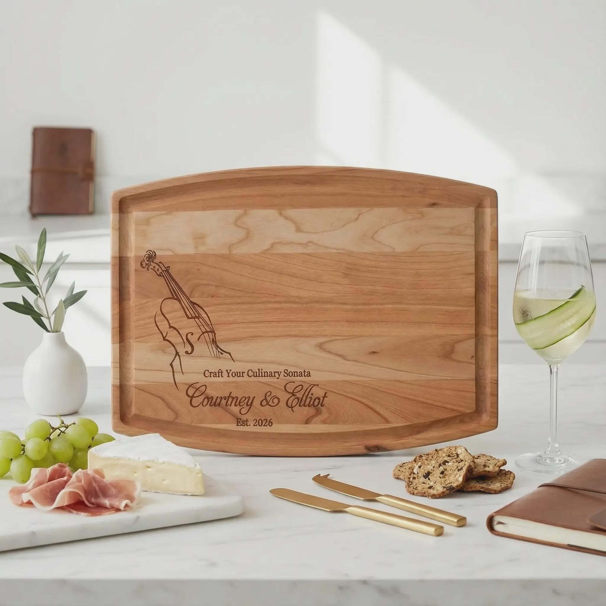Personalized Violin Cutting Board | "Culinary Sonata" Musician Gift & Cello Wedding Present for Couple
