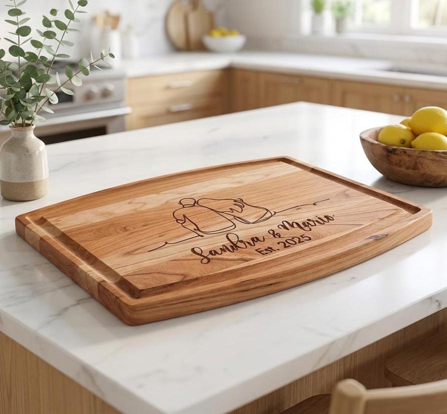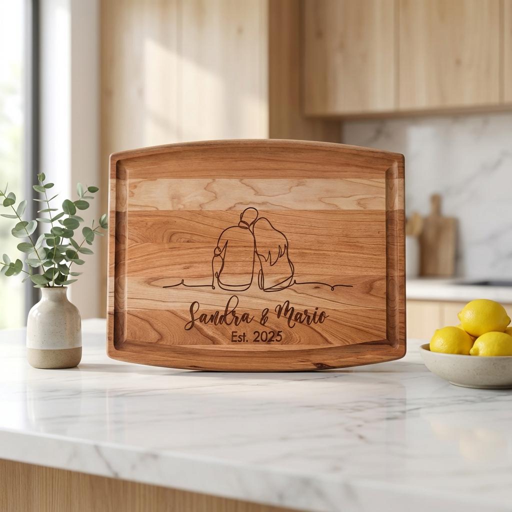 Personalized Couple Gift | Minimalist Line Art Cutting Board & Custom Wedding Present