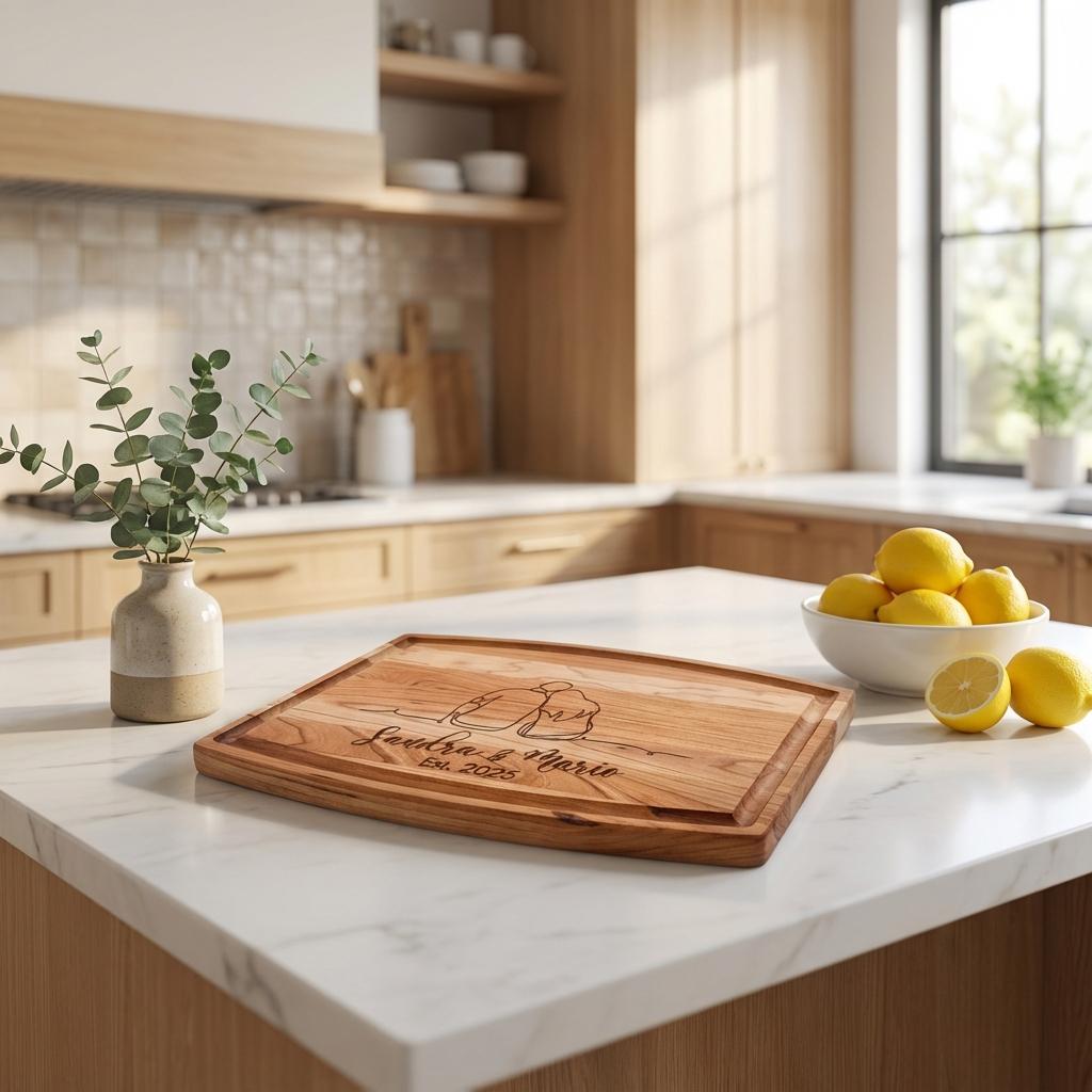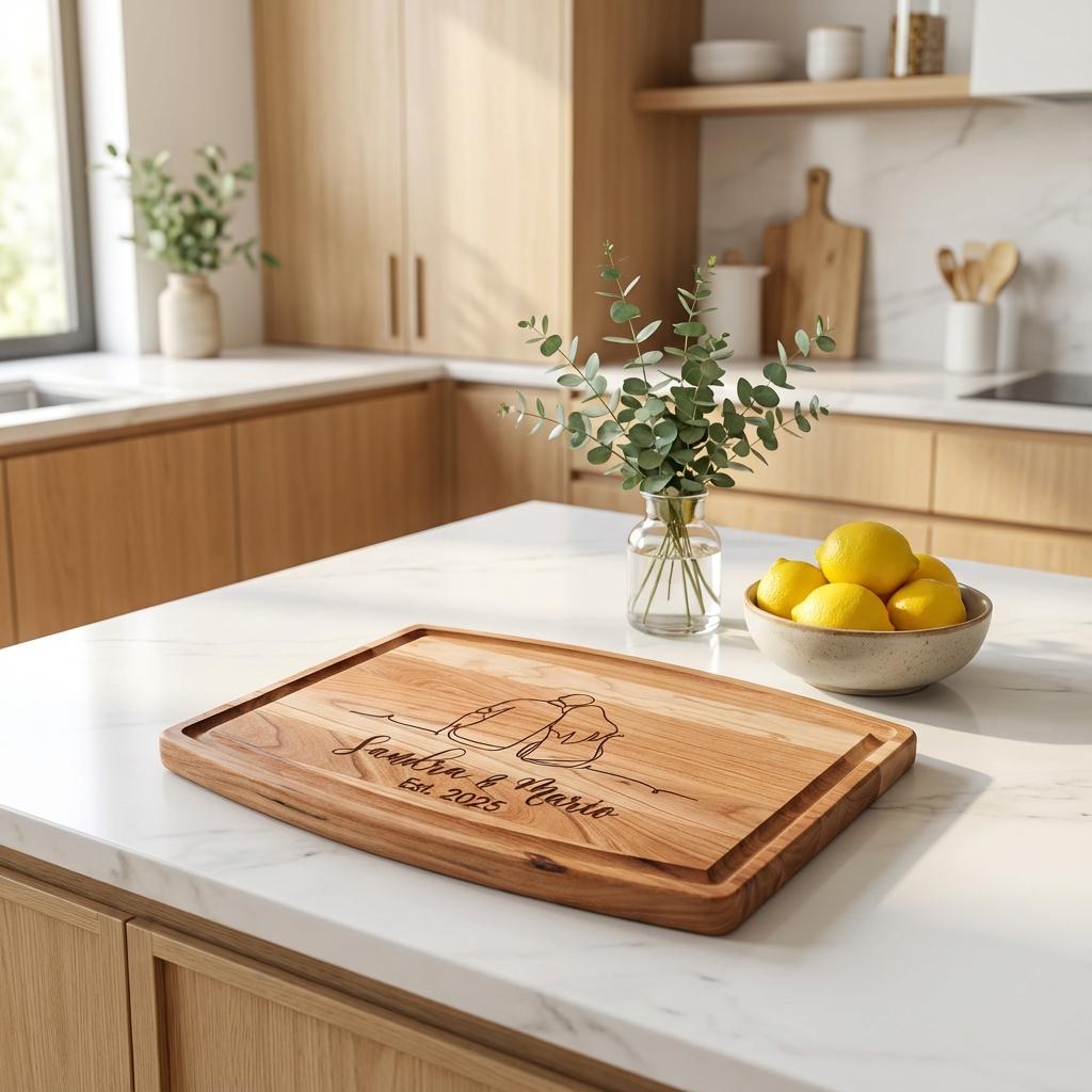 Handcrafted with precision and heartfelt care, each board celebrates contemporary love and the cherished memories that define it. Whether used as a functional kitchen accessory or displayed as a keepsake, it adds an elegant, artistic touch to any space.