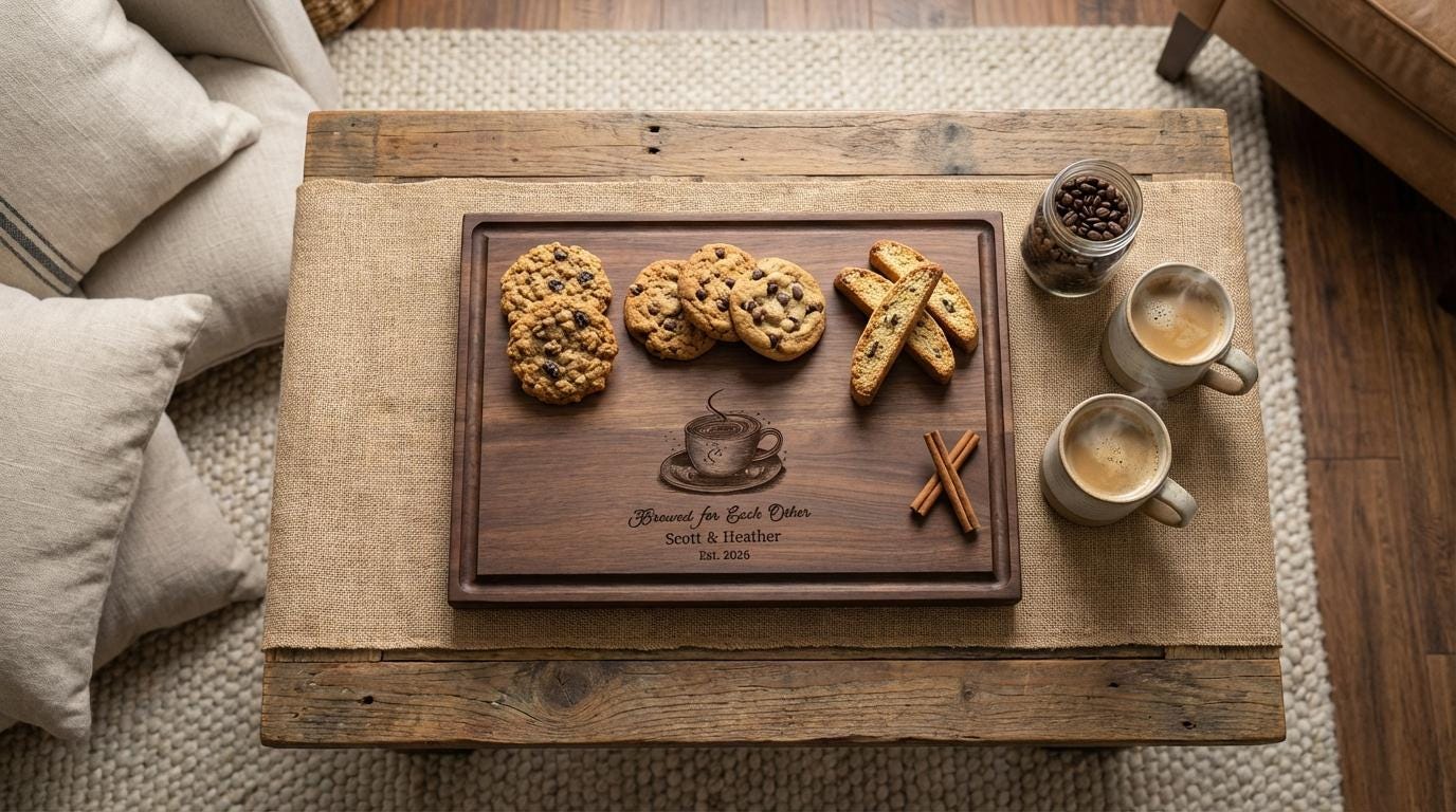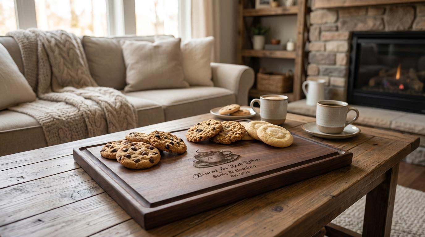 Custom Coffee Lover Gift | Personalized Cutting Board & "Brewed for Each Other" Wedding Present