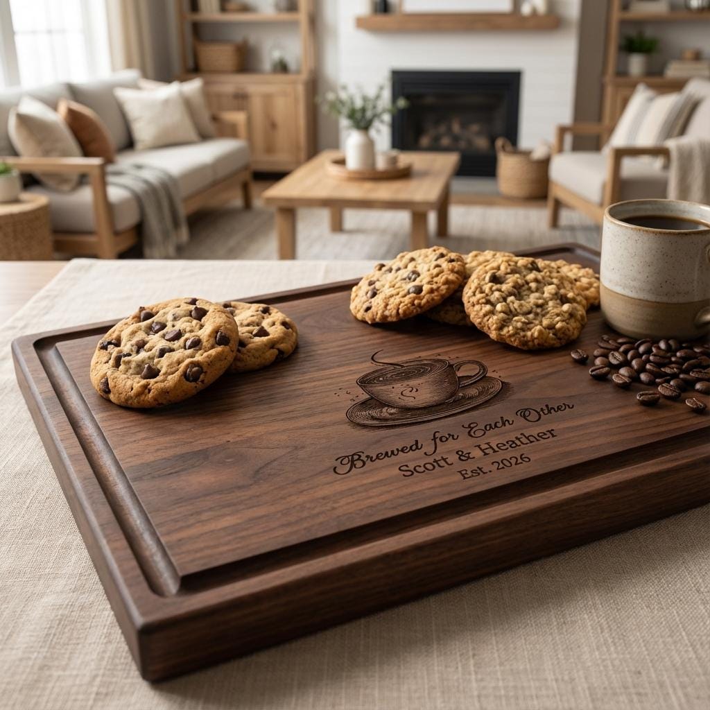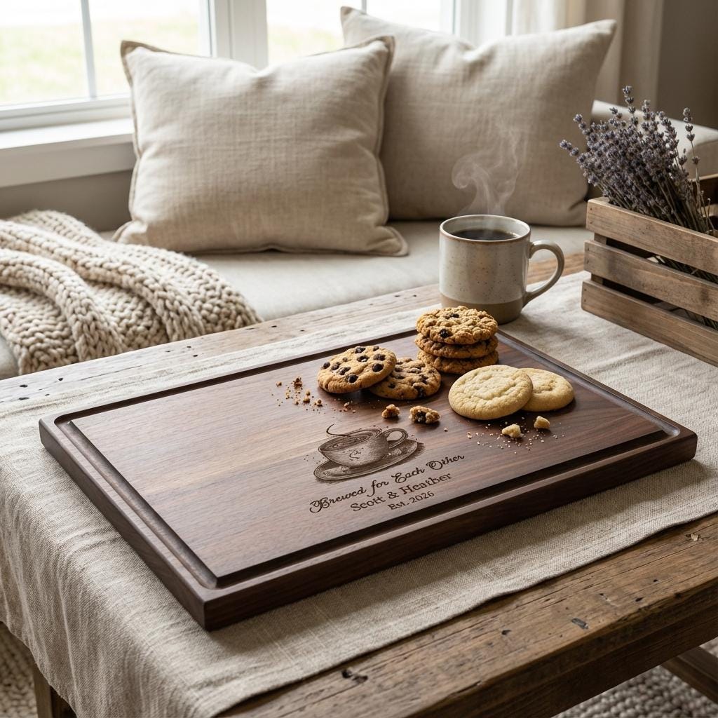 Expertly handcrafted with precision, each board is a tribute to the timeless bond shared by coffee-loving couples—turning every meal into a delightful ritual. Whether you're preparing breakfast or showcasing it as a cherished keepsake, this cutting board adds modern charm and heartfelt style to your space.