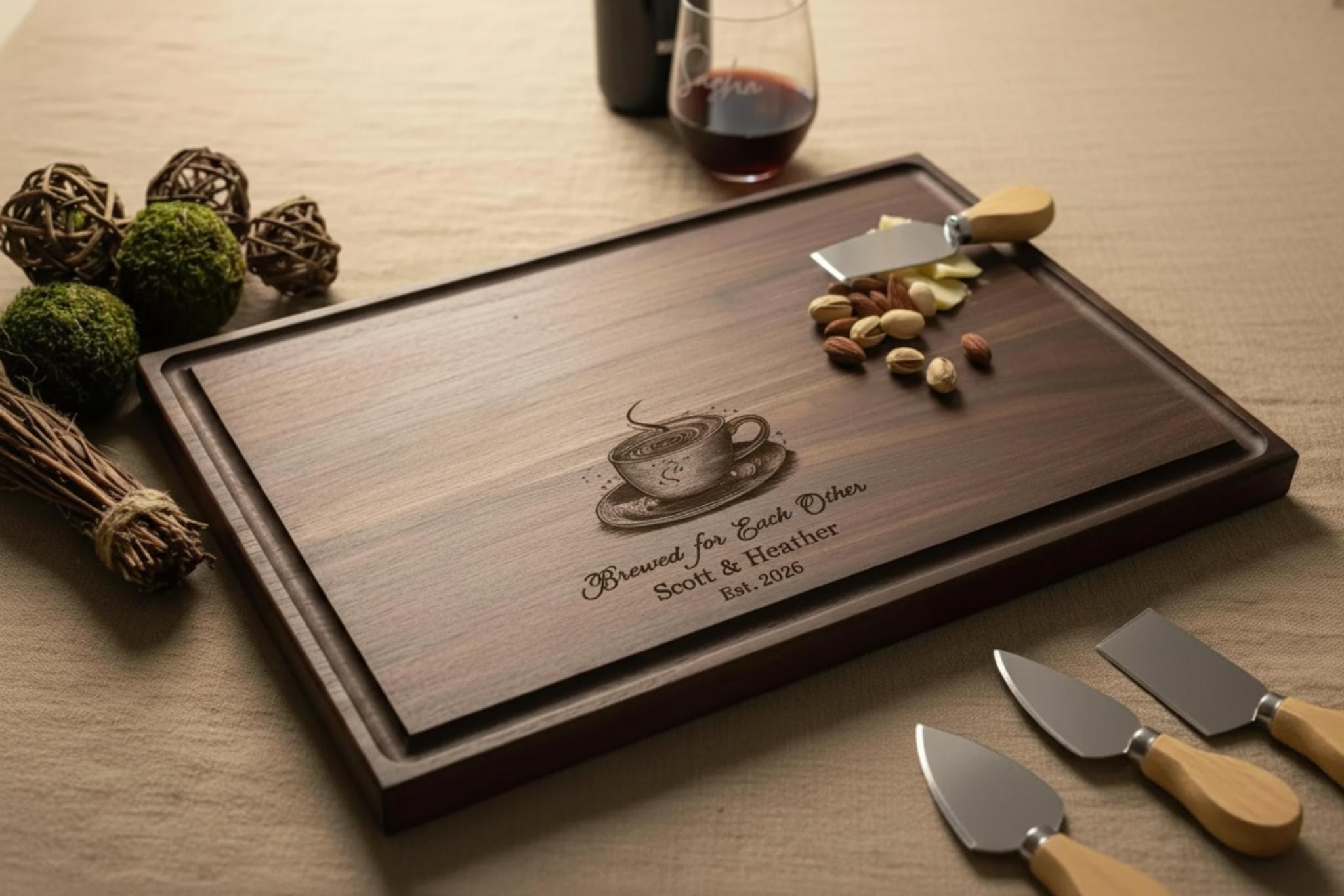 Embrace the perfect blend of love and flavor—order your personalized Coffee-Loving Couple cutting board today and savor every moment brewed just right.