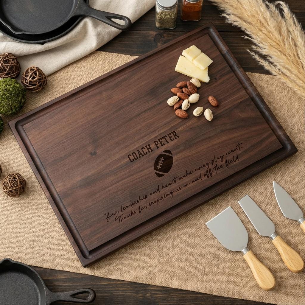 Personalized Cutting Board, Football Coach Gift: Custom Engraved Charcuterie Board, Thank You Gift, Appreciation Present, Kitchen Gift