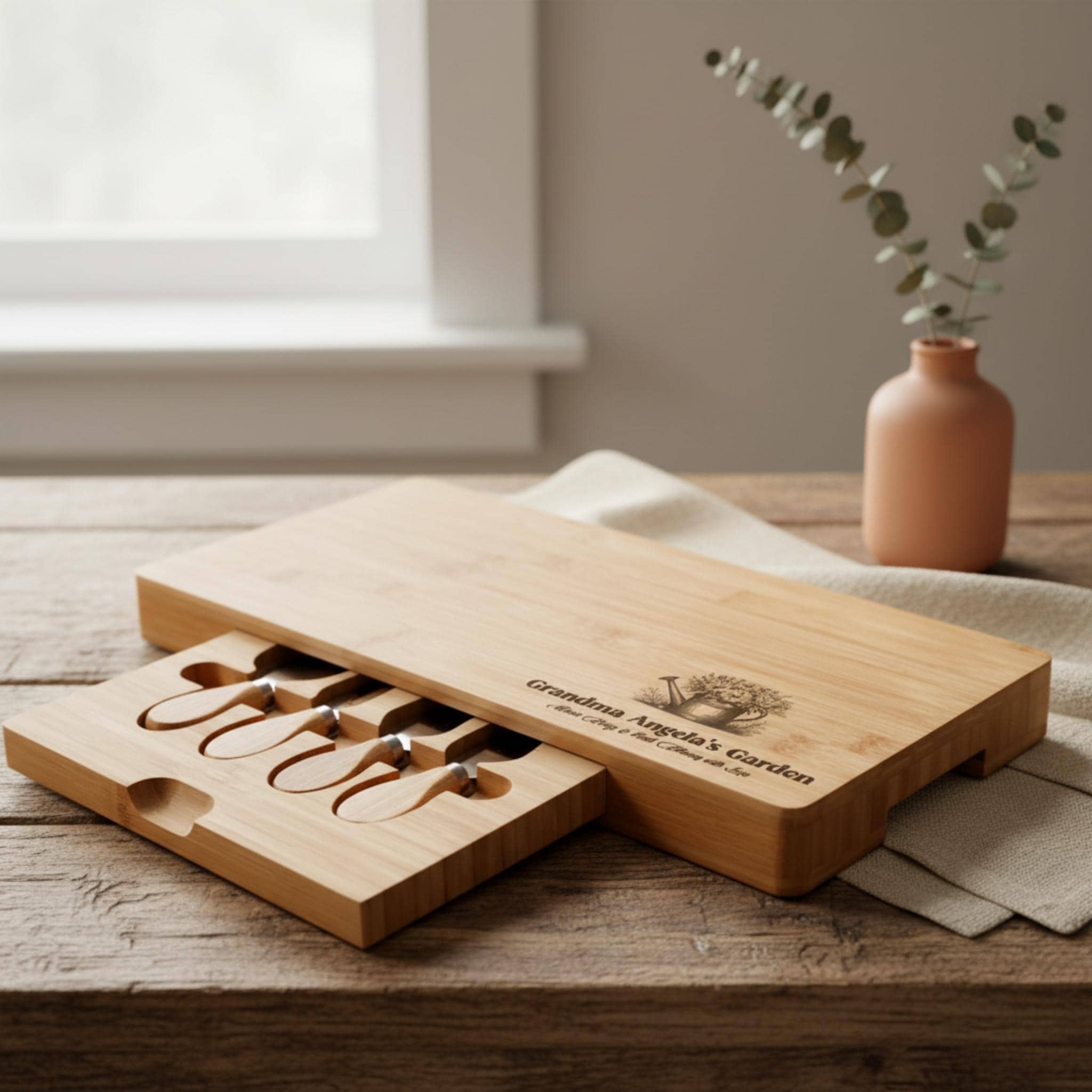 Personalized Charcuterie Board, Grandma Gift: Custom Engraved Cheese Board with Tools, Kitchen Gift, Christmas Gift, Birthday Gift