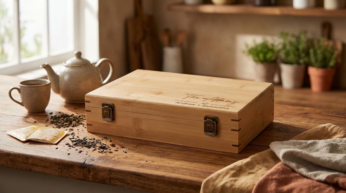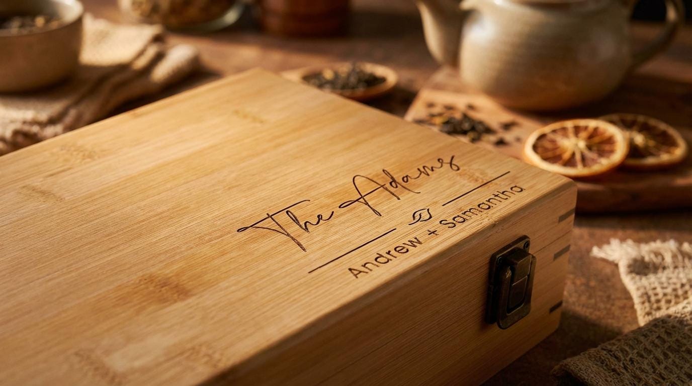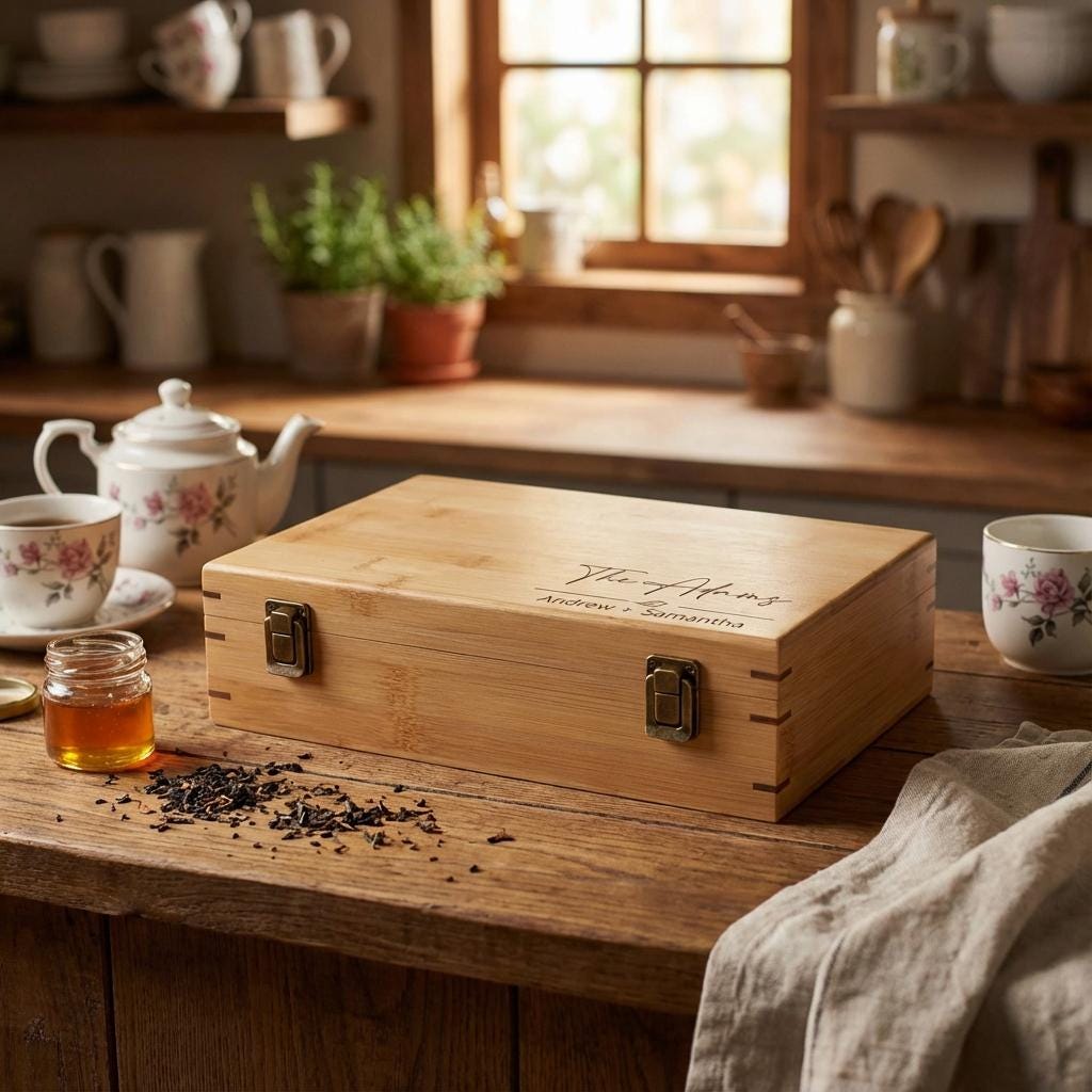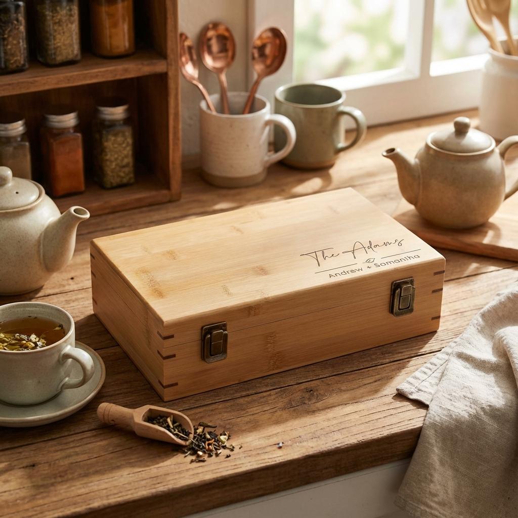 The real standout is the customization option—engrave your chosen text, whether it’s a name, an inspirational quote, or a heartfelt message—to create a truly unique piece. This personalized touch transforms the tea box into a cherished gift for housewarmings, Christmas, birthdays, or as a special present for a tea-loving couple.