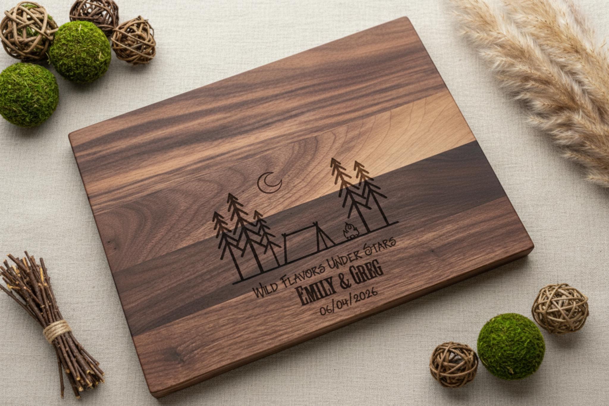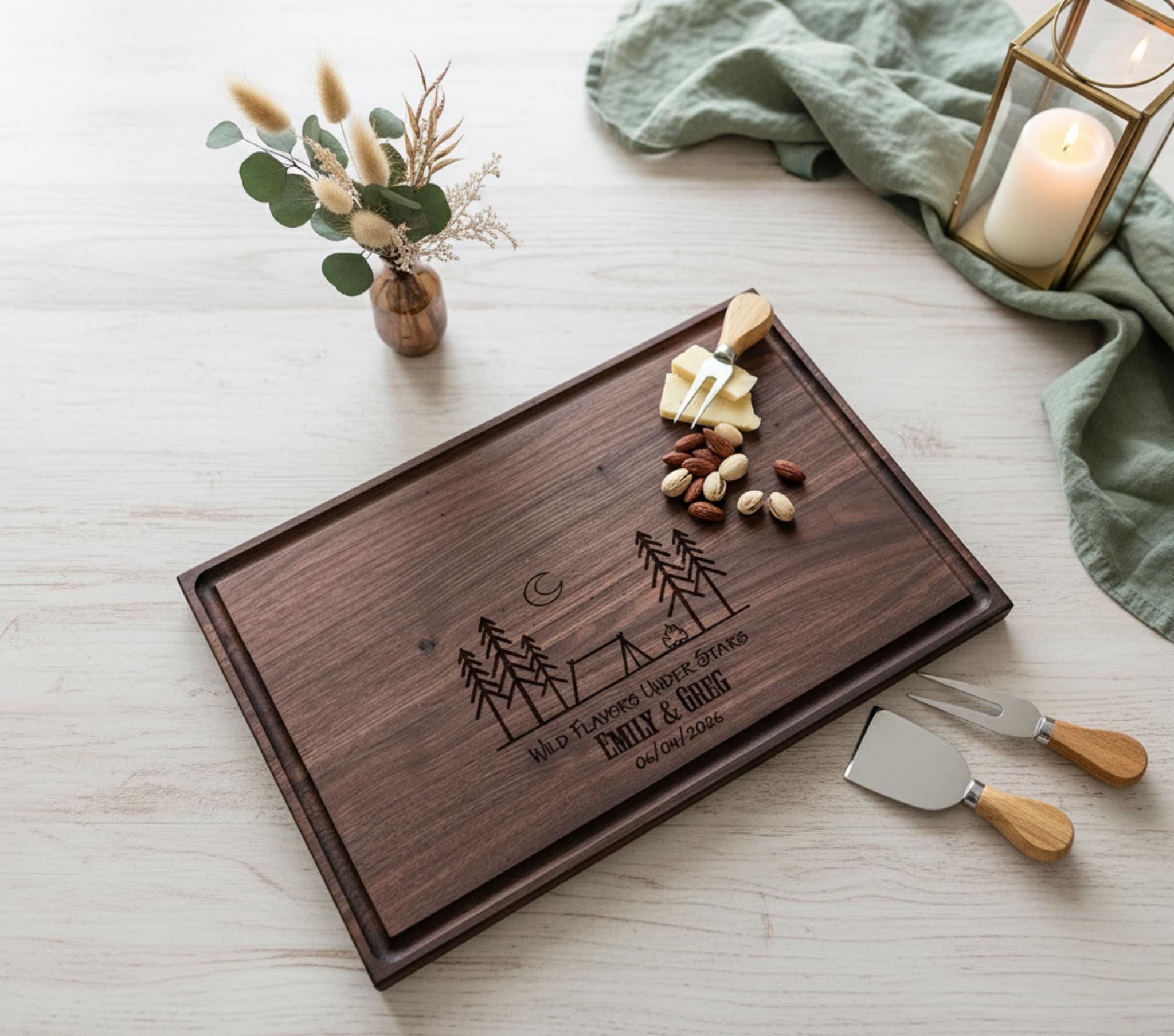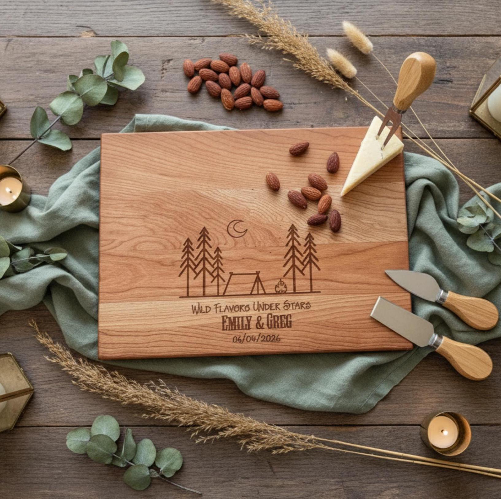Personalized Cutting Board, camping gifts: Custom Charcuterie Board, Outdoors, Camp, adventure time, Gift for Couple, Camp Life