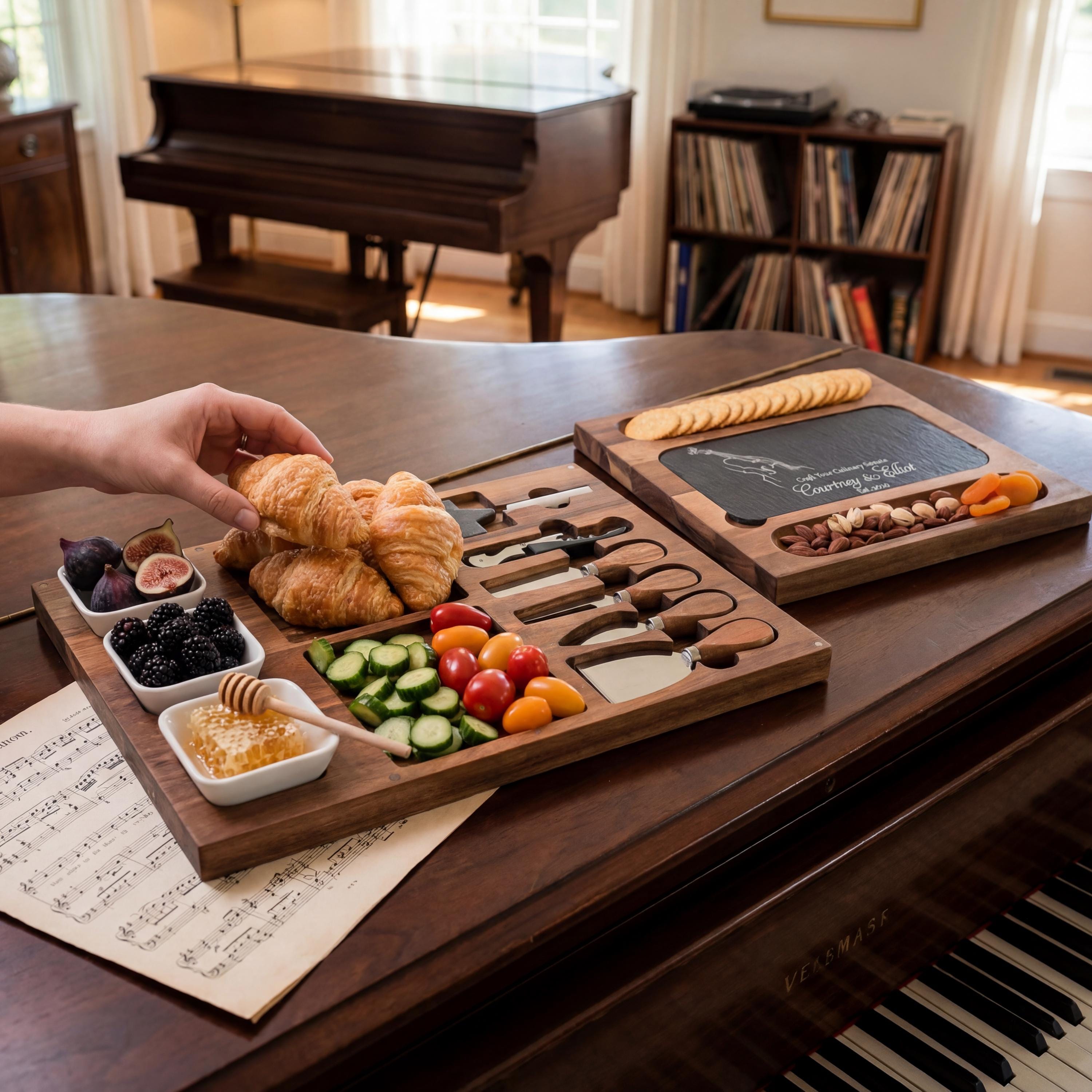 Violin Music Gift | Personalized Charcuterie Board Set & "Culinary Sonata" Slate Cheese Platter