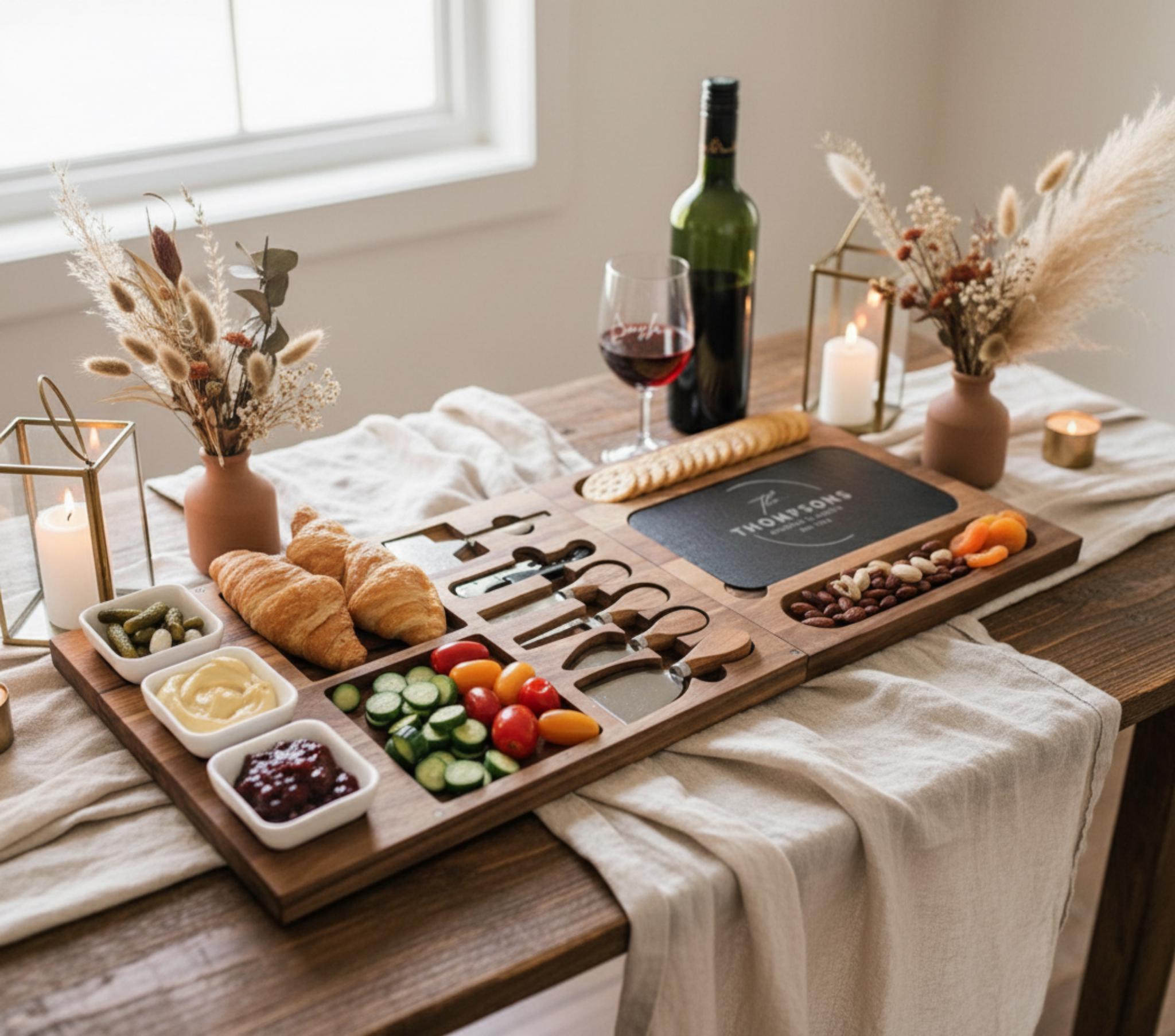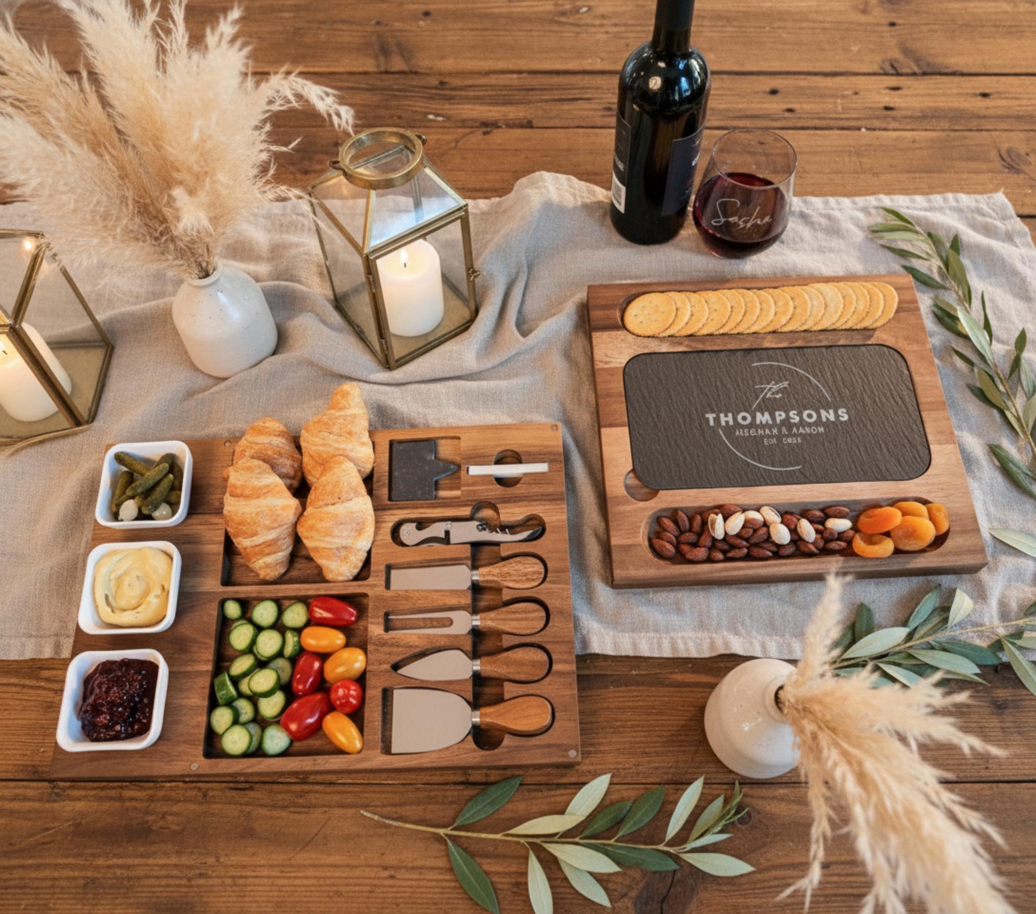 Elevate your hosting game and make a statement at your next gathering! Order your Personalized Cheese & Charcuterie Board Set today and add a touch of personalized sophistication and lasting elegance to every celebration!