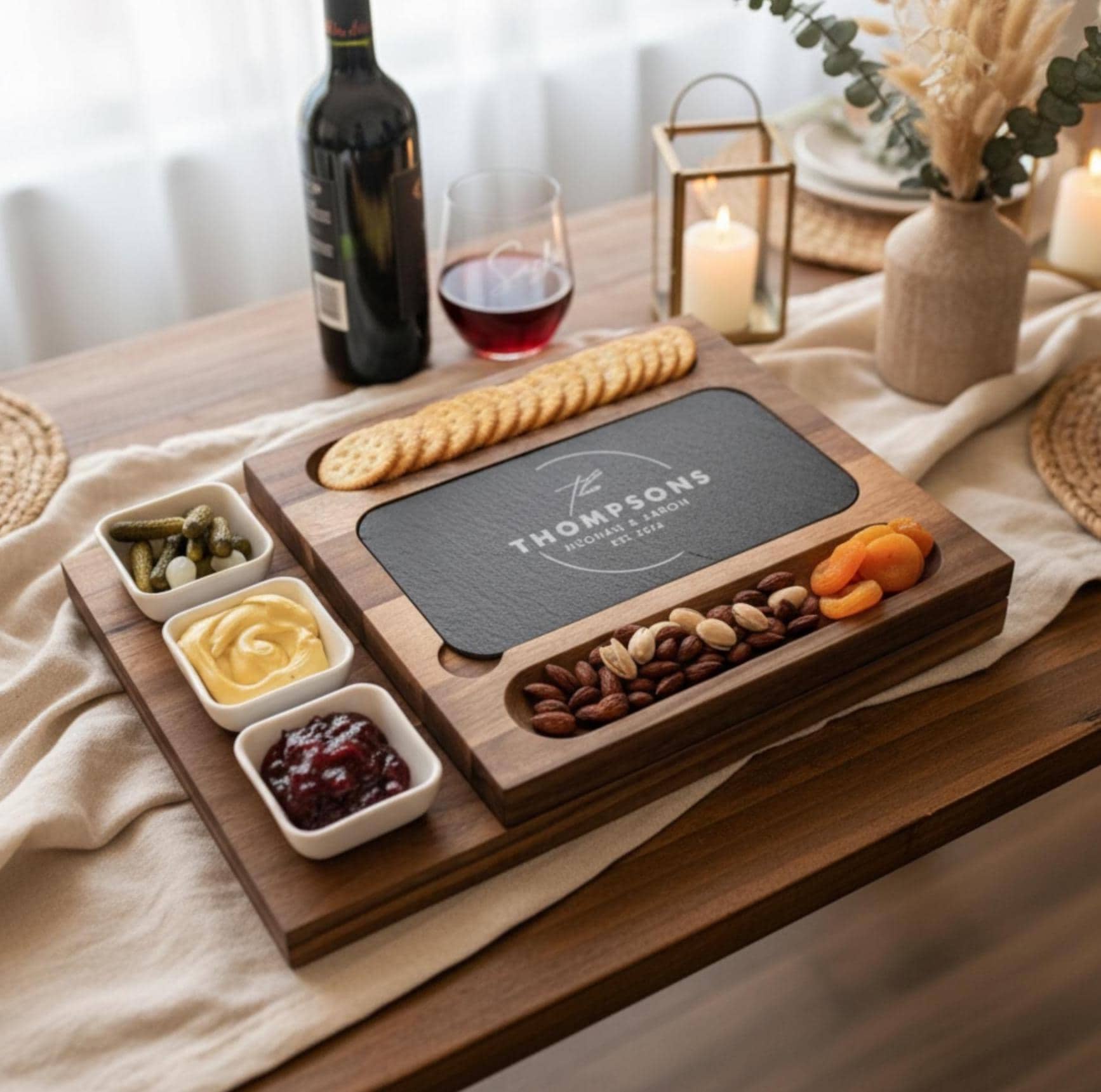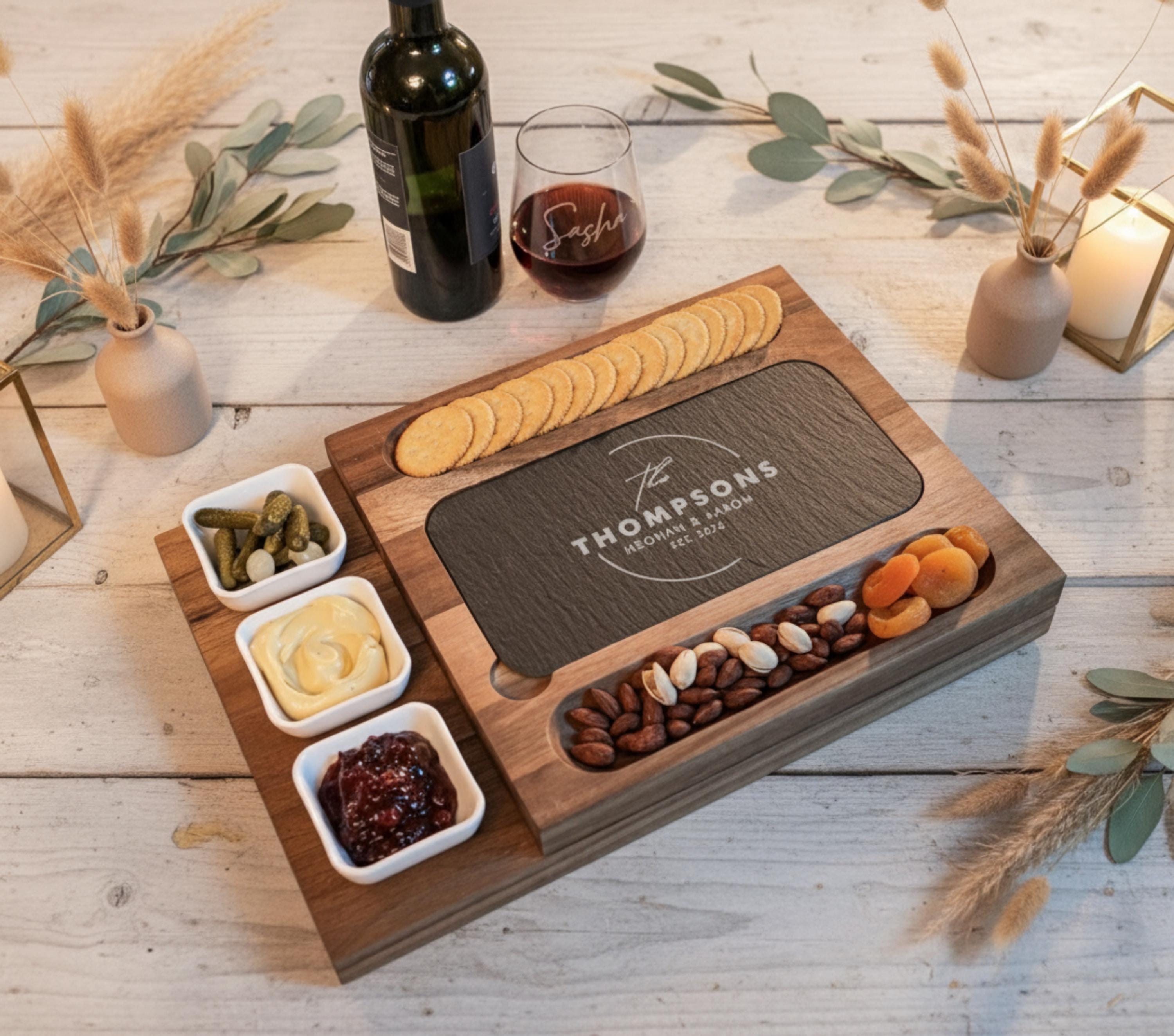 This personalized acacia wood board is the perfect centerpiece for weddings, anniversaries, housewarming parties, Christmas, and any occasion where lasting memories are made.