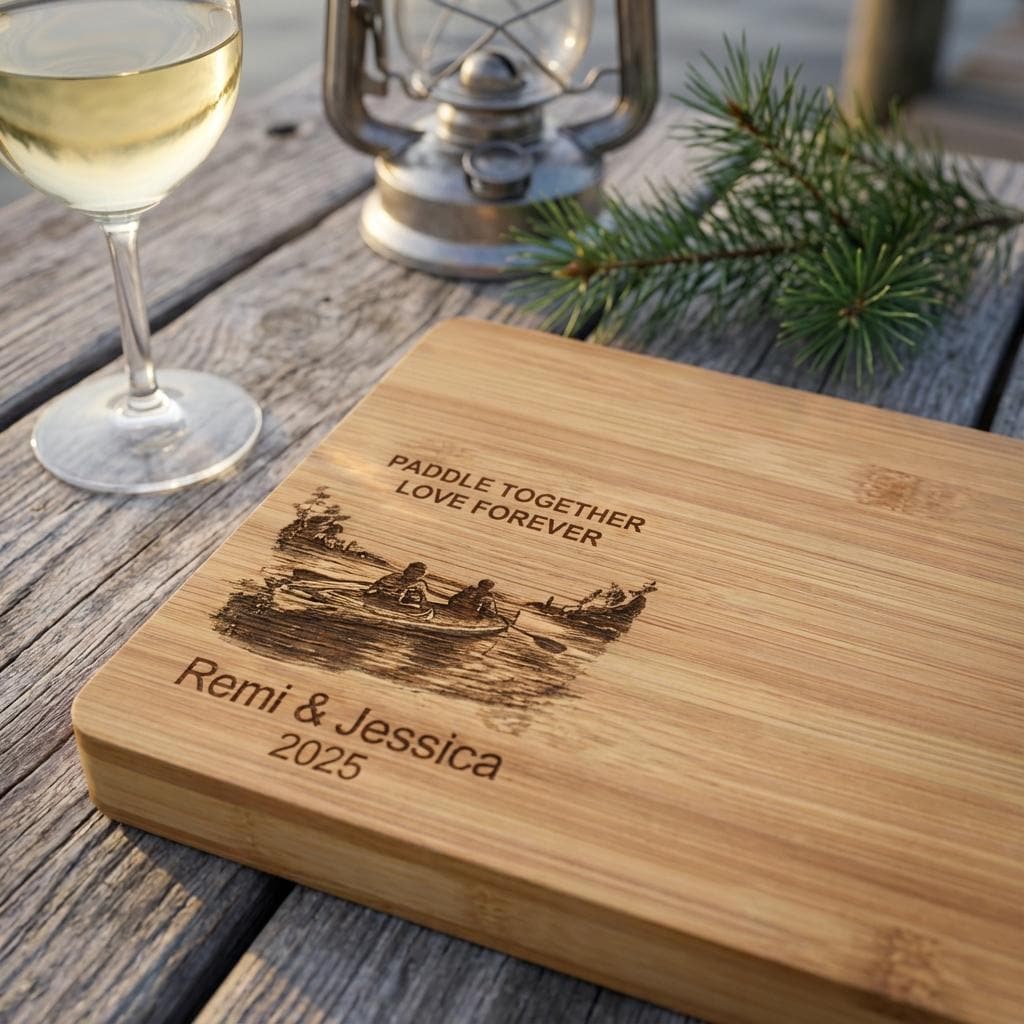 Kayaking Couple Gift | Personalized Charcuterie Board & "Paddle Together" Canoe Wedding Present