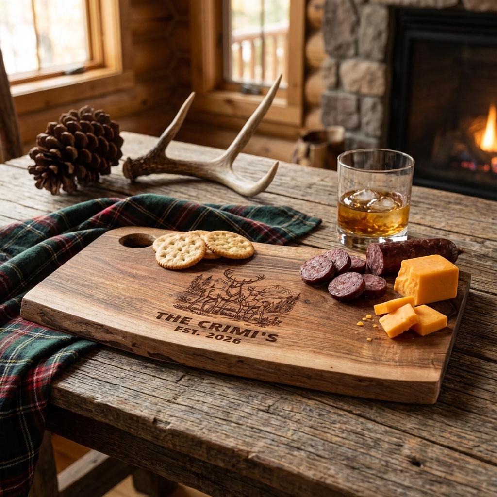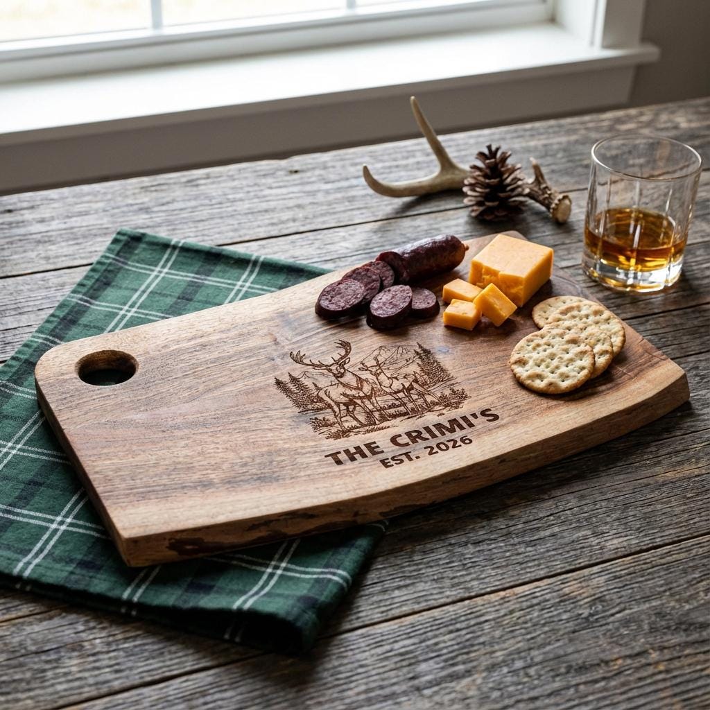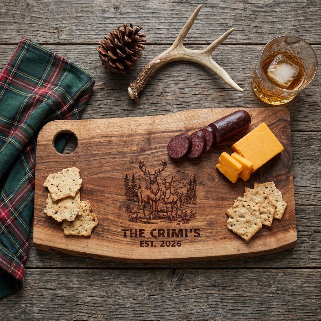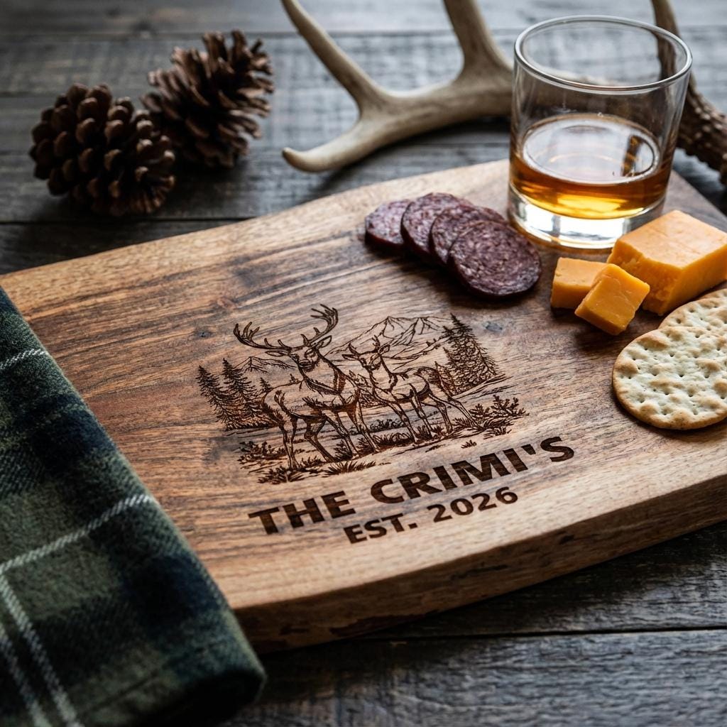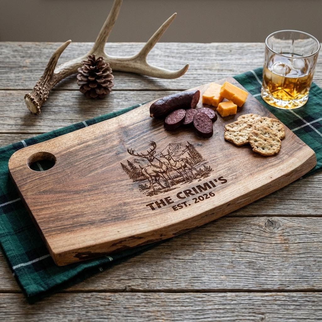 Rustic Wedding Gift | Personalized Cutting Board & "Buck and Doe" Live Edge Platter for Cabin